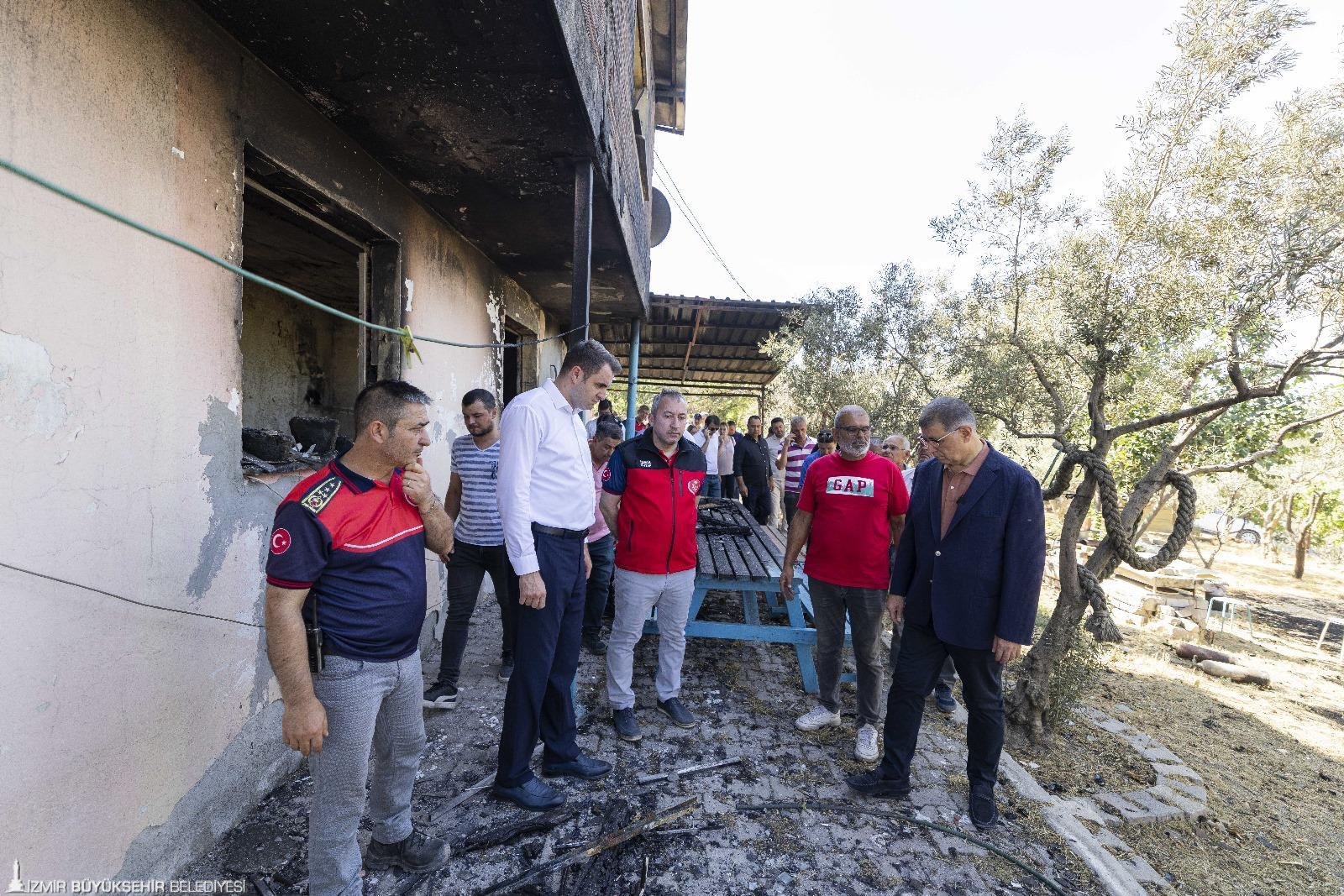 İzmir Büyükşehir Belediyesi, yanan evlerin tadilatına da destek olacak. Zarar gören hayvan damları onarılacak ve gerekli malzemeler verilecek. Geçici barınma sorununun çözülmesi için konteyner sağlanacak. İzmir Büyükşehir Belediyesi Fen İşleri Dairesi Başkanlığı'nın iş makineleriyle yanan bölgelerdeki molozlar toplanacak.