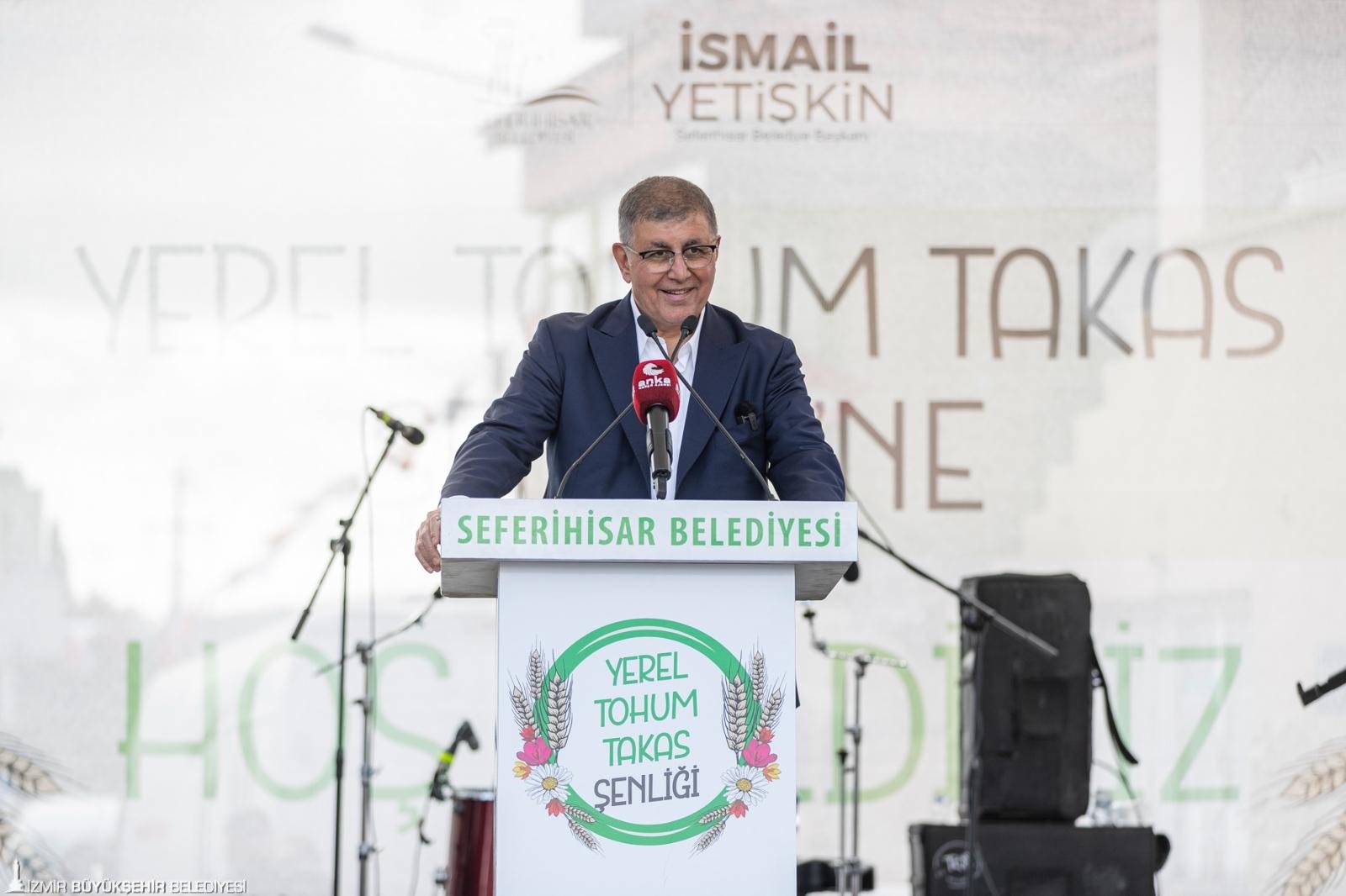 Törende konuşan Seferihisar Belediye Başkanı İsmail Yetişkin ise Tohum Takas Şenliği’nin çok verimli geçtiğini anlattı. Atalık tohumları ücretsiz çiftçiye dağıttıklarını aktaran Yetişkin, “Yerel tohumun satışı yasak. Bu sayede takas yolu ile tohumları biriktirerek yeşertiyoruz. Bunları halkımızla paylaşarak hem çiftçiye destek oluyoruz hem de insanlar sağlıklı gıdaya kavuşmuş oluyor. Bugün burada yalnızca bir şenlik için değil bir mücadele için toplandık. Bu Türkiye’nin en büyük sorunlarından biri olan tarıma karşı verilen bir mücadeledir. Buraya gelenler sadece tohum takas şenliğine değil bir direnişe katılıyor. Ülkemizde artık pazardan alışveriş yapmak lüks oldu. Aldığımız ürünlerde zehir var, pestisit var. Bunu sizler yiyorsunuz bizler yiyoruz. Halkın sofrasında artık zehir var. Üretici borç içinde destek, yok teşvik yok, çözüm yok. Üstüne bir de kuraklık var. Peki bunlar için ne yapılıyor. Hiçbir şey yapılmıyor” ifadelerini kullandı.