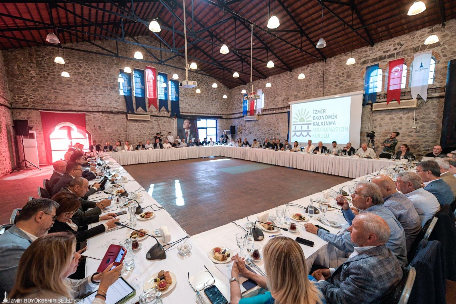 İzmir Ekonomik Kalkınma Koordinasyon Kurulu (İEKKK), İzmir Büyükşehir Belediye Başkanı Dr. Cemil Tugay'ın ev sahipliğinde 137'nci toplantısını Tarihi Havagazı Fabrikası'nda yaptı. Toplantının açılış konuşmasını yapan Büyükşehir Belediye Başkanı Dr. Cemil Tugay, adım adım düşündükleri ve planladıkları şekilde kent için çok güzel işler yaptıklarını aktardı. Şehrin düzeninin sağlanması, uzun zamandır bekleyen sorunların çözülmesi için adımlar attıklarını ve ortak akla çok önem verdiklerini aktaran Başkan Tugay, “Sorunlar sadece belediyenin çabasıyla düzelmez. Öncelikle kentlilerin konuyu anlaması ve desteklemesi, sivil toplum kuruluşlarının kendi alanlarıyla ilgili üzerine düşeni yapması gerekiyor. Aynı zamanda pek çok konu siyaset üstü görülmeli, şehrin sorunlarına bütün siyasi tarafların da aynı şekilde sahip çıkması, yaklaşması gerekir. Bunu düşünüyorum, buna çok inanıyorum. Yapıcı görüşmeler yapıyoruz, bunların sonunda olumlu sonuçlar çıkacağına inanıyorum” dedi.