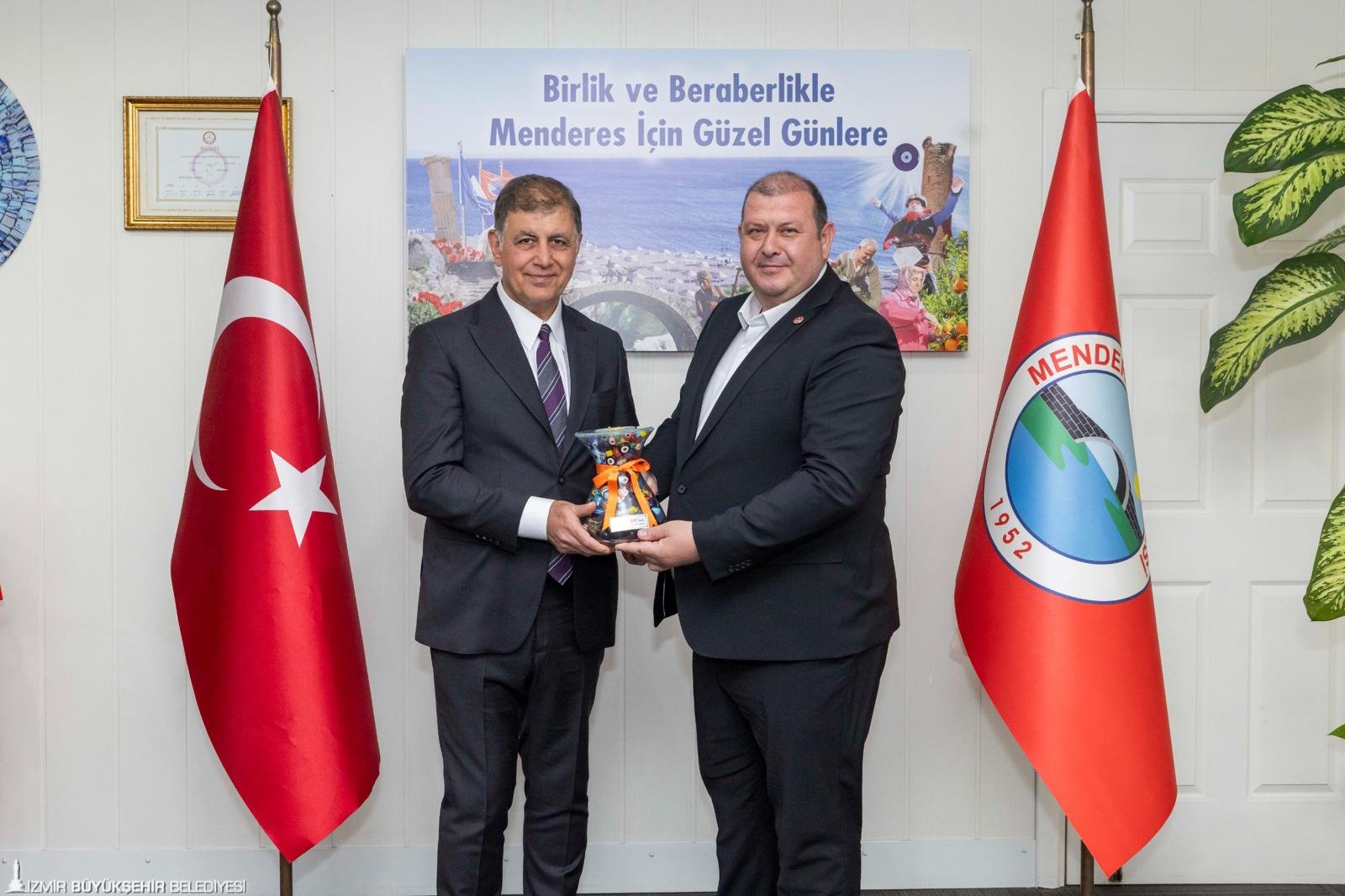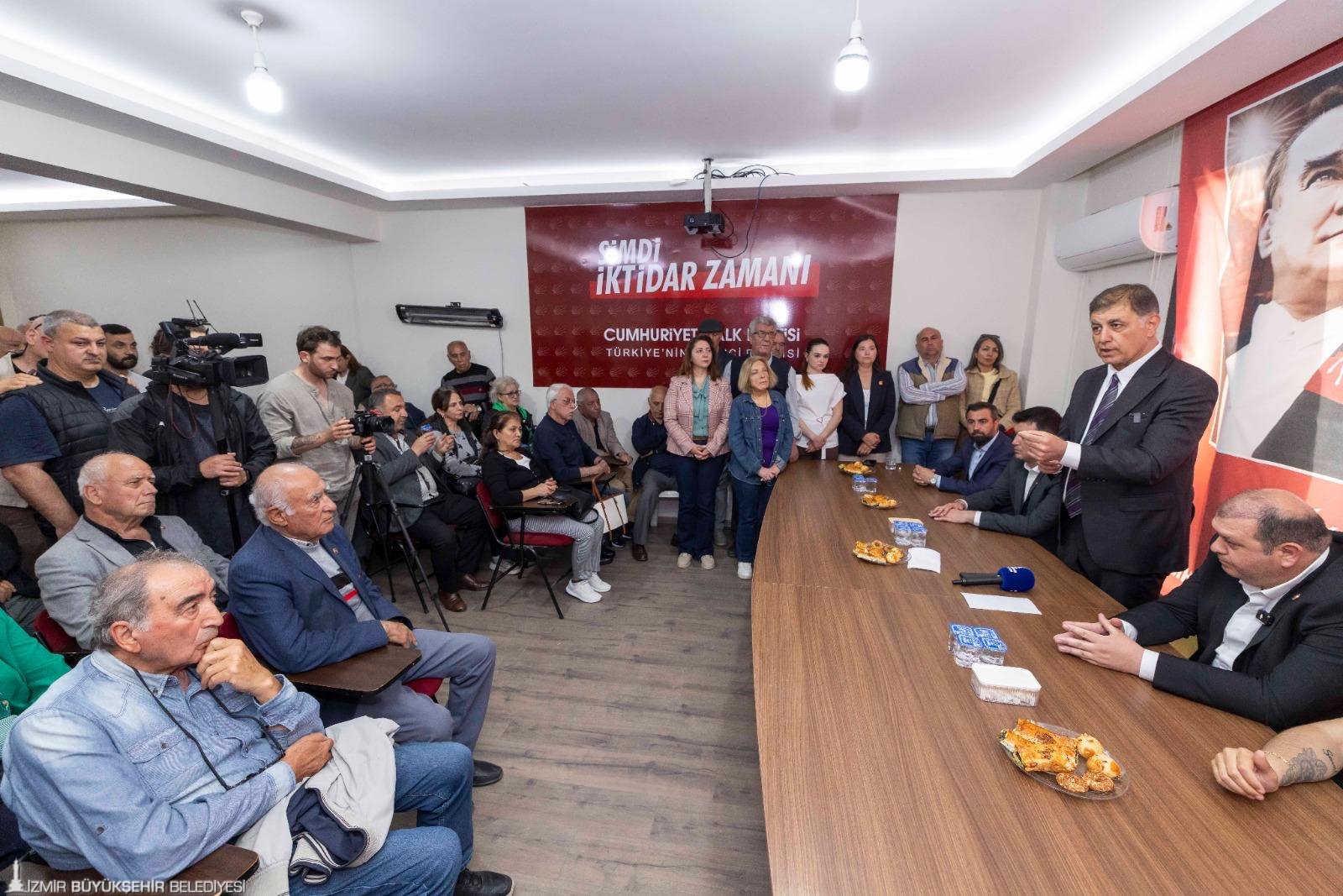 İzmir Büyükşehir Belediye Başkanı Dr. Cemil Tugay, Vakıflar Genel Müdürlüğü tarafından el konulan Meslek Fabrikası'na yönelik başlattığı direnişte kendisine destek veren İzmirlilere teşekkür turuna çıktı. Menderes Belediye Başkanı İlkay Çiçek ile bir araya gelen Başkan Tugay, daha sonra CHP Menderes İlçe Başkanı Mehmet Emin Işık ile ilçe örgütünü ziyaret etti. CHP İlçe Başkanlığı'nda partililerle buluşan ve Meslek Fabrikası direnişinde CHP örgütünün sağlam bir duruş gösterdiğini vurgulayan Başkan Tugay, “CHP örgütünün Meslek Fabrikası için verdiği mücadele, İzmir adına ve savunduğumuz değerler adına çok değerli. O nedenle CHP il ve ilçe örgütlerine içten bir şekilde bu mücadelenin içerisinde yer aldıkları için teşekkür ediyorum” dedi.