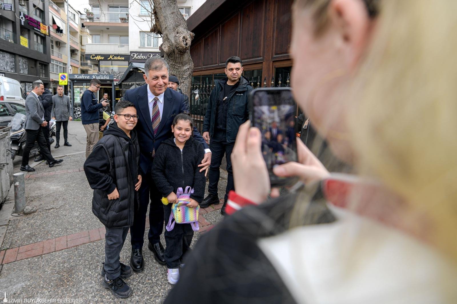 İzmir Büyükşehir Belediye Başkanı Dr. Cemil Tugay, dernek ziyaretlerinin ardından Karşıyaka’da yurttaşlarla bayramlaştı. İzmirlilerin taleplerini dinleyip, bayramlarını kutlayan Tugay, çocuklarla fotoğraf çektirdi. Başkan Tugay çocuklardan gelen halı saha talebini değerlendireceklerini de söyledi.