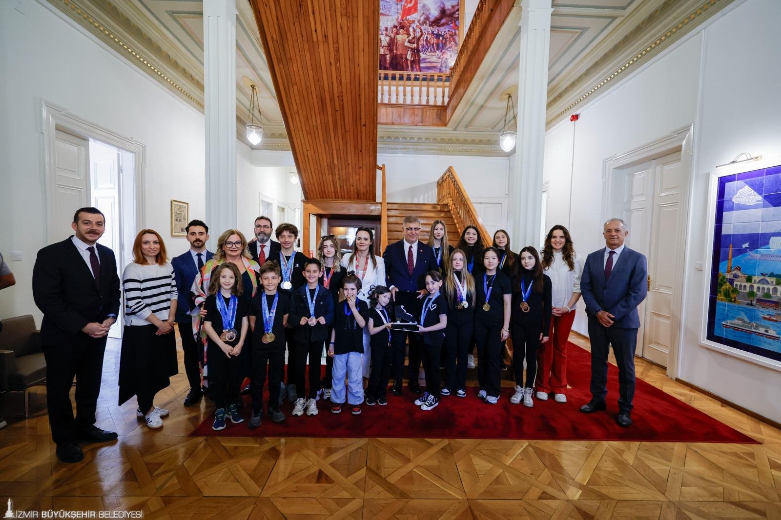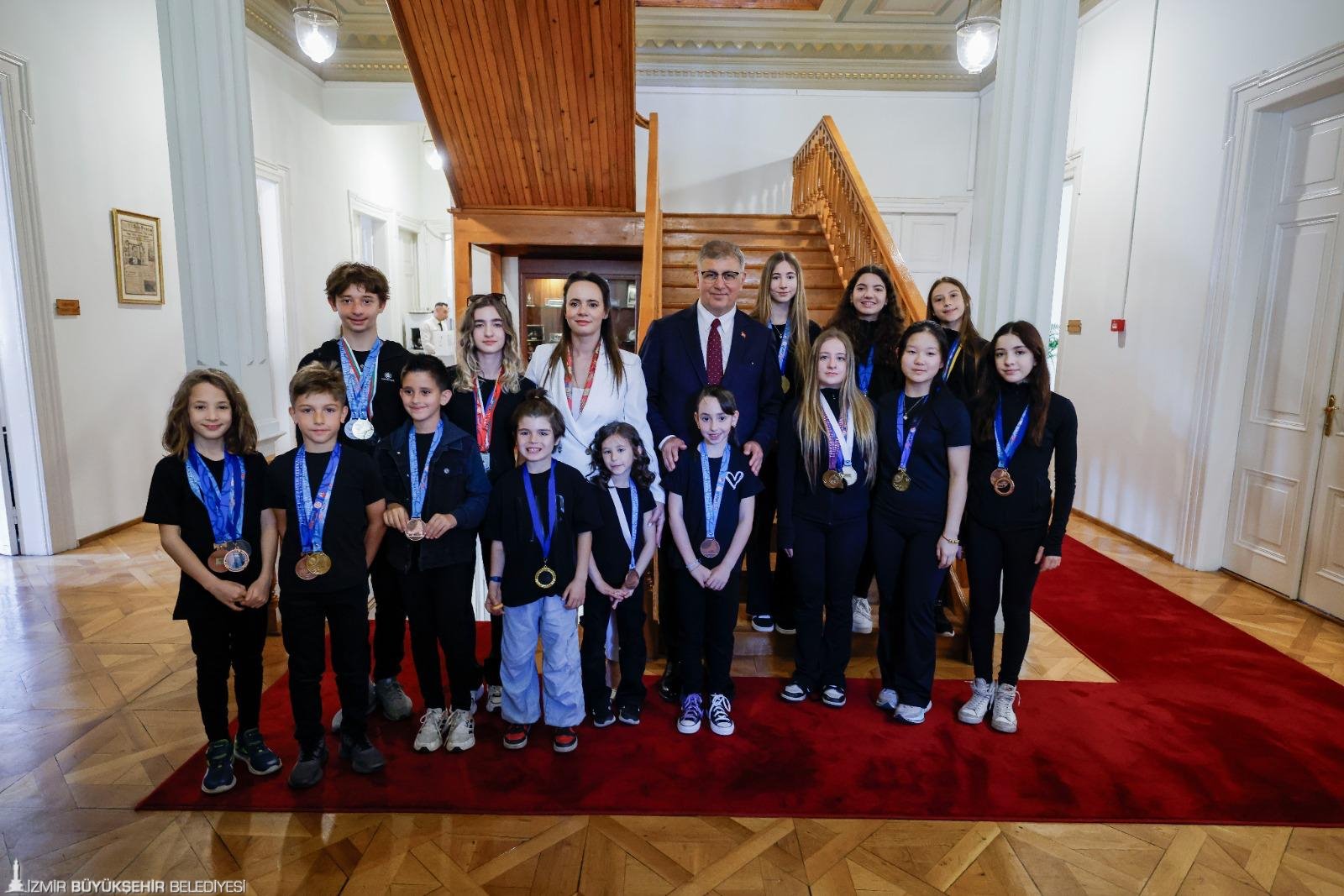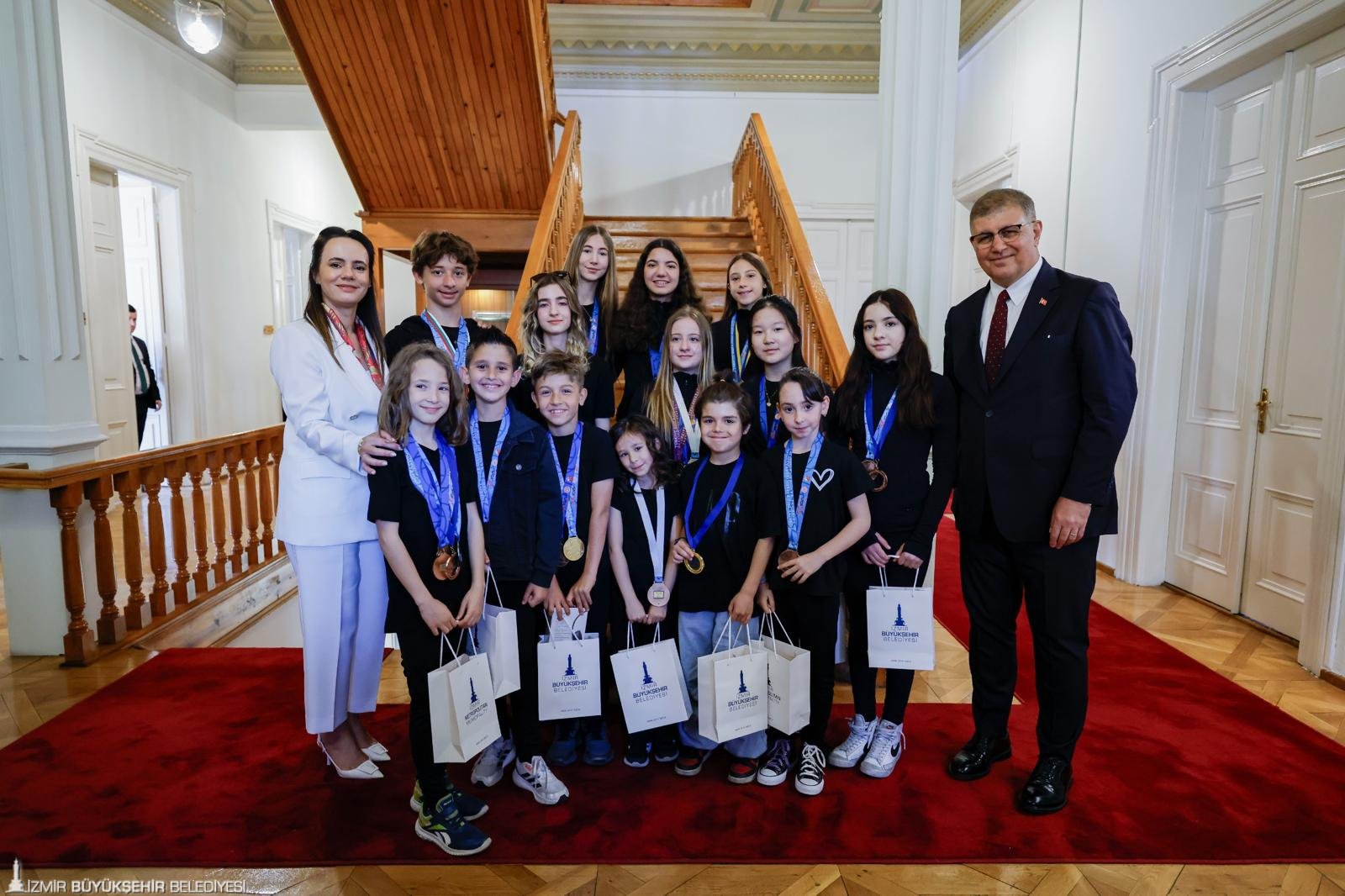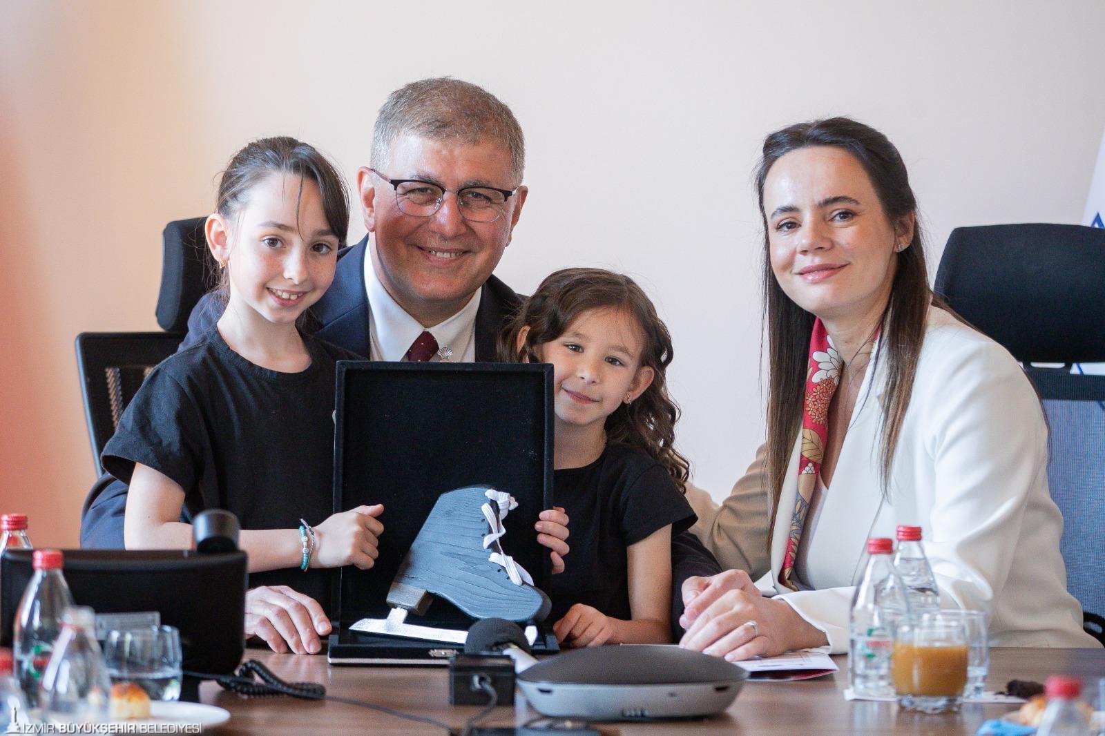Sporcu çocuklar, Başkan Tugay'a buz pateni şeklinde bir plaket takdim etti. Tugay, “Son yıllarda aldığım en güzel hediye, hediyeyi verenler çok tatlılar” diyerek teşekkür etti.