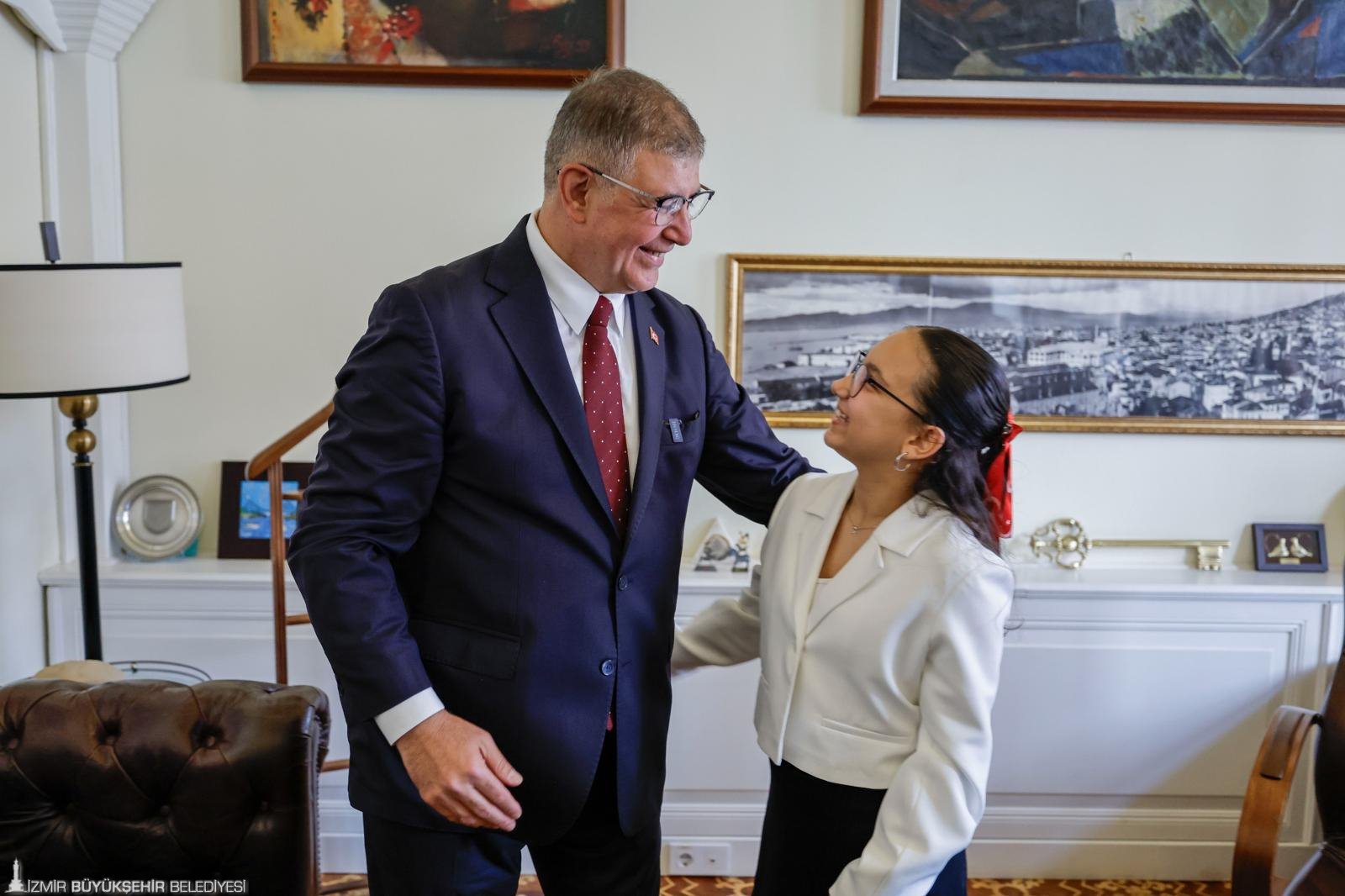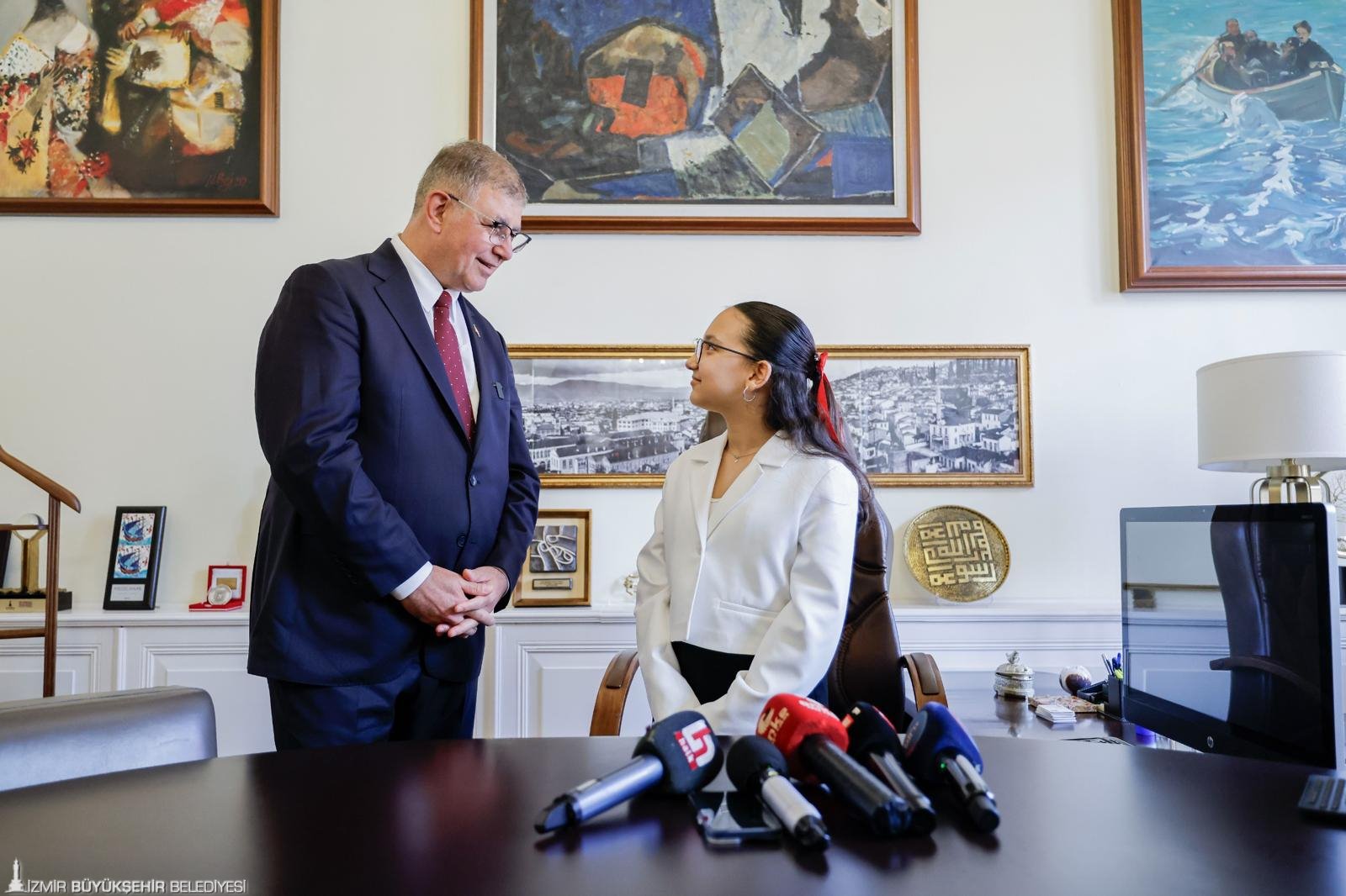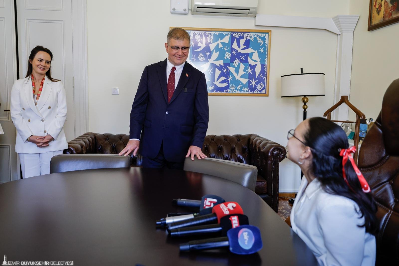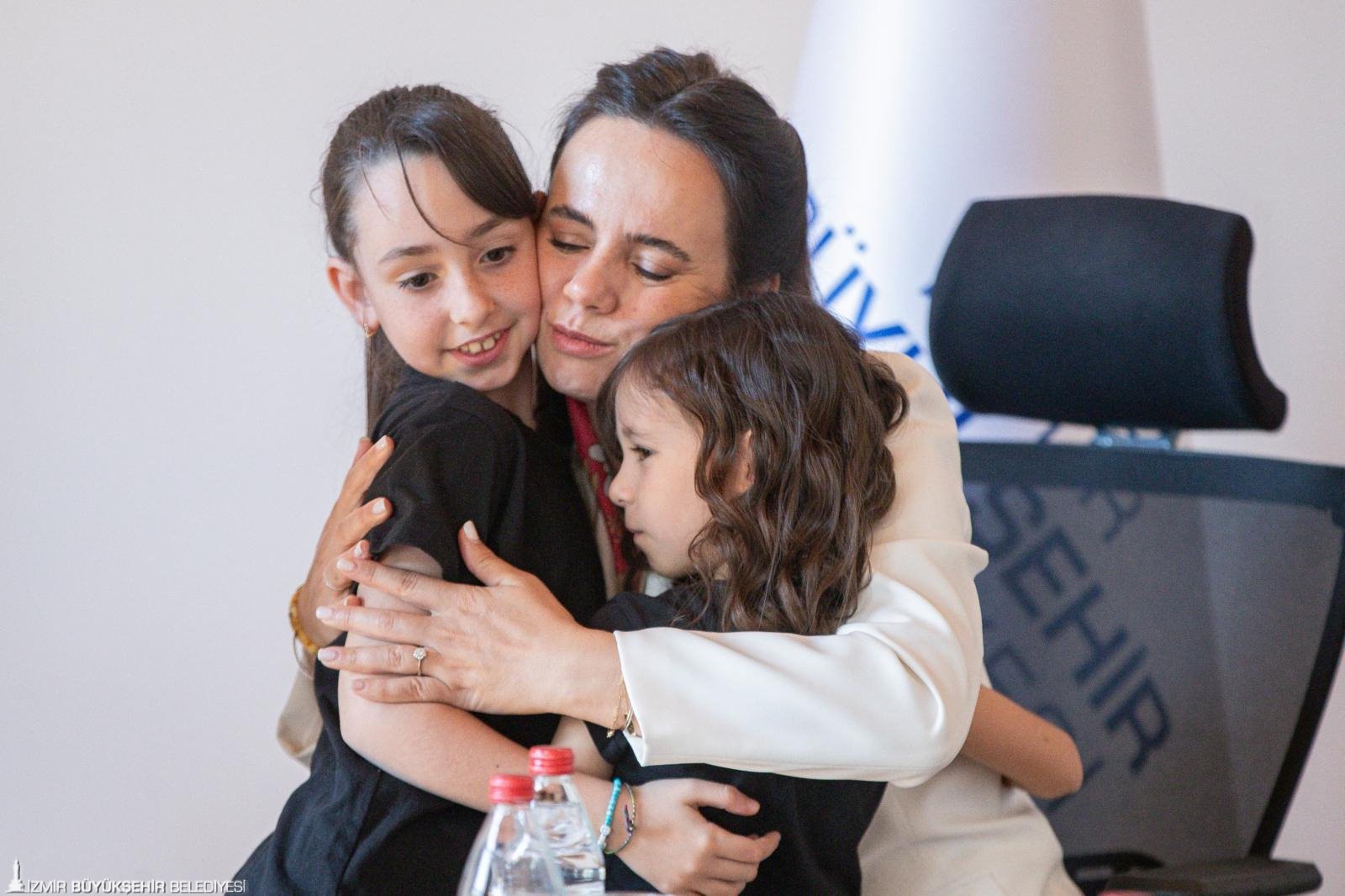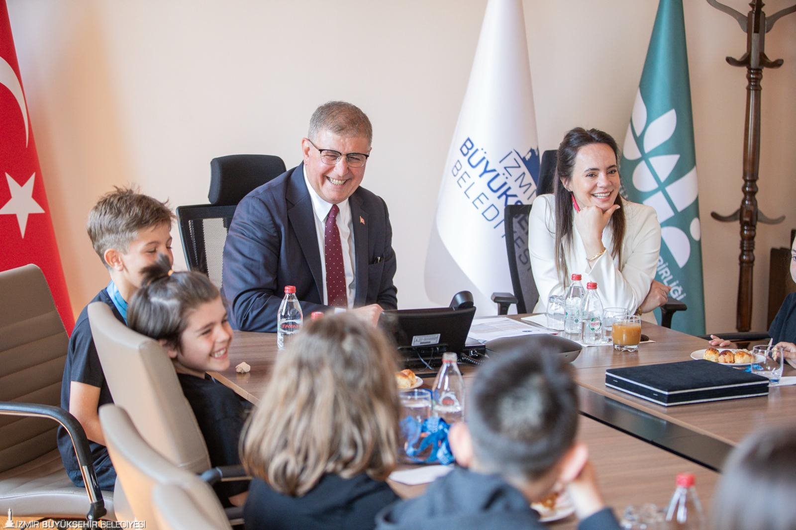 Başkan Tugay, çocuk başkan Derin Taş'a hayata geçirmek istediği çalışmaları sordu. Taş, “Geri dönüşüm ve doğa için daha çok çalışma yapılmalı, seminerler düzenlenerek farkındalık artırılmalı. Birçok okulda öğrenci sayısı fazla. Bu da ders verimliliğinin azalmasına neden oluyor. Daha çok okulun yapılması, sınıftaki ders verimliliğini artıracak. Nitelikli insanların fazlalaşmasını sağlayacak. İzmir için yapmak istediklerim bunlar” dedi.