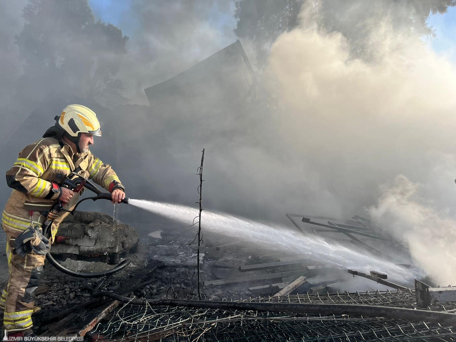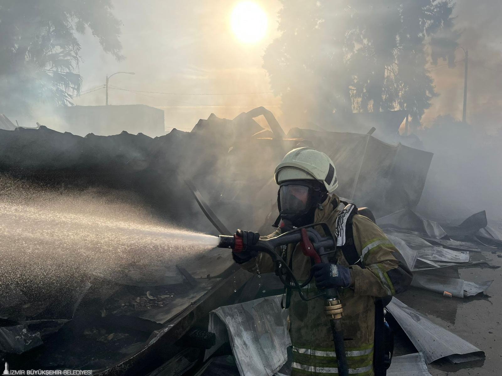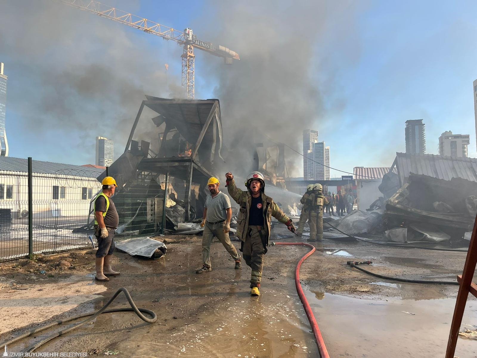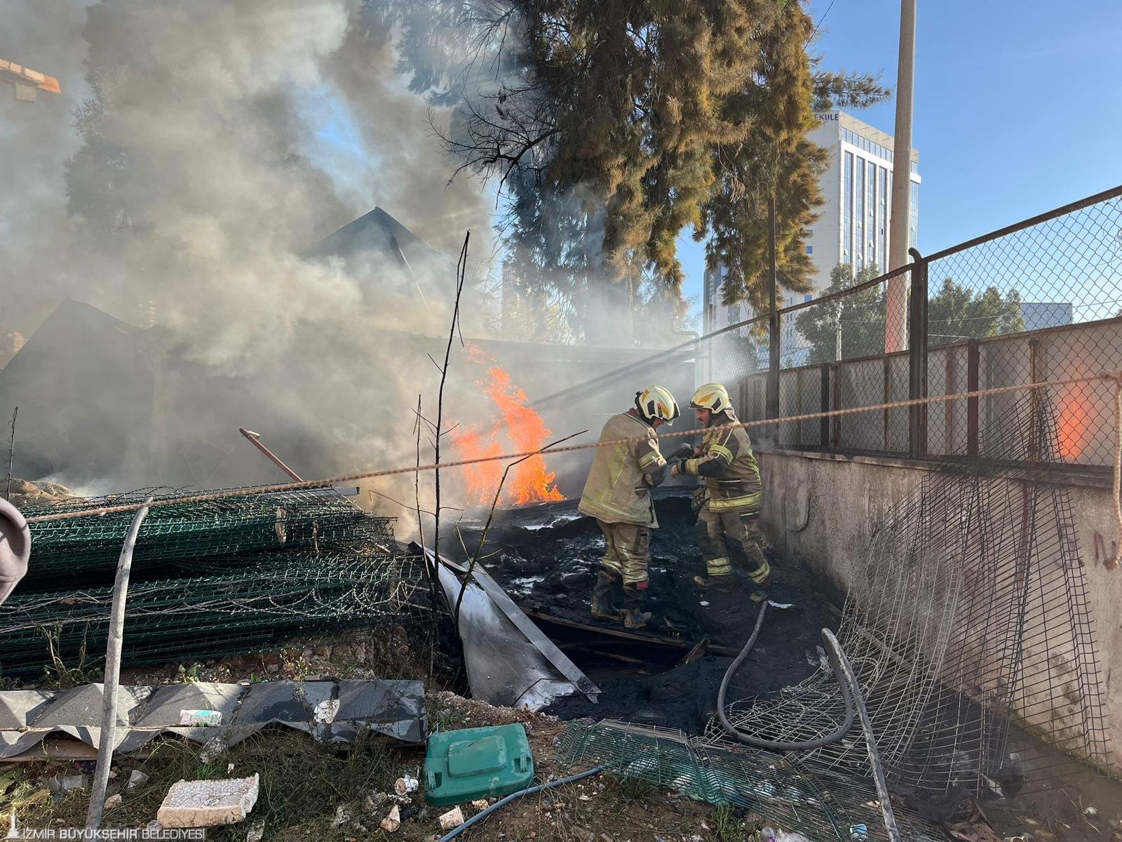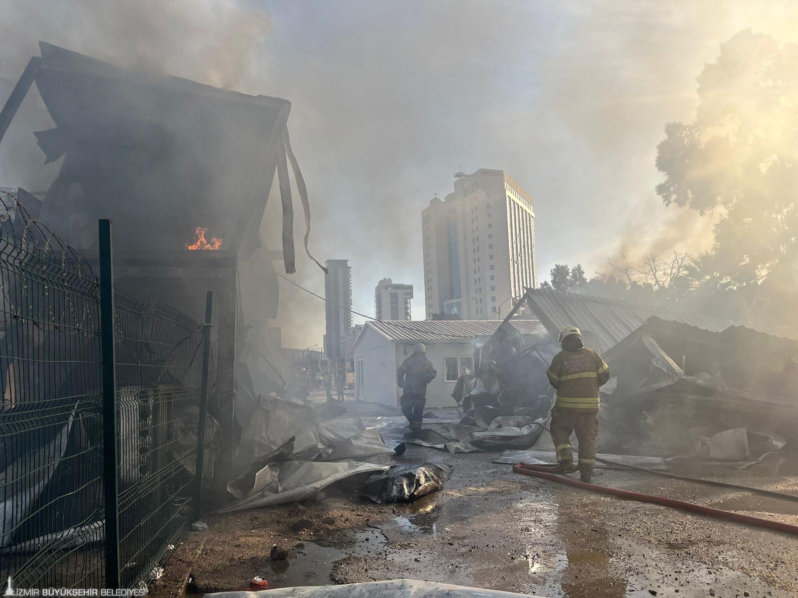 İzmir’in Bayraklı ilçesi Adalet Mahallesi Ozan Abay Caddesi üzerinde bulunan bir inşaat firmasına ait konteynerlerde saat 15.30 sıralarında yangın çıktı. Alevleri gören çevre sakinlerinin ihbarı üzerine İzmir Büyükşehir Belediyesi İtfaiye Dairesi Başkanlığı ekipleri hızla olay yerine sevk edildi. Yangına 4 arazöz, 2 tonaj aracı, 1 AKS aracı ve çok sayıda personel ile müdahale eden ekipler, toplam 27 konteynerin bulunduğu alanda alevleri kontrol altına almak için yoğun çaba sarf etti. İtfaiyenin yoğun çabaları sonucu yangın 8 dakika içerisinde kontrol altına alındı. Olayda 22 konteynerin zarar gördüğü tespit edilirken, işçilerin konteynerlerde bulunmaması olası bir facianın önüne geçti. Olayda can kaybı ve yaralanma yaşanmadığı bildirildi.