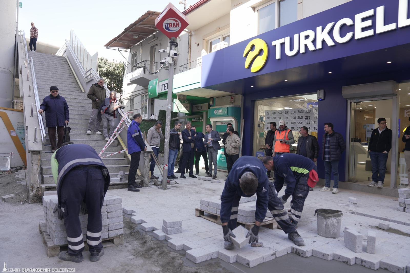 İzmir Büyükşehir Belediye Başkanı Dr. Cemil Tugay öncülüğünde başlatılan Güzel İzmir Hareketi kapsamında Bayraklı Sevgi Yolu baştan sona yenileniyor. Başkan Tugay, yürütülen düzenleme çalışmalarını yerinde denetleyerek İzmir Büyükşehir Belediyesi Yol Yapım, Bakım ve Onarım Daire Başkanı Selahattin Mamikoğlu ve İZBETON Genel Müdürü Gökhan Kara ile birlikte sahadaki ekiplerden bilgi aldı, işçilere kolay gelsin dileklerini iletti. Tugay, esnafla bir araya gelerek, bölgenin daha düzenli ve estetik bir görünüme kavuşması için belediye olarak titizlikle çalıştıklarını vurguladı.