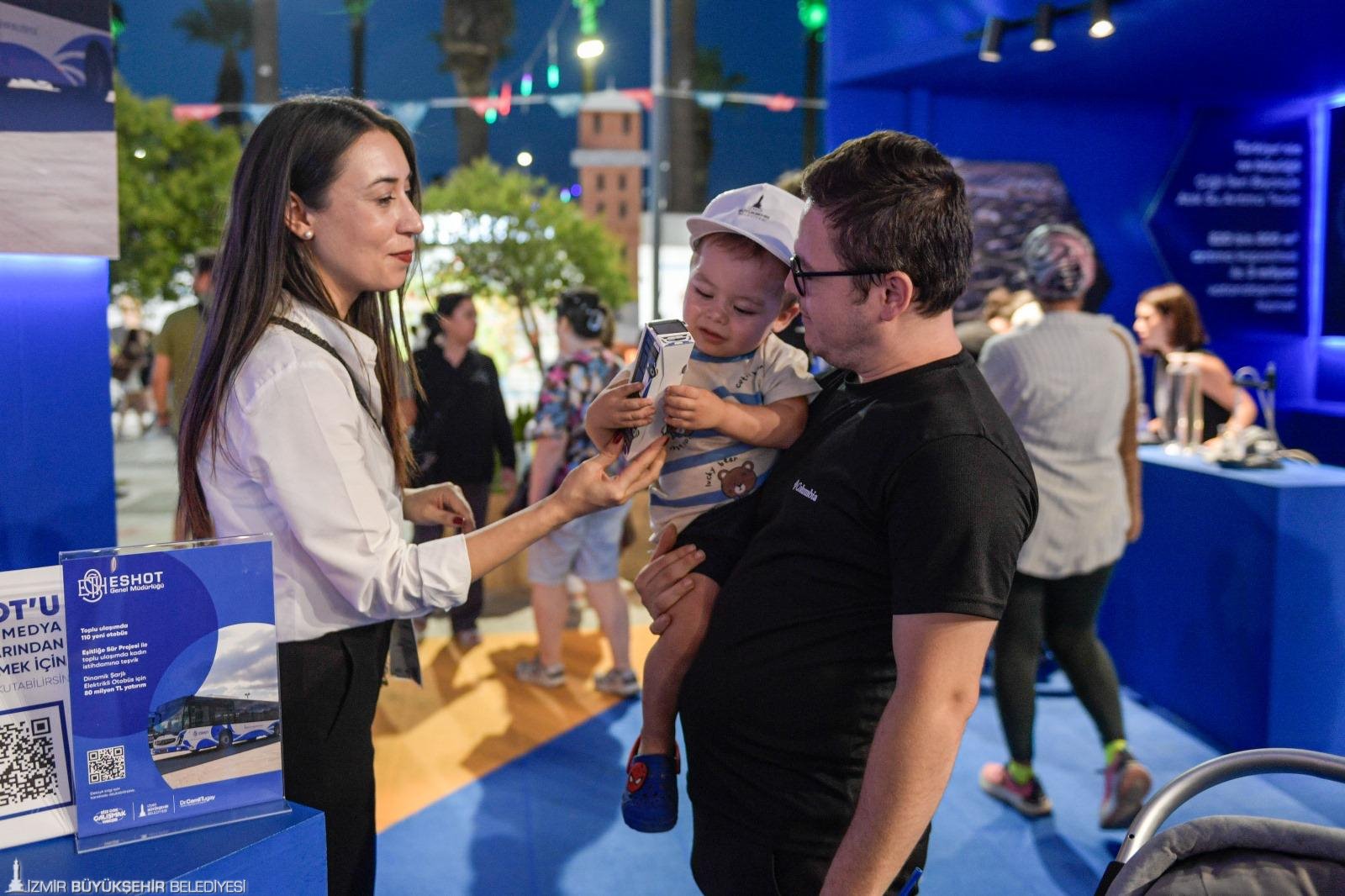 İzmir Büyükşehir Belediyesi, 94. İzmir Enternasyonal Fuarı’nda toplu taşıma hizmetlerini fuar ziyaretçilerine sunuyor. Belediye Sokağı’nda yer alan İzmir Metro, İZDENİZ, ESHOT Genel Müdürlüğü ve Büyükşehir-TCDD ortaklığıyla işletilen İZBAN stantları büyük ilgi görüyor. Hatlar, seferler, projeler hakkında bilgi alan fuar ziyaretçileri, keyifli aktivitelerle de eğleniyor.