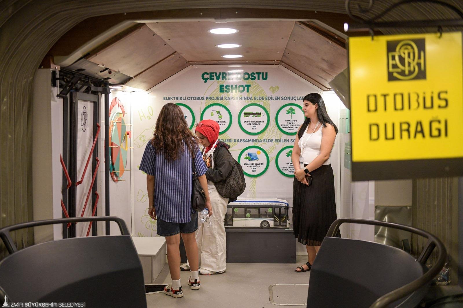 Teknolojik özellikleri ve yeni rengiyle İzmirlilerin büyük beğenisini kazanan yeni tasarımlı Nazar Boncuğu Mavi Otobüs de fuarda sergileniyor.. Nazar Boncuğu’nun yanında İzmirlileri geçmişe götüren Geçmişten Günümüze Gezici ESHOT Sergisi de zaman yolculuğu yaşatıyor. ESHOT’un kurumsal hafızasını taşıyan, Geçmişten Günümüze Gezici ESHOT Sergisi’nde İzmir’in toplu taşıma geçmişine dair önemli belgeler, görseller ve nostaljik detaylar sunuluyor. ESHOT’un kuruluş dönemi, görev yapan bürokratların bilgileri, kendi bünyesinde ürettiği otobüsün görselleri, geçmişte kullanılan otobüs parçaları, validatörler, kağıt biletler, ulaşım kartları büyük ilgi görüyor.