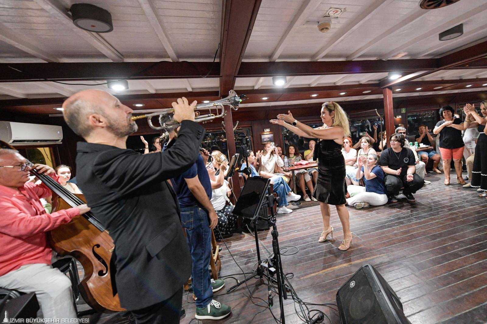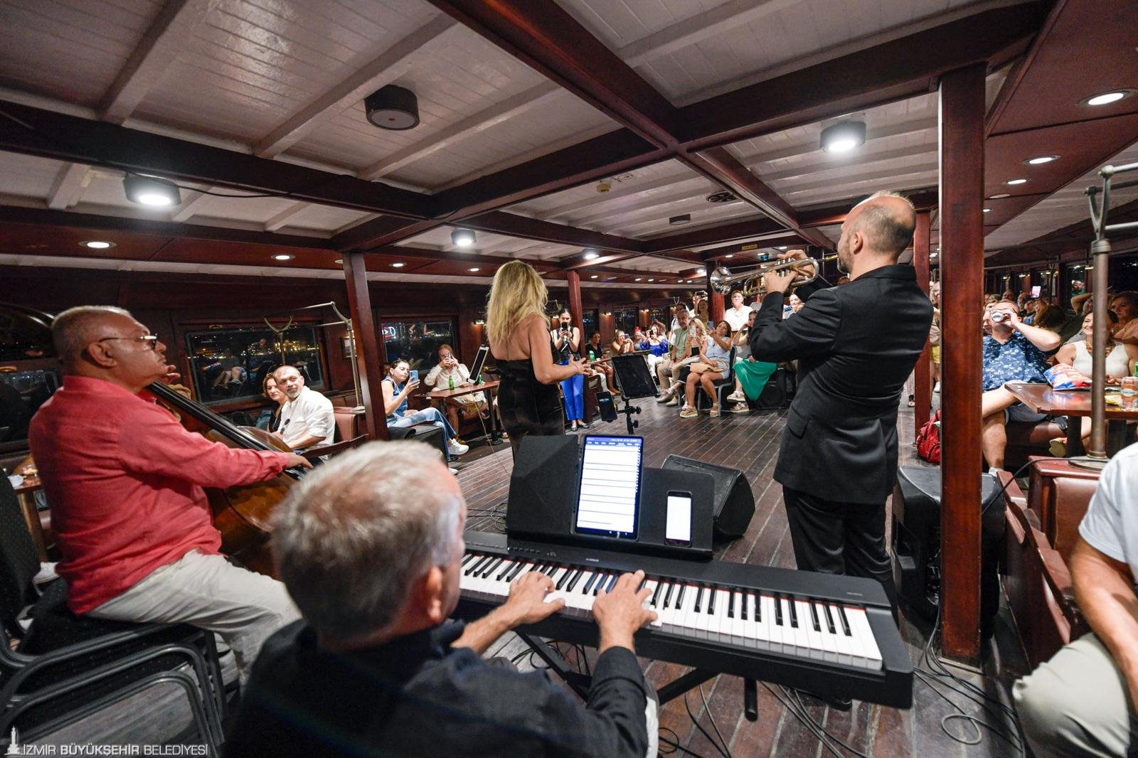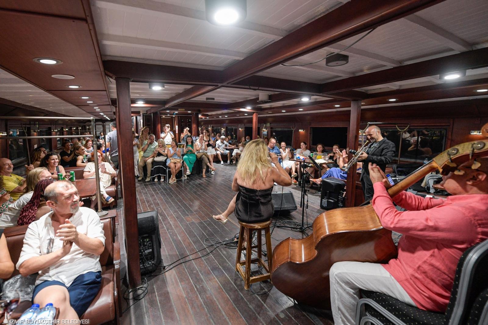 İzmir Körfezi, İzmir Büyükşehir Belediyesi’nin iştiraklerinden İZDENİZ AŞ’nin organizasyonuyla Tarihi Bergama Vapuru’nda düzenlenen Caz Gecesi etkinliğine sahne oldu. İzmirliler Körfez’in eşsiz manzarası ve Nükhet Yalçın Jazz Quartet’in müziği eşliğinde keyifli bir akşam geçirdi.