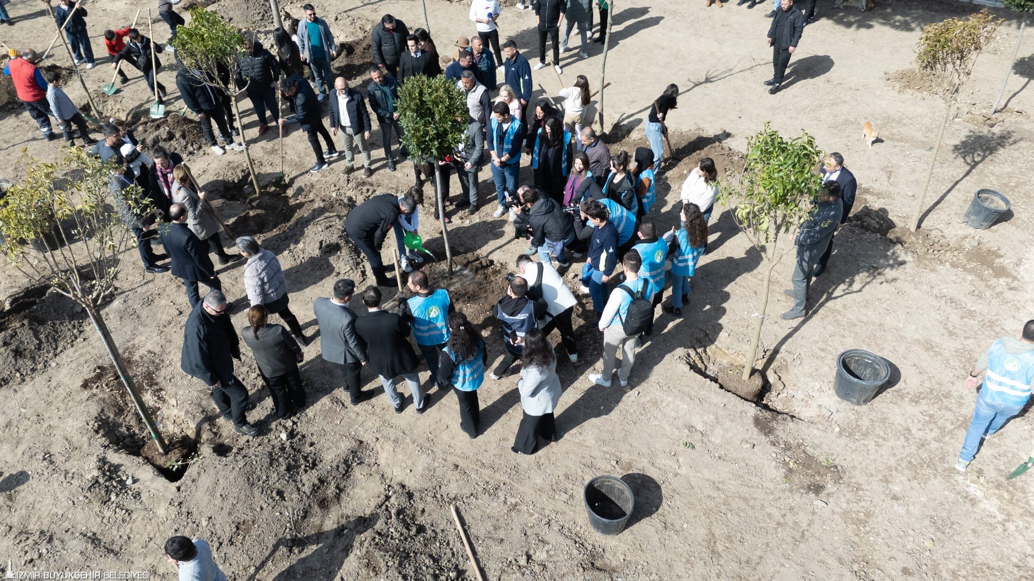 Başkan Tugay, konuşmanın ardından miniklerle beraber ağaçları toprakla buluşturarak can suyunu verdi. Ağaçlandırma çalışması kapsamında alana Doğu çınarı, akçaağaç, tarçın, sığla, ıhlamur, çitlembik, kurtbağrı, tijli defne ve erguvan türleri dikildi.