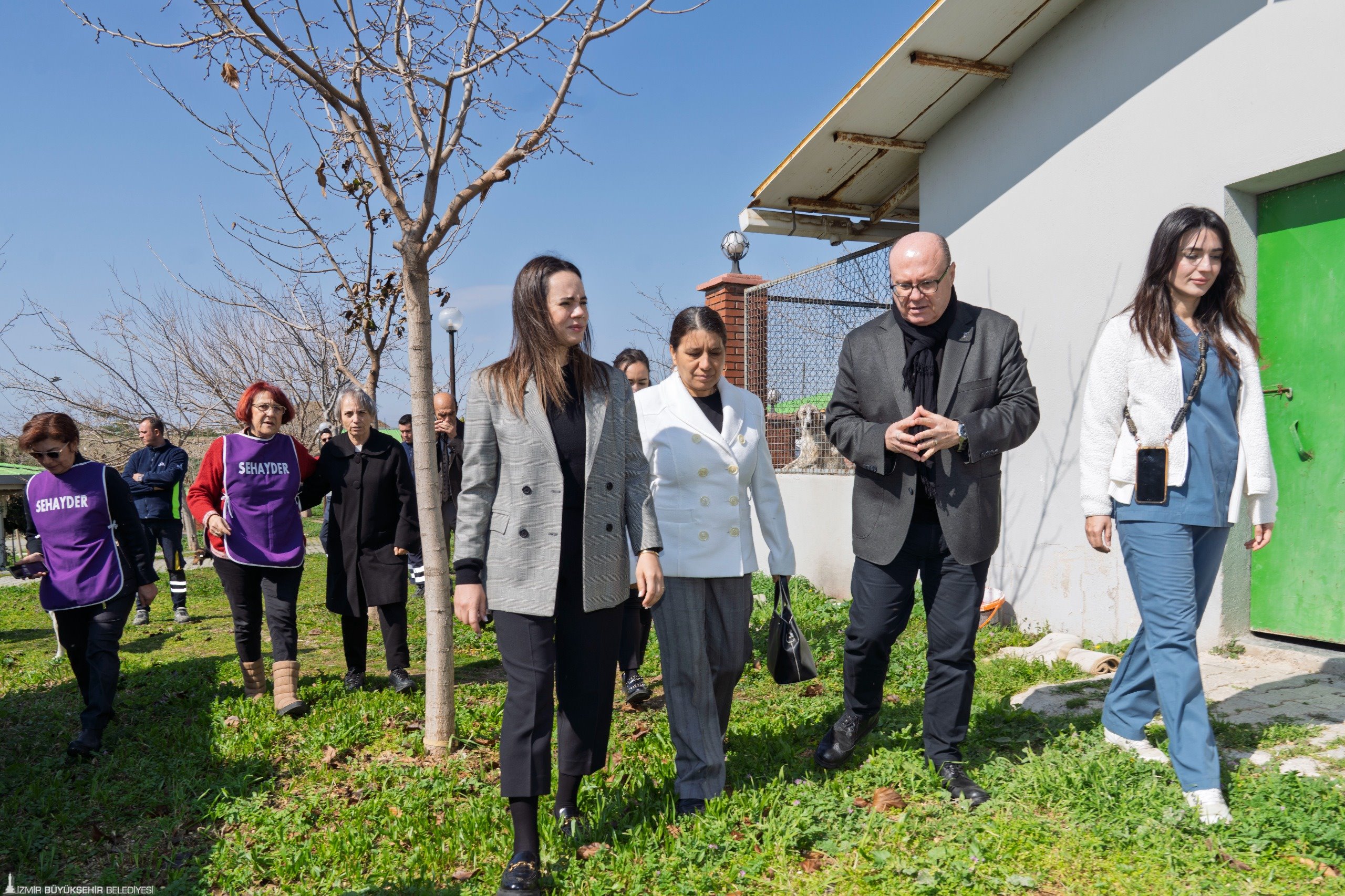 İzmir Büyükşehir Belediye Başkanı Dr. Cemil Tugay’ın eşi Öznur Tugay, Seferihisar Belediye Başkanı İsmail Yetişkin’in eşi Fatma Yetişkin, Seferihisar Doğa ve Hayvan Dostları Derneği (SEHAYDER) Başkanı Fevziye Özkan ile birlikte İzmir Büyükşehir Belediyesi’nin ilçede can dostlara hizmet sunan İsmet Sungur Bakımevini ziyaret etti. İzmir Büyükşehir Belediyesi Veteriner İşleri Dairesi Başkanı Hüseyin Gökhan Özdemir ve İzmir Büyükşehir Belediyesi Sosyal Hizmetler Dairesi Başkanı Ela Hızlı’nın da katıldığı programda Öznur Tugay, veterinerlerden barınakla ilgili bilgi aldı. 9 dönümlük arazi üzerinde kurulu 200 köpek kapasiteli bakımevinde, kedilere de bakım ve tedavi hizmeti sunulduğu ifade edildi.