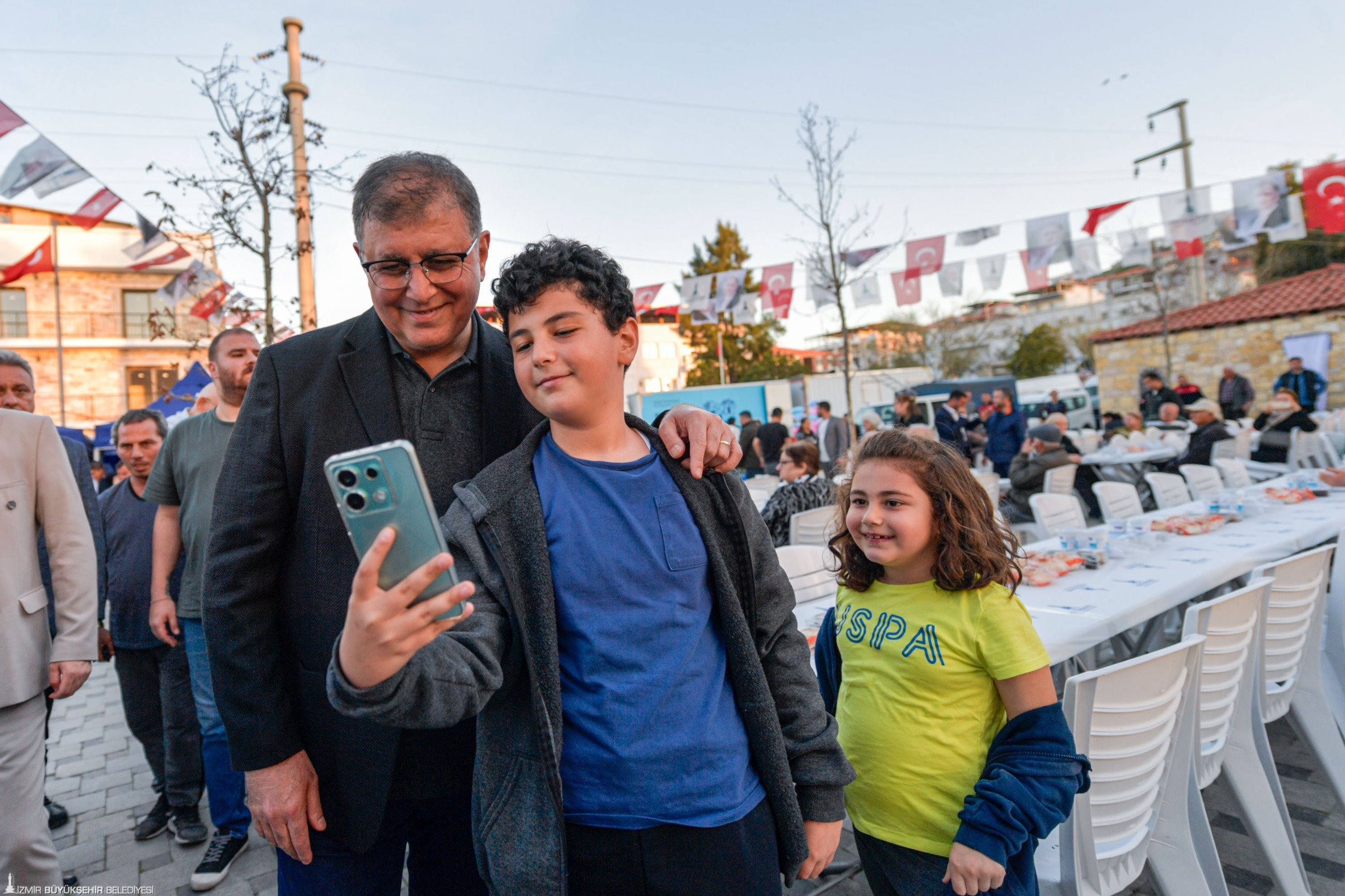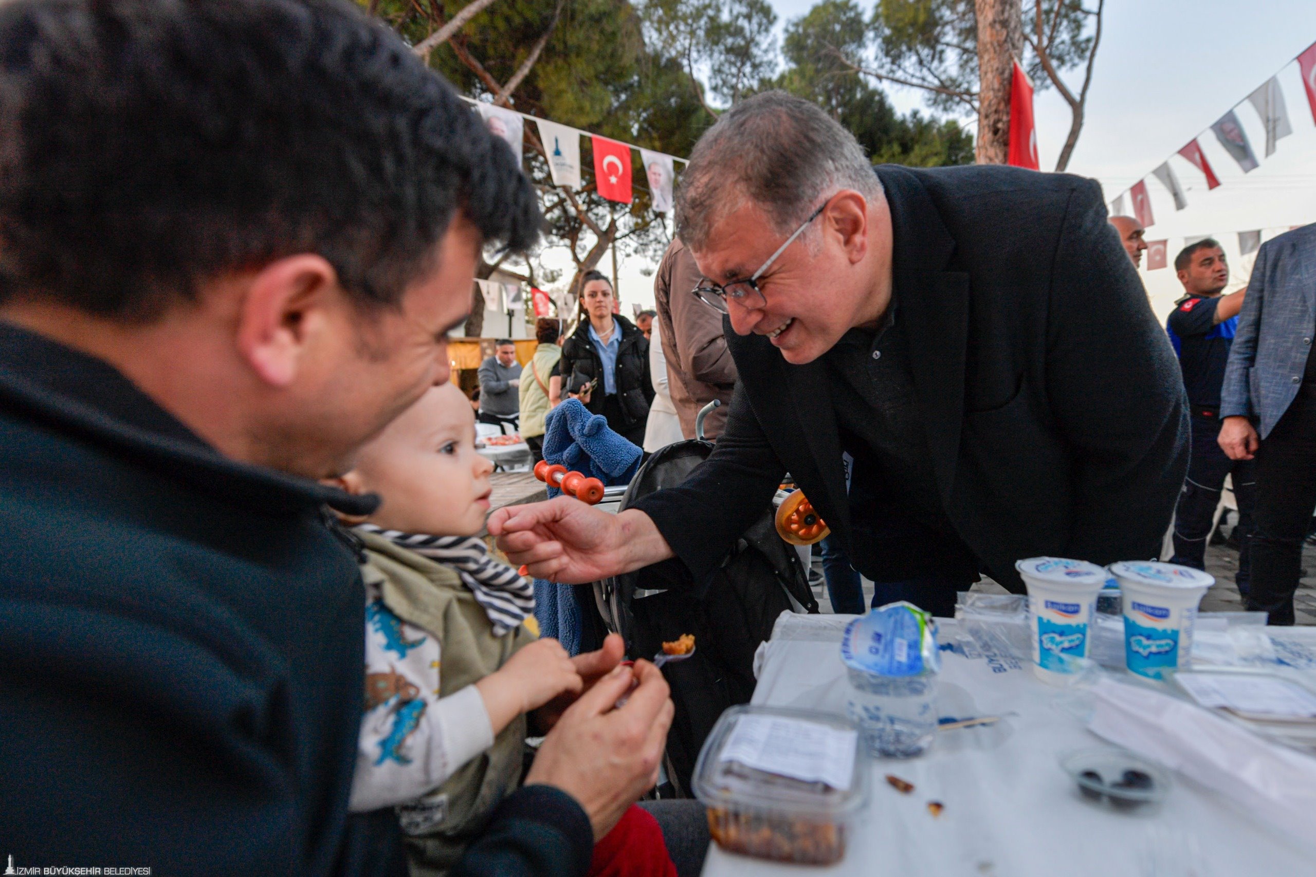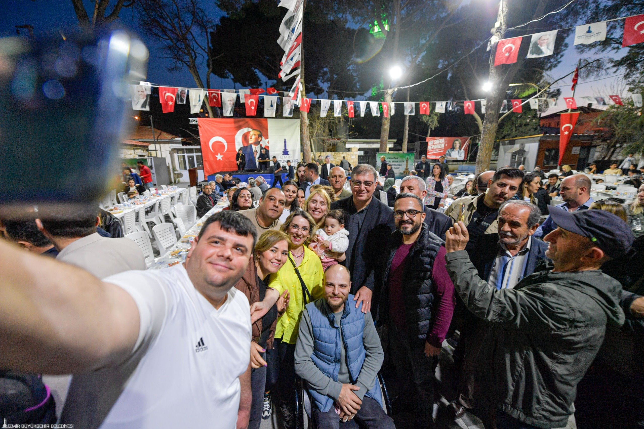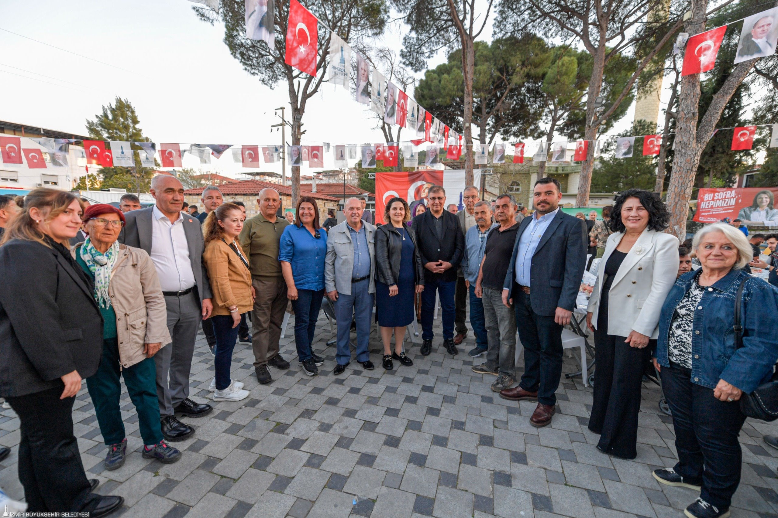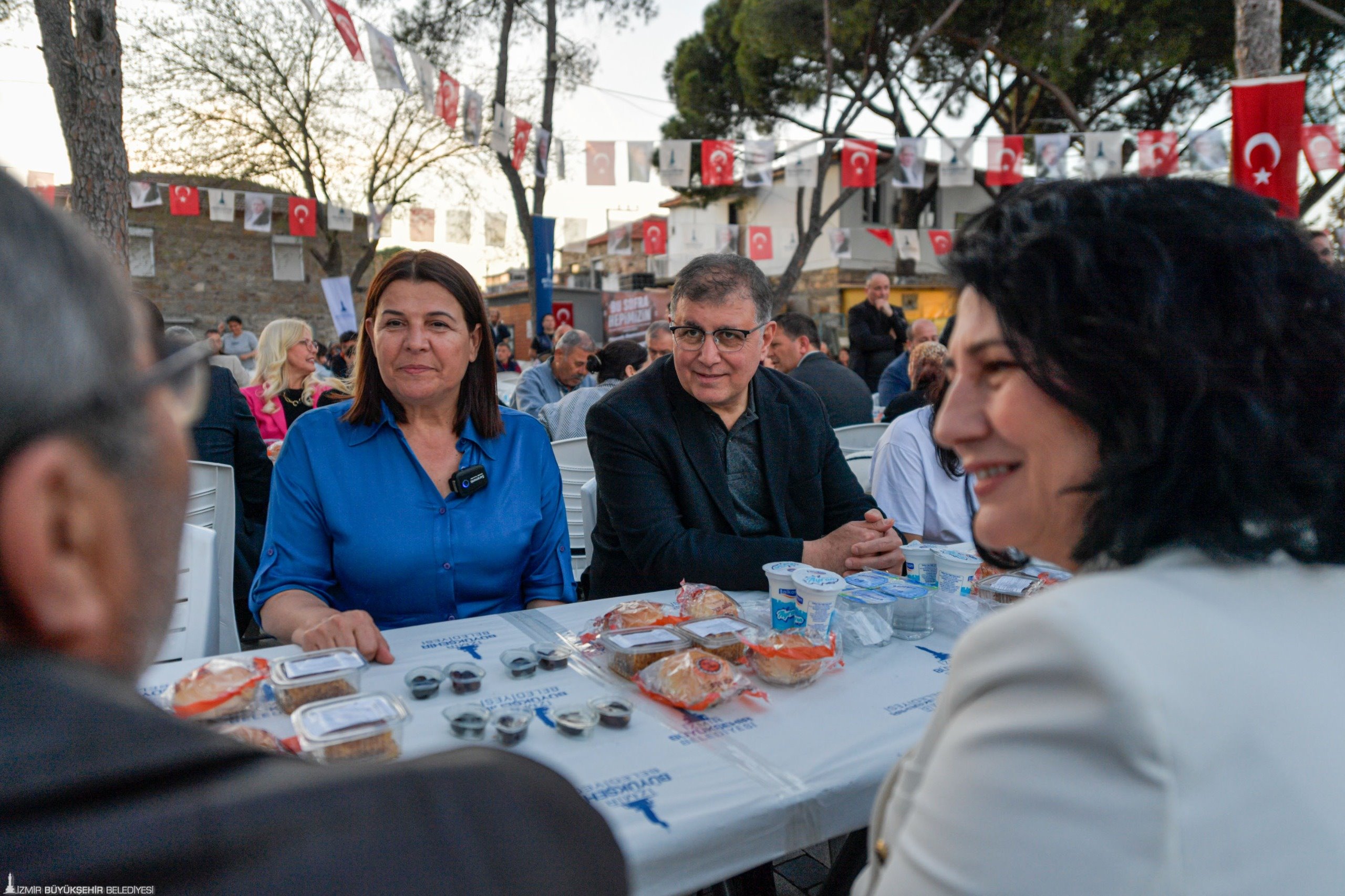 İzmir Büyükşehir Belediye Başkanı Dr. Cemil Tugay, ramazan ayının başından bu yana İzmir Büyükşehir Belediyesi'nin her gün bir ilçede kurduğu iftar sofralarında yurttaşlarla buluşmaya devam ediyor. Foça Bağarası'nda Foça Belediye Başkanı Saniye Bora Fıçı'nın ev sahipliğinde düzenlenen iftara katılan Dr. Cemil Tugay, Kınık Belediye Başkanı Sema Bodur, İzmir Büyükşehir Belediye Meclisi Başkan Vekili Altan İnanç, CHP Foça İlçe Başkanı Kenan Düzgün, İzmir Büyükşehir Belediyesi ile Foça Belediyesi bürokratları, meclis üyeleri, muhtarlar ve yurttaşlarla birlikte oruç açtı.