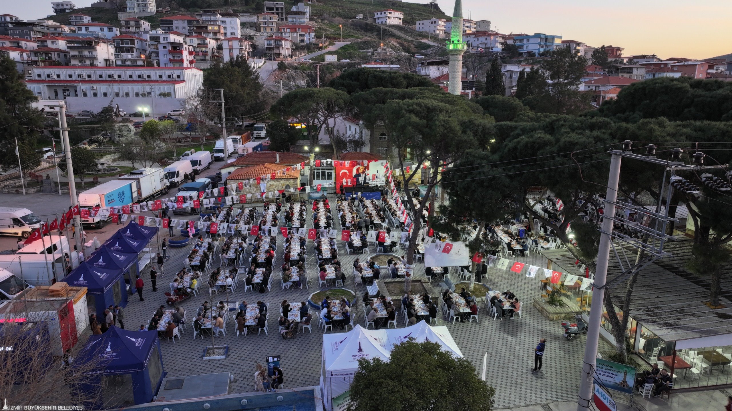 İzmir Büyükşehir Belediyesi’nin ramazan ayı boyunca 30 ilçede kurduğu iftar sofrası, Foça'da devam etti. Bağarası'nda kurulan iftar sofrasında yurttaşlarla bir araya gelen İzmir Büyükşehir Belediye Başkanı Dr. Cemil Tugay, güçlü ve güzel bir ülke için birlik ve beraberlik mesajı verdi.