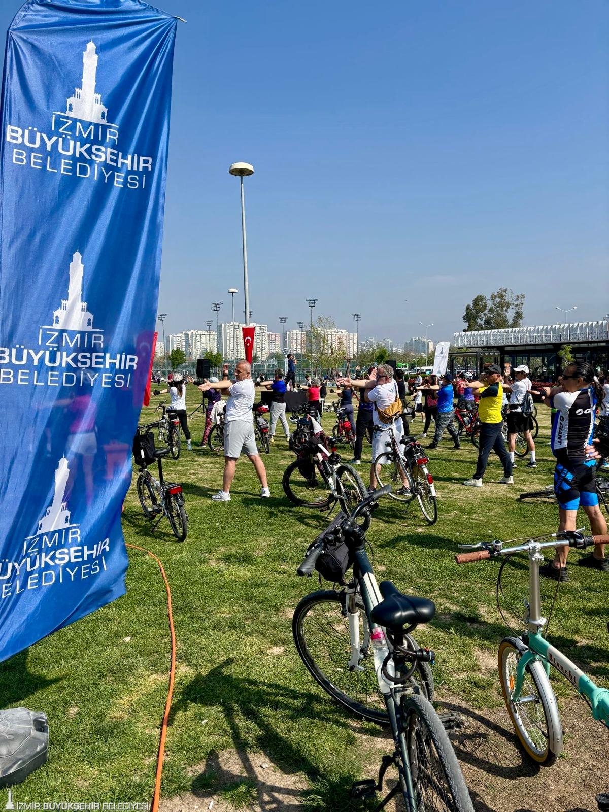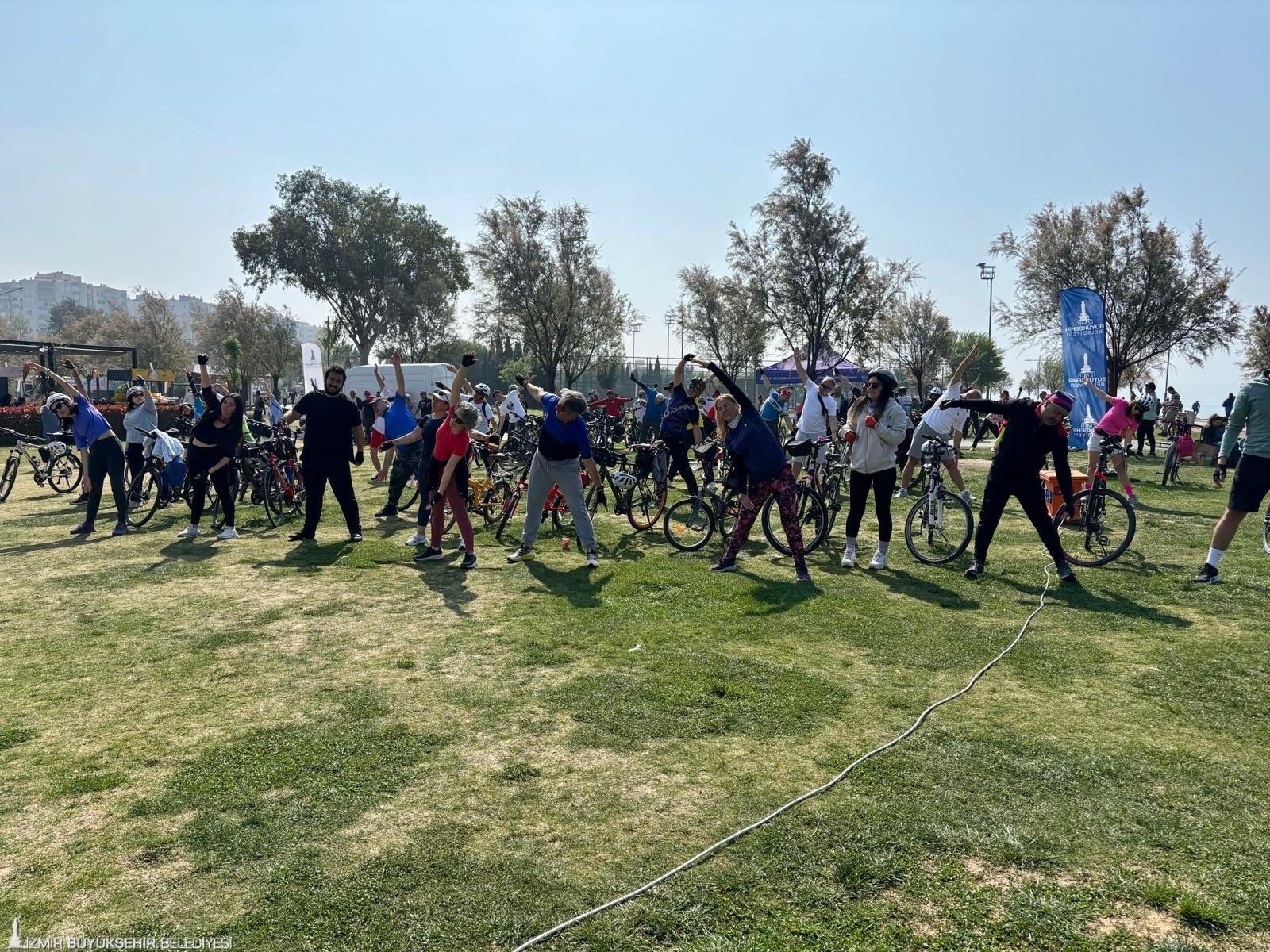 İzmir Büyükşehir Belediyesi Gençlik ve Spor Hizmetleri Dairesi Başkanlığı tarafından iki alanda kurulan stantlarda bisikletliler ücretsiz kayıtlarını yaparak etkinliğe katıldı. Büyükşehir’in eğitmenleri ve müzik eşliğinde tur öncesi katılımcılara ısınma hareketleri yaptırıldı. Isınma hareketlerinin ardından pedallar çevrilmeye başlandı.