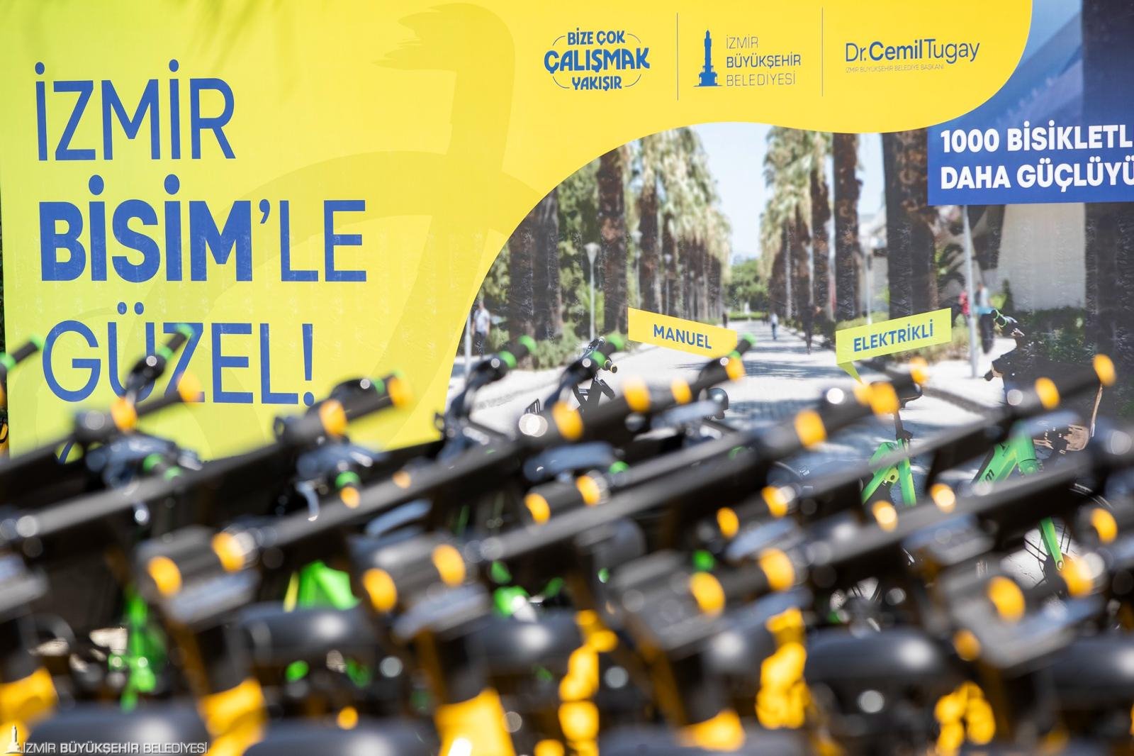 Kent içinde bisiklet kullanımını artırmak için çalıştıklarını kaydederek konuşmasına başlayan İzmir Büyükşehir Belediye Başkanı Dr. Cemil Tugay, “BİSİM İzmir için simgesel anlamda da çok önemli. BİSİM, ben göreve gelmeden üç ay önce yenileme ihtiyacı nedeniyle kaldırılmış. Bisikletler eskimiş ve yıpranmıştı. Pek çoğu kullanılmaz durumdaydı. 2014’te başlayan bu gelenek, çok saygı duyduğunuz, inandığımız, İzmir’imizin de ihtiyacı olan bir hizmetti. 500 elektriksiz, 500 elektrikli yepyeni bisikletleri kullanıma sunarak bisiklet kullanımını şehrimizde desteklemeye devam edeceğiz. İzmir, Türkiye’nin en güzel bisiklet rotalarına sahip ili. Deniz kıyısında, keyifli rekreasyon alanlarından geçen 105 kilometrelik bisiklet yolumuz var. Bisiklet gerçekten bir ulaşım aracı. İnsanlar şehir içinde bir yere giderken bisiklet kullansınlar, böyle bir alışkanlık oluşsun istiyoruz ki motorlu araçları daha az kullanalım, karbon emisyonumuz düşük olsun, havamız temiz olsun, trafik daha az olsun” diye konuştu.