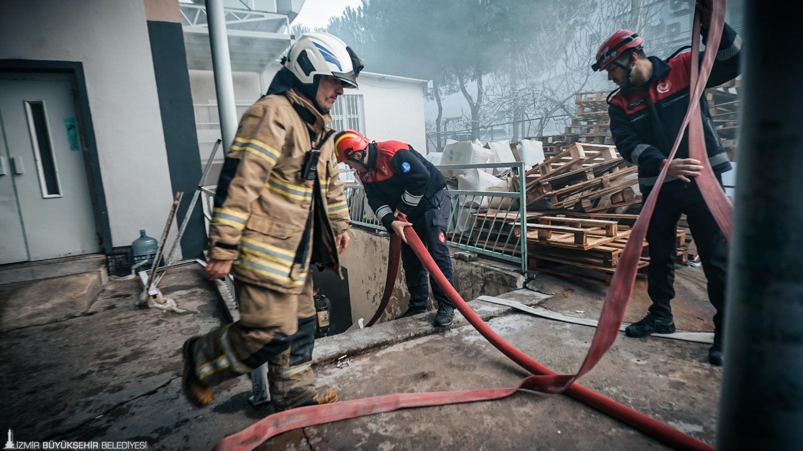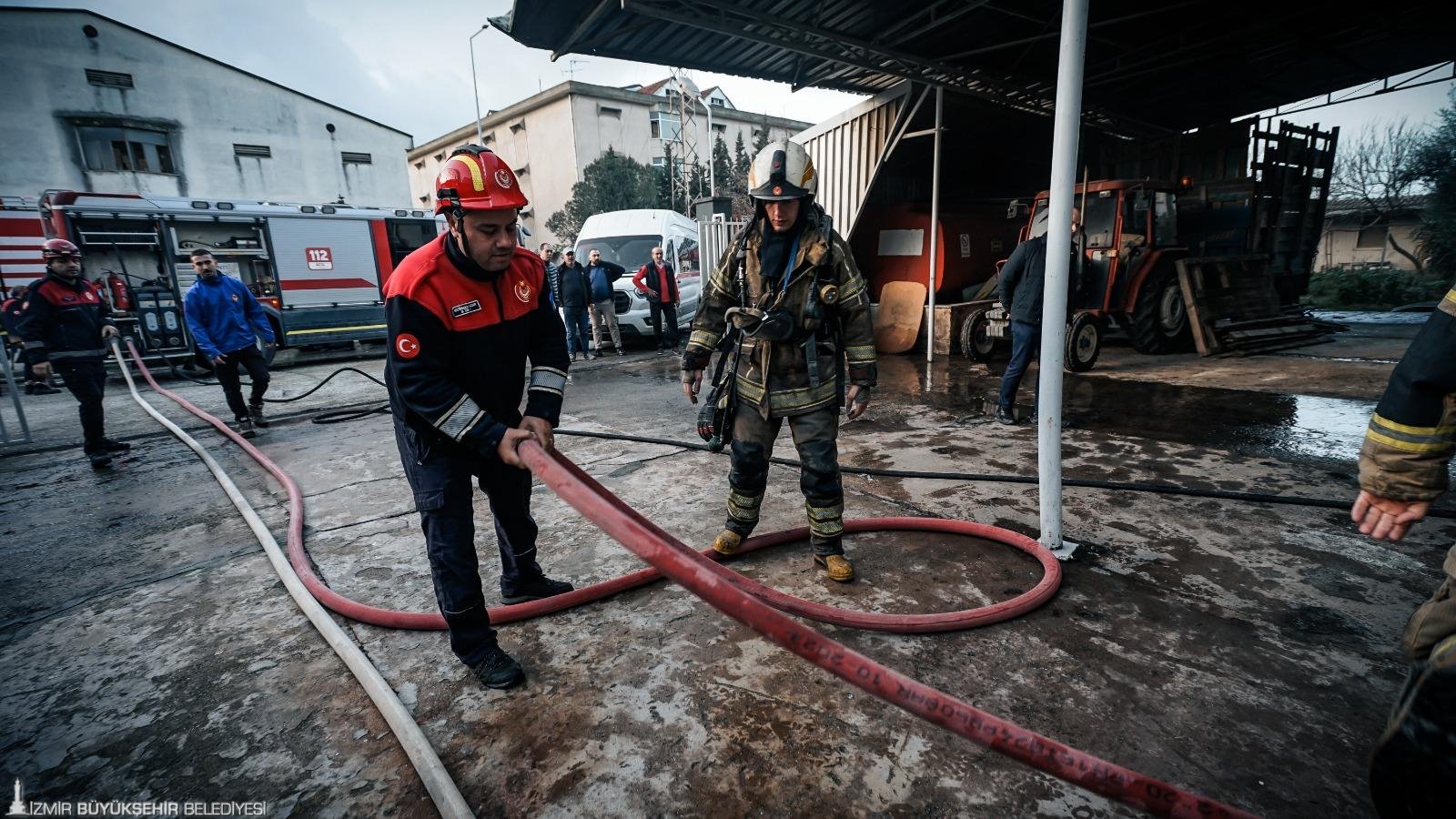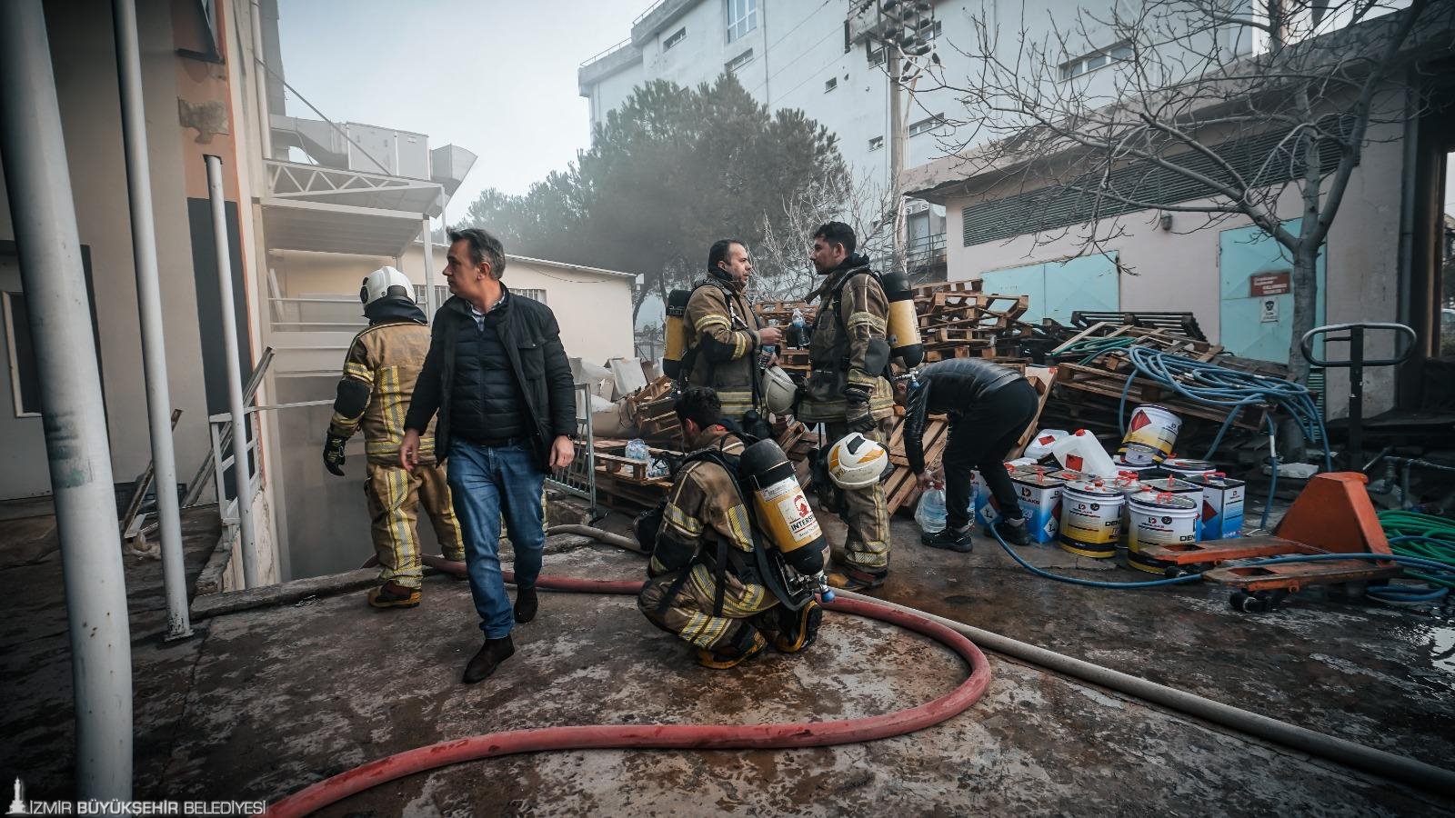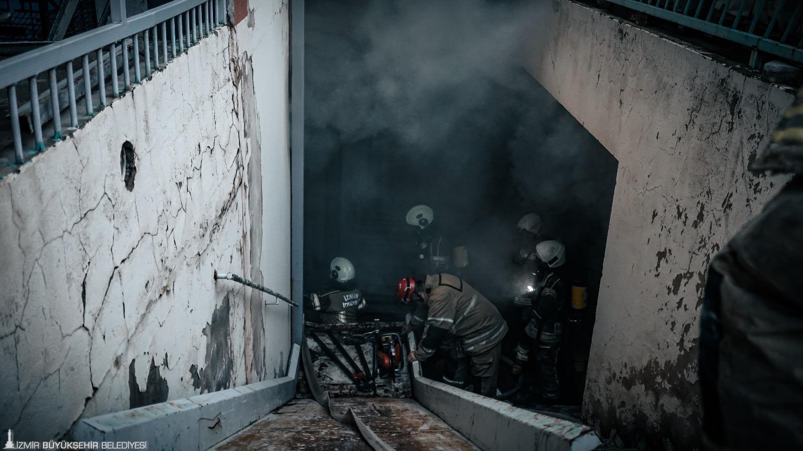 İzmir’in Bornova ilçesi Kemalpaşa Caddesi’nde ayakkabı üretimi yapılan 5 katlı bir fabrikada sabah saat 07.50 sıralarında yangın çıktı. Yükselen dumanları fark eden çalışanlar, durumu 112 Acil Çağrı Merkezi’ne bildirdi. İhbar üzerine İzmir Büyükşehir Belediyesi İtfaiye Dairesi Başkanlığı ekipleri 8 araç ve çok sayıda personelle kısa sürede olay yerine sevk edildi. Ekipler gelene kadar fabrikada bulunan çalışanların büyük bölümü binayı güvenli şekilde tahliye etti. Olay yerine ulaşan itfaiye ekipleri, yangına müdahale ederken üst katlarda bulunan birkaç kişinin de güvenli şekilde aşağı indirilmesini sağladı. Fabrikanın zemin katında çıktığı belirlenen yangın, ekiplerin hızlı ve koordineli müdahalesi sayesinde diğer katlara sıçramadan yaklaşık 45 dakika içerisinde kontrol altına alındı. Yangının mesai saati öncesinde meydana gelmesi ve içerideki personel sayısının az olması yaşanabilecek can kaybı ya da yaralanmayı önledi. Ayrıca ekiplerin zamanında müdahalesi sayesinde alevlerin çevredeki diğer tesislere sıçraması da engellendi.
