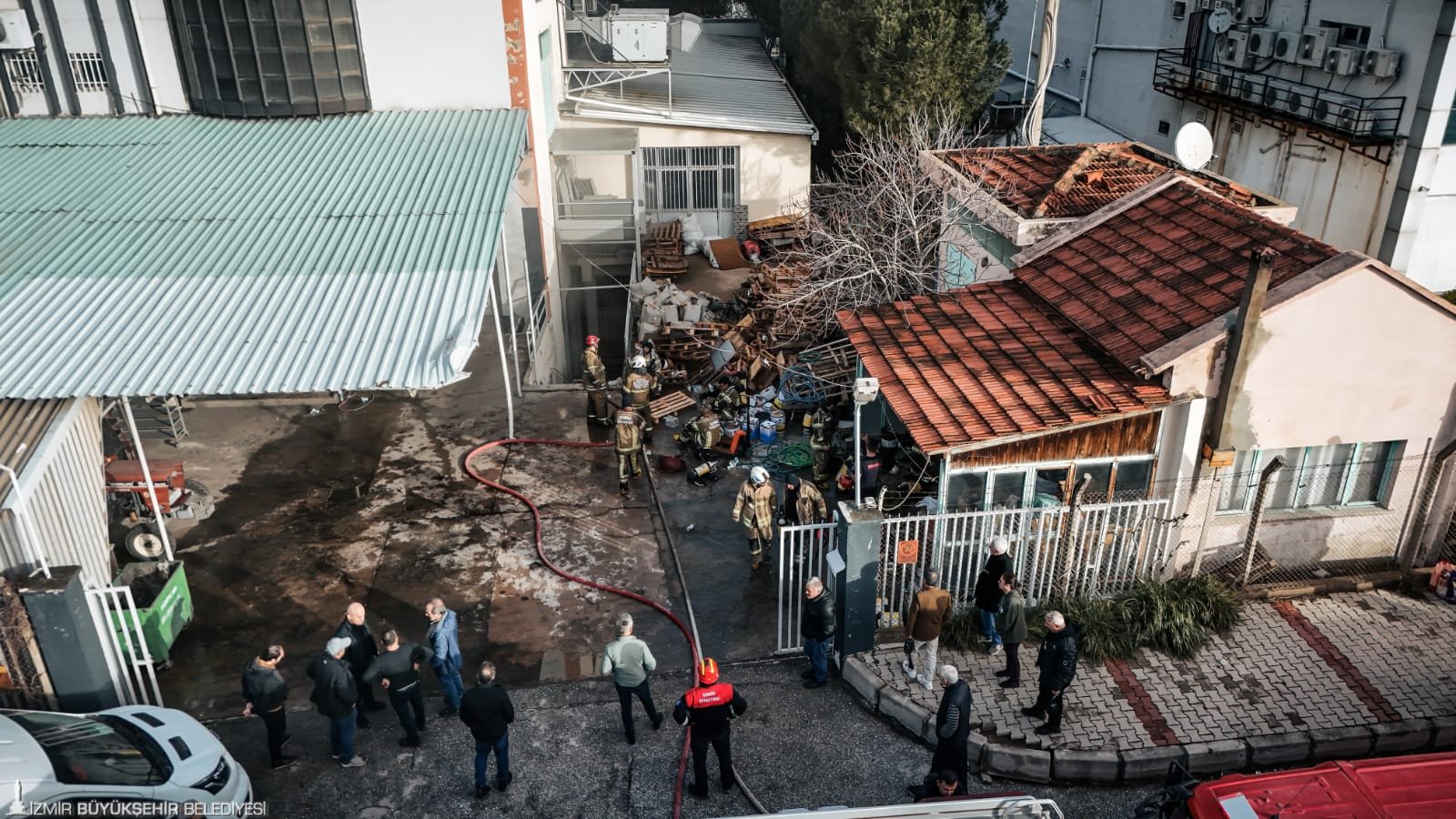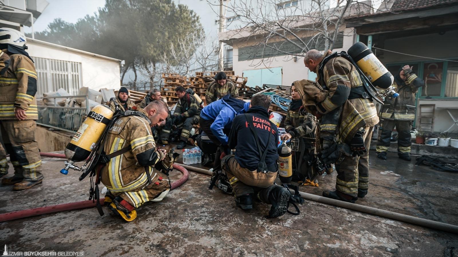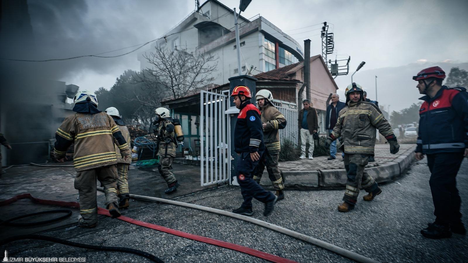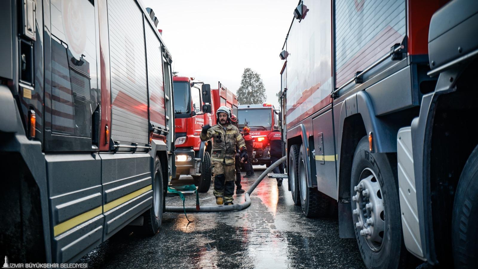 İzmir’in Bornova ilçesi Kemalpaşa Caddesi’nde ayakkabı üretimi yapılan 5 katlı bir fabrikada sabah saat 07.50 sıralarında yangın çıktı. Yükselen dumanları fark eden çalışanlar, durumu 112 Acil Çağrı Merkezi’ne bildirdi. İhbar üzerine İzmir Büyükşehir Belediyesi İtfaiye Dairesi Başkanlığı ekipleri 8 araç ve çok sayıda personelle kısa sürede olay yerine sevk edildi. Ekipler gelene kadar fabrikada bulunan çalışanların büyük bölümü binayı güvenli şekilde tahliye etti. Olay yerine ulaşan itfaiye ekipleri, yangına müdahale ederken üst katlarda bulunan birkaç kişinin de güvenli şekilde aşağı indirilmesini sağladı. Fabrikanın zemin katında çıktığı belirlenen yangın, ekiplerin hızlı ve koordineli müdahalesi sayesinde diğer katlara sıçramadan yaklaşık 45 dakika içerisinde kontrol altına alındı. Yangının mesai saati öncesinde meydana gelmesi ve içerideki personel sayısının az olması yaşanabilecek can kaybı ya da yaralanmayı önledi. Ayrıca ekiplerin zamanında müdahalesi sayesinde alevlerin çevredeki diğer tesislere sıçraması da engellendi.