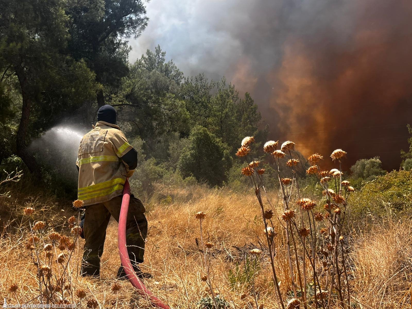 İzmir Büyükşehir Belediyesi İtfaiye Dairesi Başkanlığı ile İzmir Orman Bölge Müdürlüğü ekipleri, bugün öğlen saatlerinde Bornova'nın Gökdere Mahallesi'ne yakın bölgede başlayan orman yangınını söndürmek için seferber oldu. İzmir İtfaiyesi’nin karadan müdahale ettiği yangına, İzmir Orman Bölge Müdürlüğü ekipleri de hem karadan hem havadan katıldı. Gökdere Mezarlığı üstündeki yangının yerleşim yerleri ile geri dönüşüm tesislerini etkilememesi için ekipler konuşlandırıldı. Geri dönüşüm tesislerini etkileyen alevler, itfaiyecilerin yoğun mücadelesi ile önlendi.