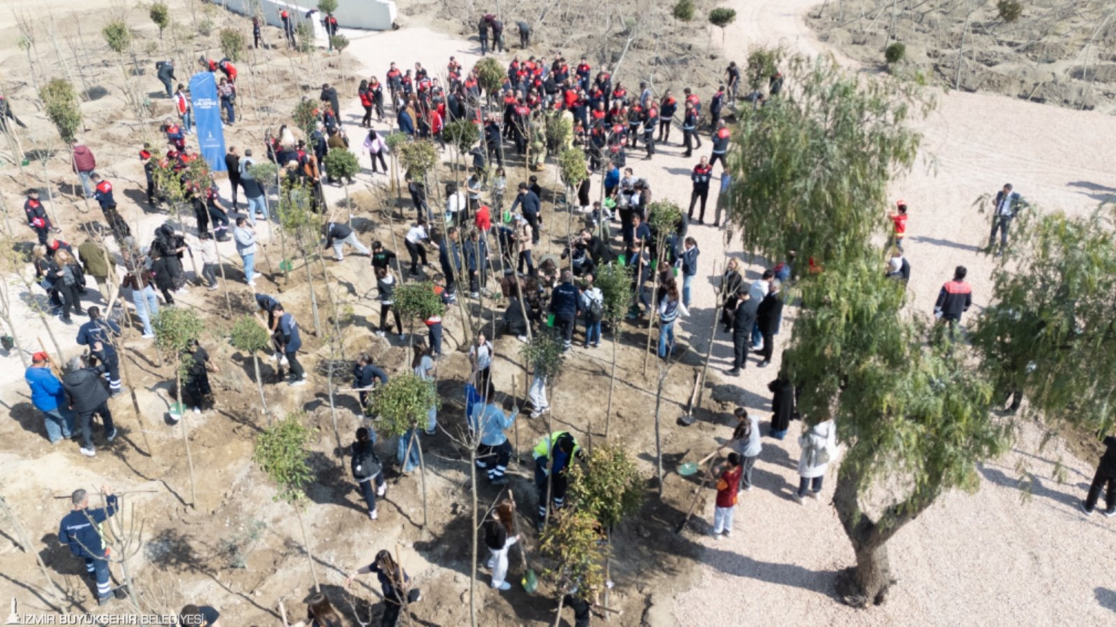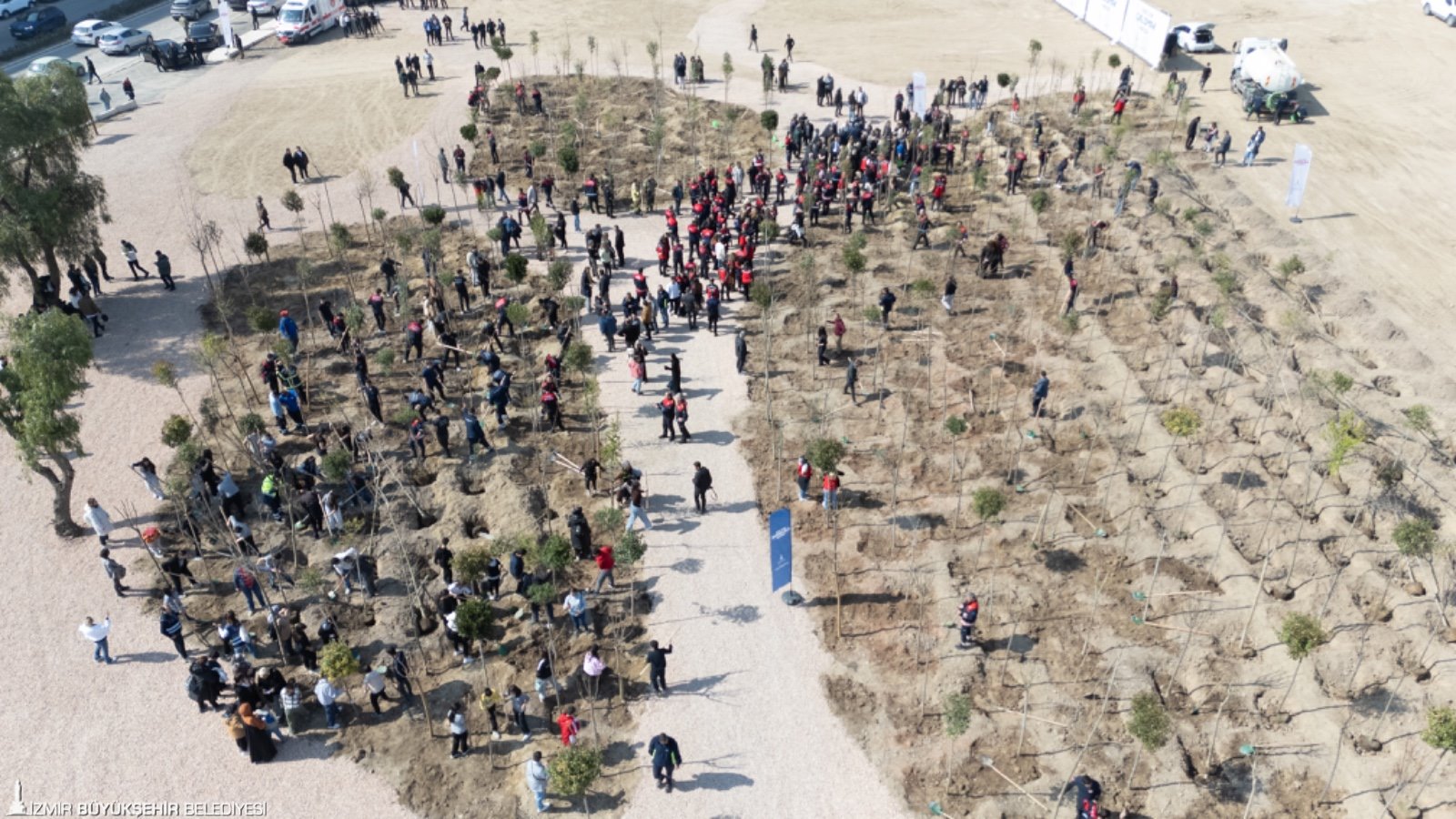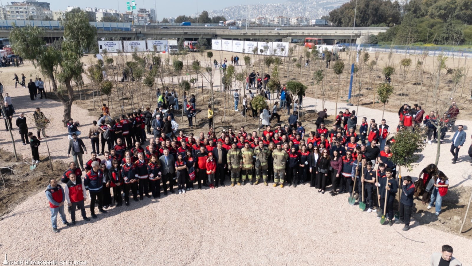 İzmir Büyükşehir Belediyesi, kent ekolojisini güçlendirmek ve iklim değişikliğiyle mücadeleye katkı sağlamak amacıyla Bornova’da mikro orman çalışmalarını başlattı. Aşık Veysel Rekreasyon Alanı yanındaki 8 bin metrekarelik alana ilk ağaçlar, İzmir Büyükşehir Belediye Başkanı Dr. Cemil Tugay’ın katıldığı törenle dikildi. İzmir’in iklimine uygun yaklaşık 10 bin ağaç ve çalı bitkisinin dikileceği mikro ormana, yangınlarla mücadelede canlarını ortaya koyan itfaiye personelinin onuruna “İzmir İtfaiyesi Korusu” adı verildi. Başkan Tugay, Talatpaşa Ortaokulu ve Şehit Sevda Güngör Özel Eğitim Uygulama Okulu öğrencileri ile itfaiye personeli eşliğinde fidanları toprakla buluşturdu.