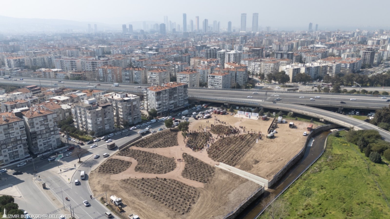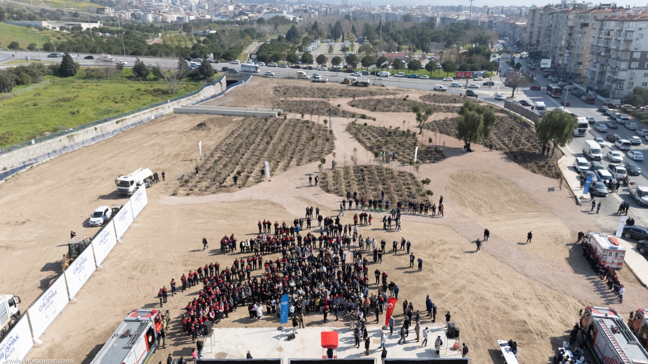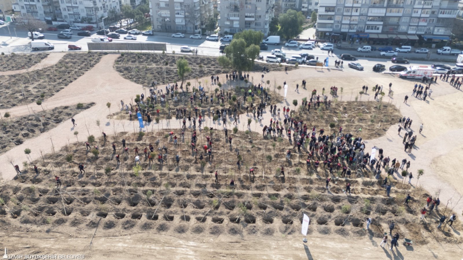 İzmir Büyükşehir Belediyesi, kent ekolojisini güçlendirmek ve iklim değişikliğiyle mücadeleye katkı sağlamak amacıyla Bornova’da mikro orman çalışmalarını başlattı. Aşık Veysel Rekreasyon Alanı yanındaki 8 bin metrekarelik alana ilk ağaçlar, İzmir Büyükşehir Belediye Başkanı Dr. Cemil Tugay’ın katıldığı törenle dikildi. İzmir’in iklimine uygun yaklaşık 10 bin ağaç ve çalı bitkisinin dikileceği mikro ormana, yangınlarla mücadelede canlarını ortaya koyan itfaiye personelinin onuruna “İzmir İtfaiyesi Korusu” adı verildi. Başkan Tugay, Talatpaşa Ortaokulu ve Şehit Sevda Güngör Özel Eğitim Uygulama Okulu öğrencileri ile itfaiye personeli eşliğinde fidanları toprakla buluşturdu.