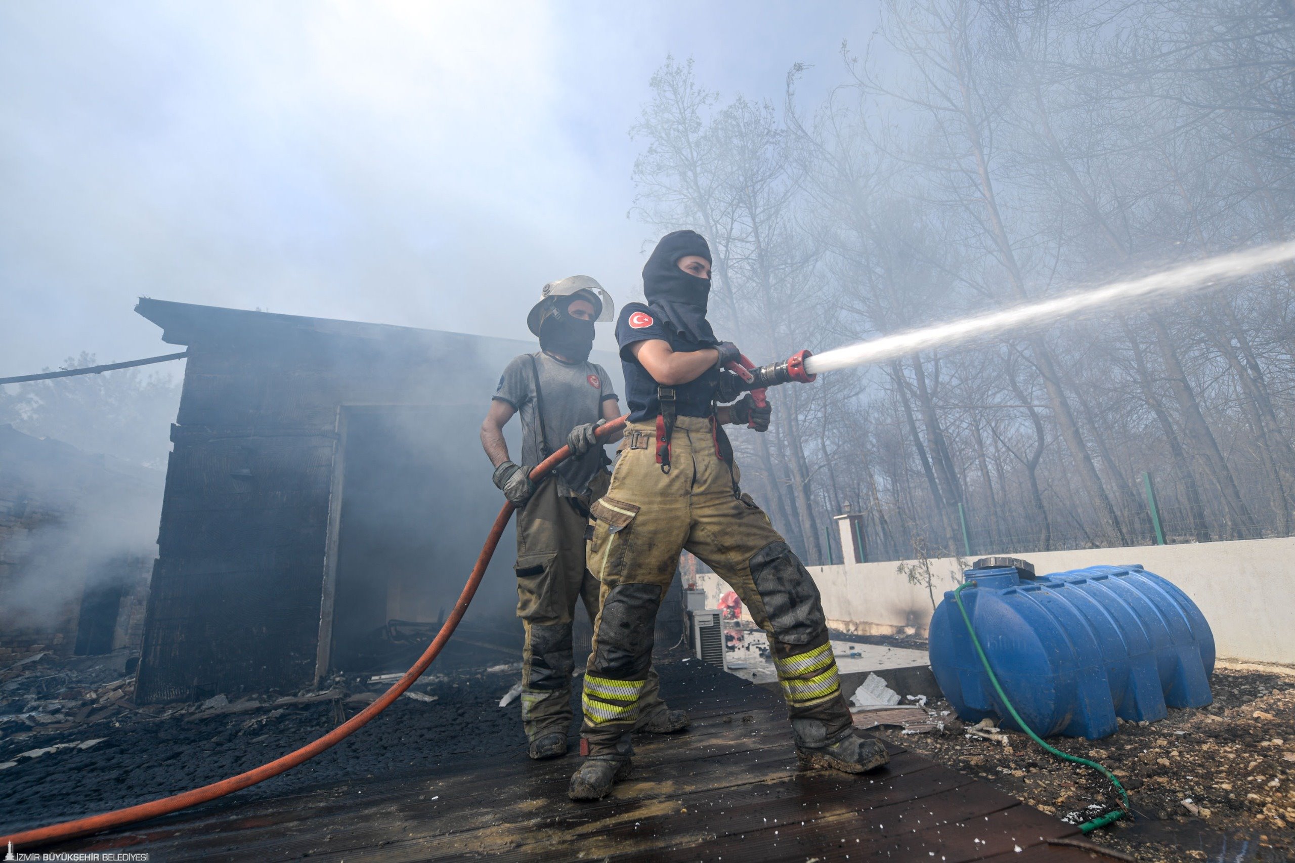 İzmir Büyükşehir Belediyesi İtfaiye ve İzmir Orman Bölge Müdürlüğü ekipleri, Bornova Yakaköy Mahallesi'nde çıkan yangına müdahalesini sürdürüyor. 23 araç ve 100 personelle sahada olduklarını söyleyen İzmir Büyükşehir Belediyesi İtfaiye Dairesi Başkanı Yaşar Korkmaz, “Yaşam alanlarını korumak için seferber olduk” diye konuştu.