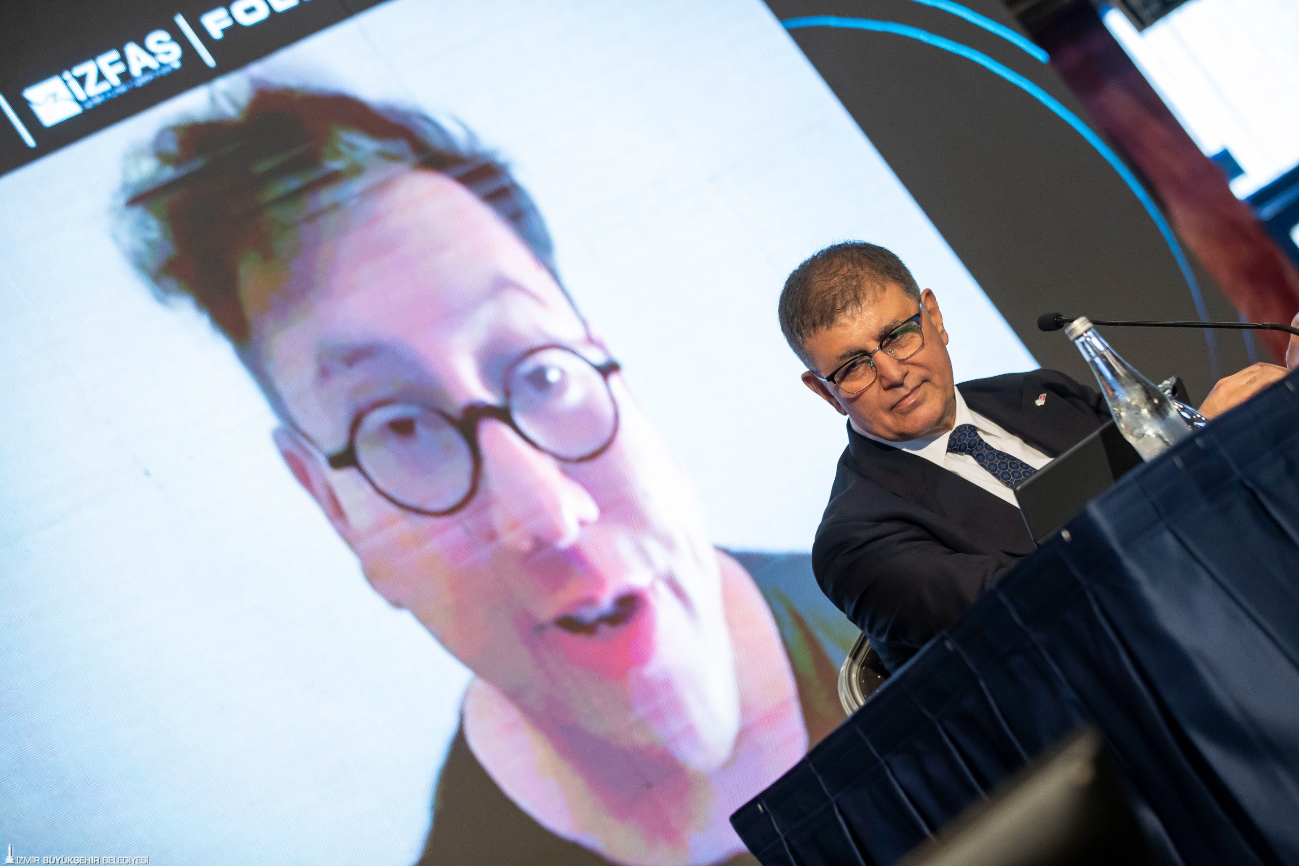 Toplantının açılış konuşmasını yapan Başkan Tugay, “Benim için çok özel bir an. Çünkü Refik Anadol, dünyanın çok özel sanatçılarından biri. Sanata yeni yollar ve çığırlar açan biri. Türkiye’de yaptığı sergilere çok yoğun ilgi oldu. İzmir’de şu ana kadar henüz bir eseri sergilenmemişti. Mesut Sancak ve Folkart ailesine hem fuara, hem de İzmir’in kültür-sanat yaşamına sağladıkları katkılar nedeniyle teşekkür ediyoruz. Refik Anadol’un sergisinin bu kadar kısa sürede gerçekleşmesini sağlamak için gösterdikleri çabadan dolayı hepsine ayrı ayrı minnettarız. Bu serginin Türkiye’nin en eski ve köklü fuarının açılışı ile birlikte halkın beğenisine sunulması, bizim için büyük bir onur” sözlerine yer verdi. Başkan Tugay’ın, Refik Anadol’un yeni eserlerinin de İzmirlilerle buluşmaya devam etmesini temenni etti.