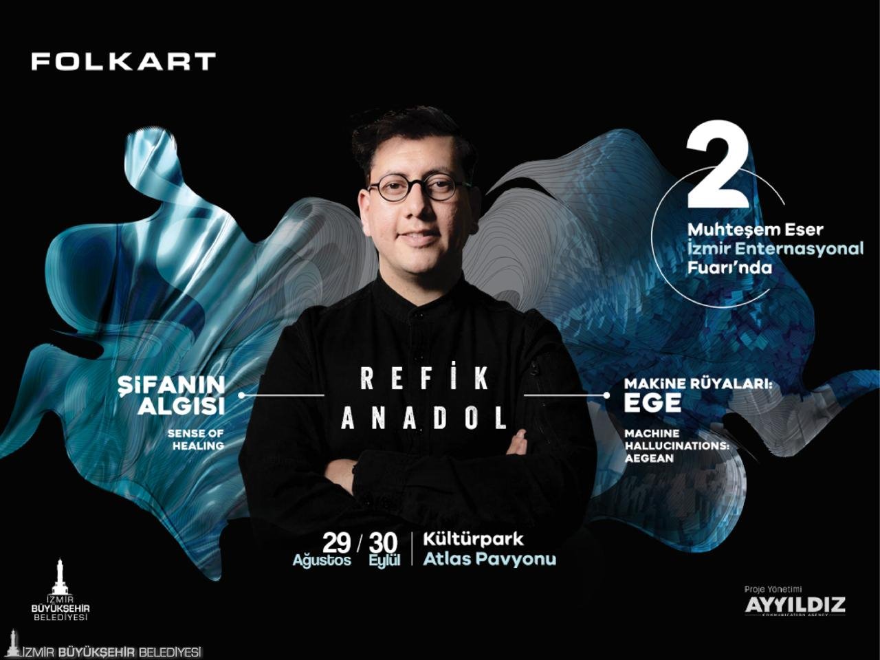 Çağdaş sanat dünyasında öncü konumda yer alan Refik Anadol’un Sense of Healing (Şifanın Algısı) ve Machine Hallucinations-Aegean (Makine Rüyaları: Ege) eserleri, bu yıl 94. kez kapılarını açacak İzmir Enternasyonal Fuarı’nda olacak. Şifanın Algısı ruh sağlığı tedavisi gören bireylerin beyin verilerinden yola çıkarak empati ve şefkati tetikleyen bir yapay zekâ veri heykeliyken, Makine Rüyaları: Ege ise Ege Denizi’nin çevresel verilerini dijital pigmentlere dönüştürerek doğayla yeniden duyusal bir bağ kurulmasına olanak tanıyor. Anadol’un eserleri, Folkart’ın destekleriyle 29 Ağustos-30 Eylül 2025 tarihleri arasında Kültürpark’ta sanatseverlerle buluşacak. “Makine Rüyaları: Ege”, dünyada ilk kez İzmir’de sergilenecek.