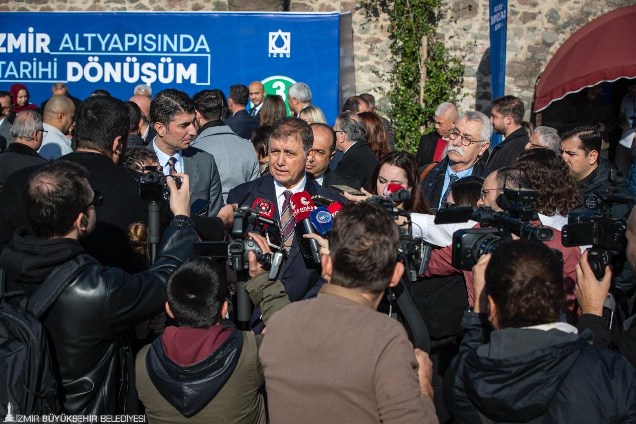 İzmir Büyükşehir Belediye Başkanı Dr. Cemil Tugay, İZSU Genel Müdürlüğü’nün Konak, Karabağlar ve Bayraklı ilçelerinde birleşik sistemle çalışan hatları yenilemek için yapacağı yağmur suyu ayrıştırma projesinin temel atma töreni sonrası basın mensuplarının kent gündemine ilişkin sorularını yanıtladı.