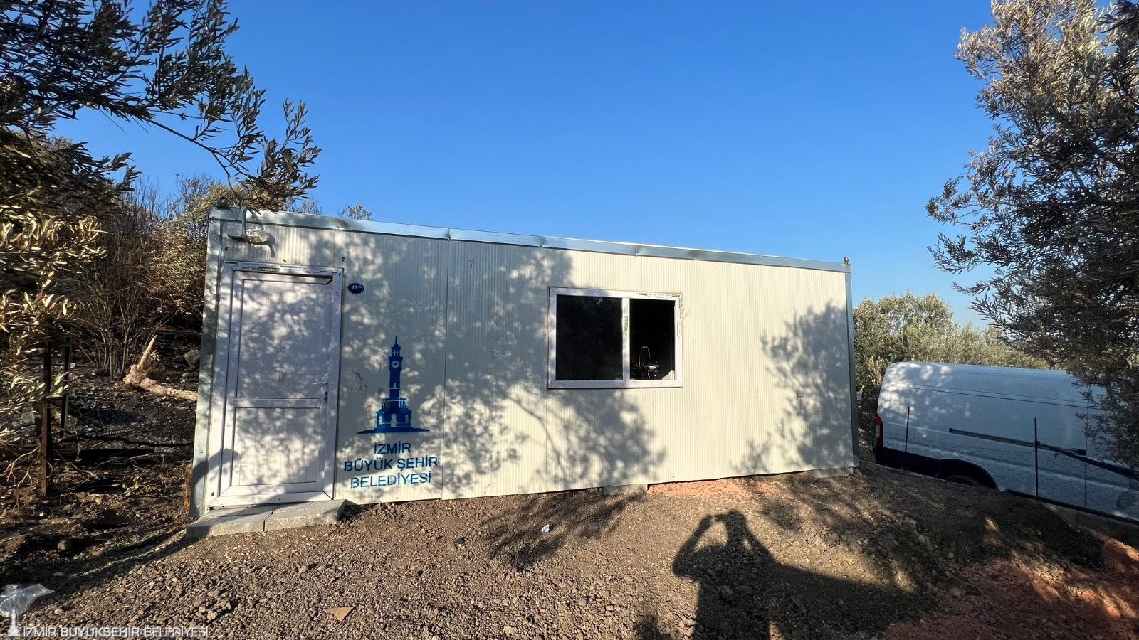 İzmir Büyükşehir Belediyesi Aliağa Bozköy ve Foça Ilıpınar’da orman yangınından etkilenen yurttaşların yaralarının sarılması için çalışmalarını sürdürüyor. Yangın mağdurlarının öncelikle gıda, temizlik, giyecek gibi temel ihtiyaçları hızla karşılandı. Barınma sorununun çözümü için konteyner kurulumu tamamlanırken, hasar gören yapıların tadilatı için harekete geçildi. Bölgenin su ihtiyacı karşılanırken yem ve fide desteği için çalışmalar planlandı.