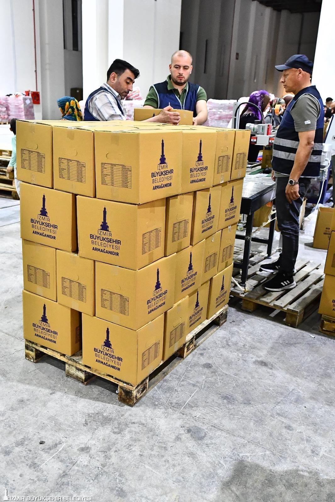 İzmir Büyükşehir Belediyesi, Kurban Bayramı öncesinde ihtiyaç sahibi hanelere yönelik gıda paketi dağıtımını başlattı. İzmir Büyükşehir Belediyesi Sosyal Hizmetler Dairesi Başkanlığı ekiplerince hazırlanan gıda paketleri, belirlenen kriterler doğrultusunda kentteki yaklaşık 40 bin aileye ulaştırılacak. Dayanışmayı büyütmek amacıyla hareket eden İzmir Büyükşehir Belediyesi, sosyal yardım takip sisteminde kayıtlı yaklaşık 40 bin İzmirliye 1000’er liralık bayram katkısı da verecek. 1000 TL’lik tutar İzmir Şehir Kartı’na aktarılacak. Vatandaşlar alışveriş desteği olarak yatırılan miktarla bizvariz.izmir.bel.tr sitesinde yer alan üye iş yerlerinde harcama yapabilecek.