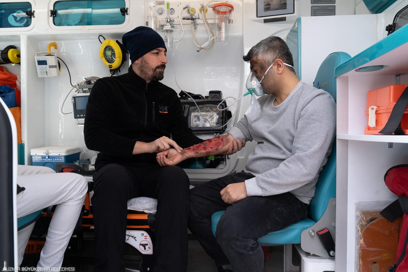 Toplanma alanında yapılan sayımda iki personelin eksik olduğu belirlendi. Senaryo gereği yaralandığı bildirilen personelden biri ekipler tarafından binadan çıkarılarak ilk yardım ekibine teslim edildi. Yoğun duman nedeniyle müdahalenin durdurulmasının ardından olay yerine gelen İzmir Büyükşehir Belediyesi İtfaiye Dairesi Başkanlığı ekipleri, ikinci yaralıyı kurtararak yangını kontrol altına aldı.