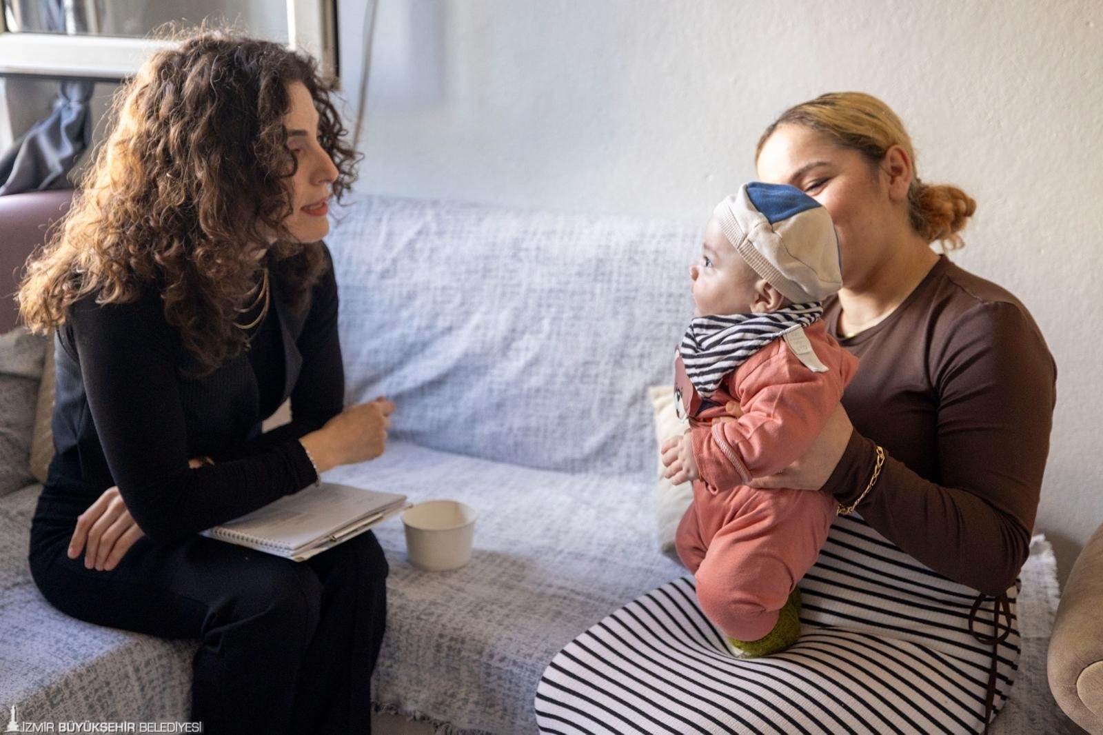 Programın ekibinde yer alan klinik psikolog Berke Özkanoğlu ise “İyi bir başlangıç her çocuğun hakkı düşüncesinden yola çıkarak hem 0-3 yaş arası çocukların sağlıklı gelişimini desteklemek hem de gebelikten başlayarak annelerin ve genel anlamda ebeveynlerin ihtiyaçlarını karşılamak için kentin farklı bölgelerinde hizmetlerimizi sürdürüyoruz” diye konuştu. Doğum öncesi 7, 8 ve 9. aylarda üç defa ve doğumdan sonra iki haftada bir olmak üzere bebek bir yaşına gelene kadar toplamda 27 defa aile ile görüşüldüğünü kaydeden Özkanoğlu, program kapsamında anne ve bebek ilişkisini destekleyici çalışmalar yaptıklarını, kitap ve oyunlarla eğitimler verildiğini, emzirme danışmanlığı ile de ev ziyareti hizmetini desteklediklerini söyledi. Ev ziyaretlerinin Konak, Karabağlar, Buca, Bayraklı, Bornova ve Çiğli olmak üzere altı pilot bölgede aktif olarak sürdüğünü ifade eden Özkanoğlu, “0-12 ay ev ziyareti temelli ebeveyn rehberliği programı bitiminde katılım sertifikaları veriyoruz. Bebeklerin ilk mezuniyet belgeleri, bir yaşına geldiklerinde İzmir Büyükşehir Belediyesi’nden verilmiş oluyor” dedi.