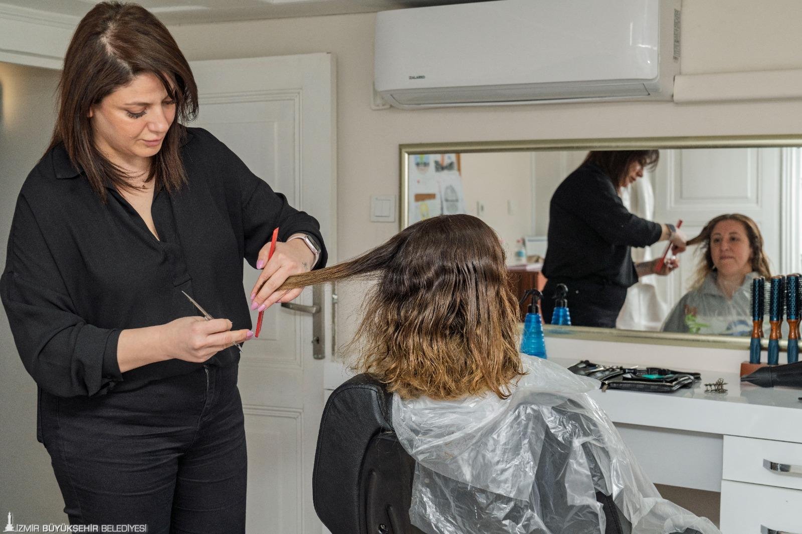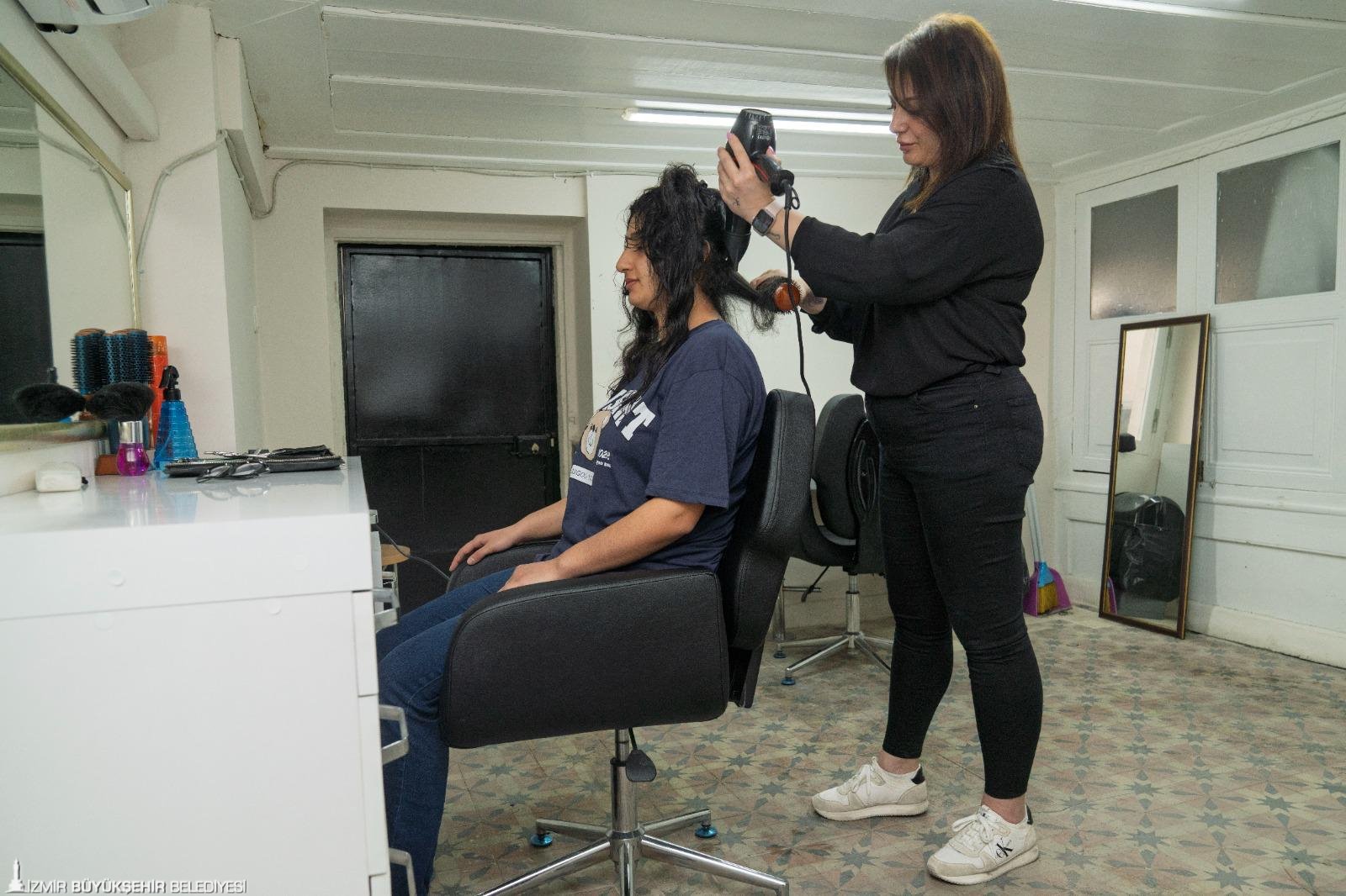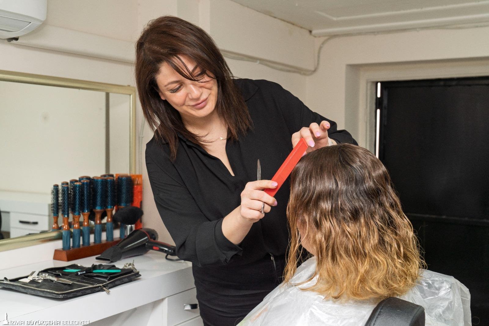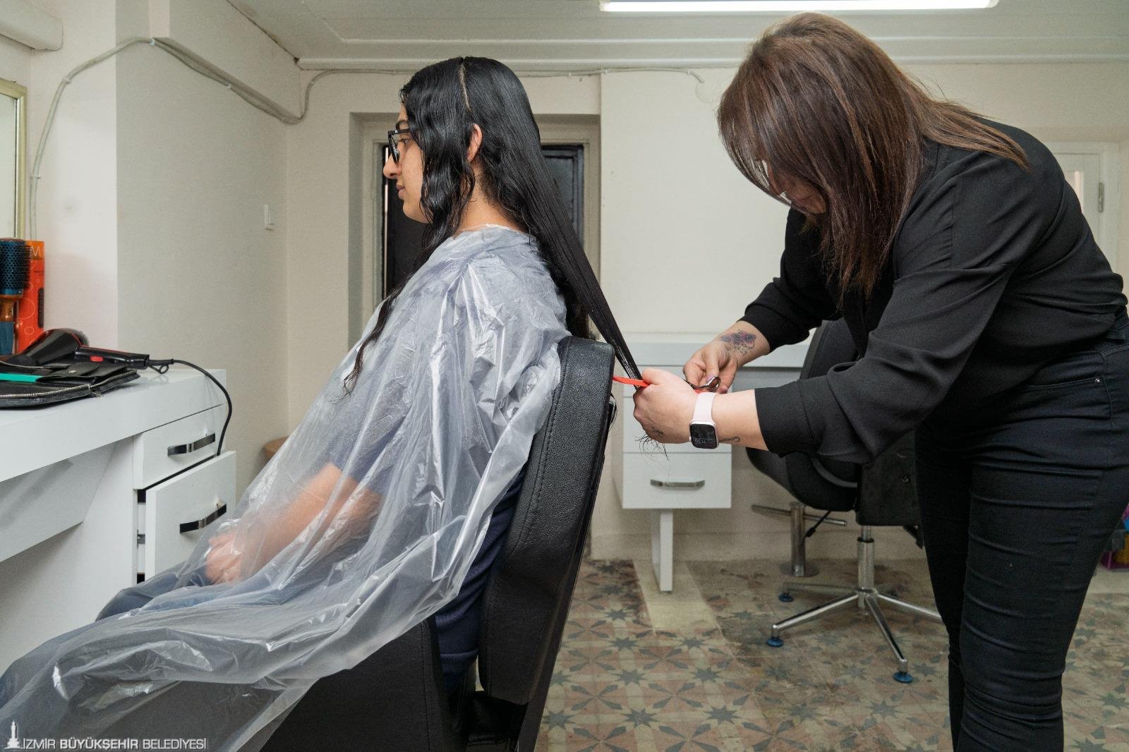 Ekonomik koşulları göz önünde bulundurarak pek çok farklı alanda ücretsiz hizmetlerini artıran İzmir Büyükşehir Belediyesi, Kadın Çalışmaları Şube Müdürlüğü bünyesinde faaliyet gösteren Agora Kadın Dayanışma Merkezi’nde Meslek Fabrikası Şube Müdürlüğü’nün desteğiyle kadın ve çocuklara ücretsiz kuaförlük hizmeti vermeye başladı. Merkezin bir odası kuaför salonu olarak tasarlandı. Şubat ayında başlayan hizmetten, bugüne dek yaklaşık 100 kişi faydalandı. Saç kesimi ve fön çekiminin yapıldığı merkezde şimdi de Ramazan Bayramı öncesi büyük yoğunluk yaşandı.