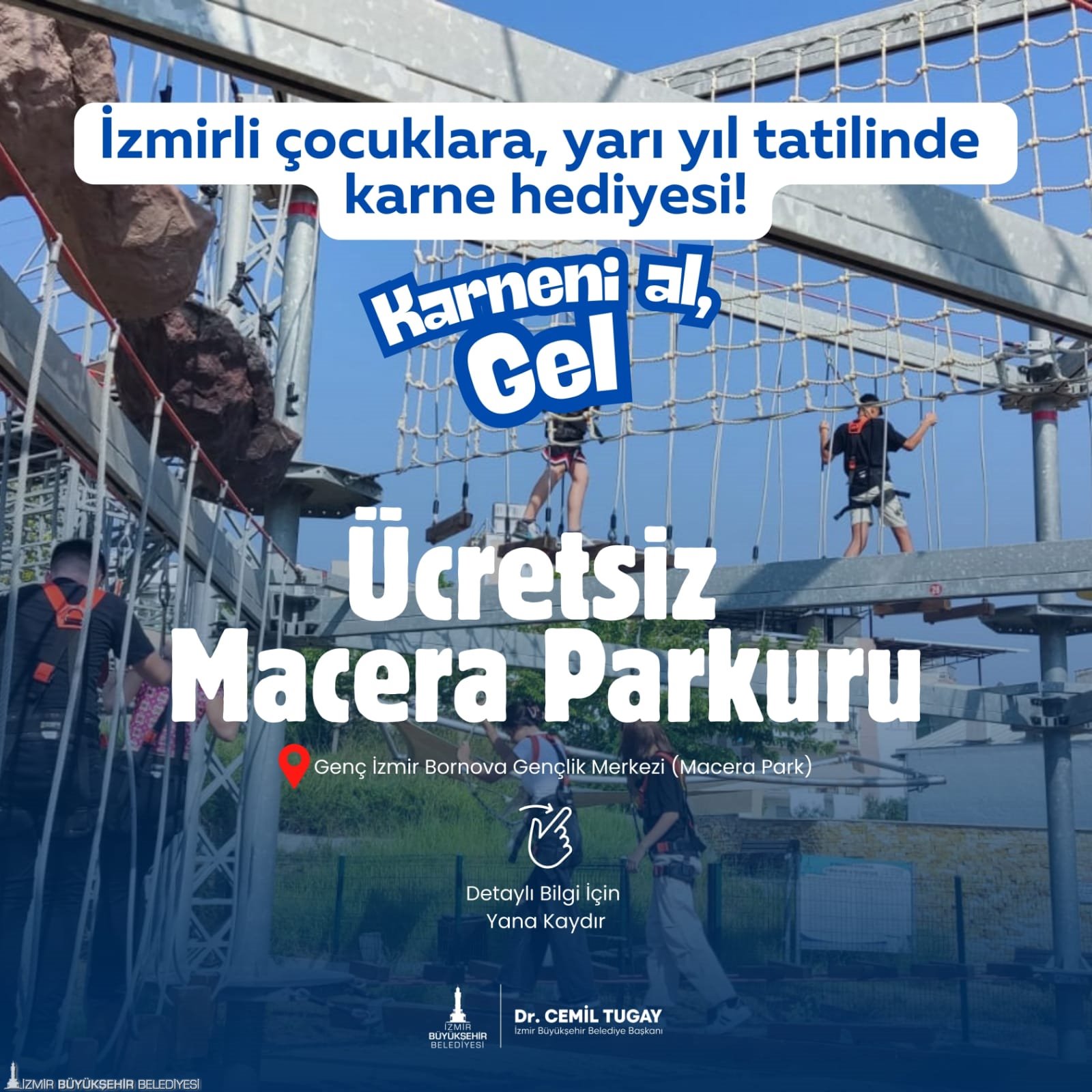 İzmir’de öğrencilerin yarıyıl tatili İzmir Büyükşehir Belediyesi’nin hazırladığı programlarla çok renkli geçiyor. Tiyatrodan, gezilere, atölye çalışmalarından sinema gösterimlerine kadar çocukların dolu dolu bir tatil geçirmesi için hazırlanan etkinlikler arasında spor aktiviteleri de yer alıyor. Havuz İzmir’de ebeveynleri ile yüzmek, Macera Park’ta maceraya doymak, buz pistinde kaymak, Celal Atik Spor Salonu’nda cimnastik yapmak, basketbol ve voleybol oynamak isteyen ilkokul ve ortaokul öğrencileri karnelerini göstererek spor etkinliklerinden ücretsiz yararlanacak. Ayrıca Bornova Aşık Veysel Gençlik Merkezi’nde ücretsiz pasta yapım atölyesi de olacak. 15 kişilik kontenjanla sınırlı atölyeye başvurular gençlik merkezinden yüz yüze alınacak. 31 Ocak tarihine kadar sürecek etkinlikler ile ilgili detaylı bilgi 293 30 94 numaralı telefon alınabilir.
