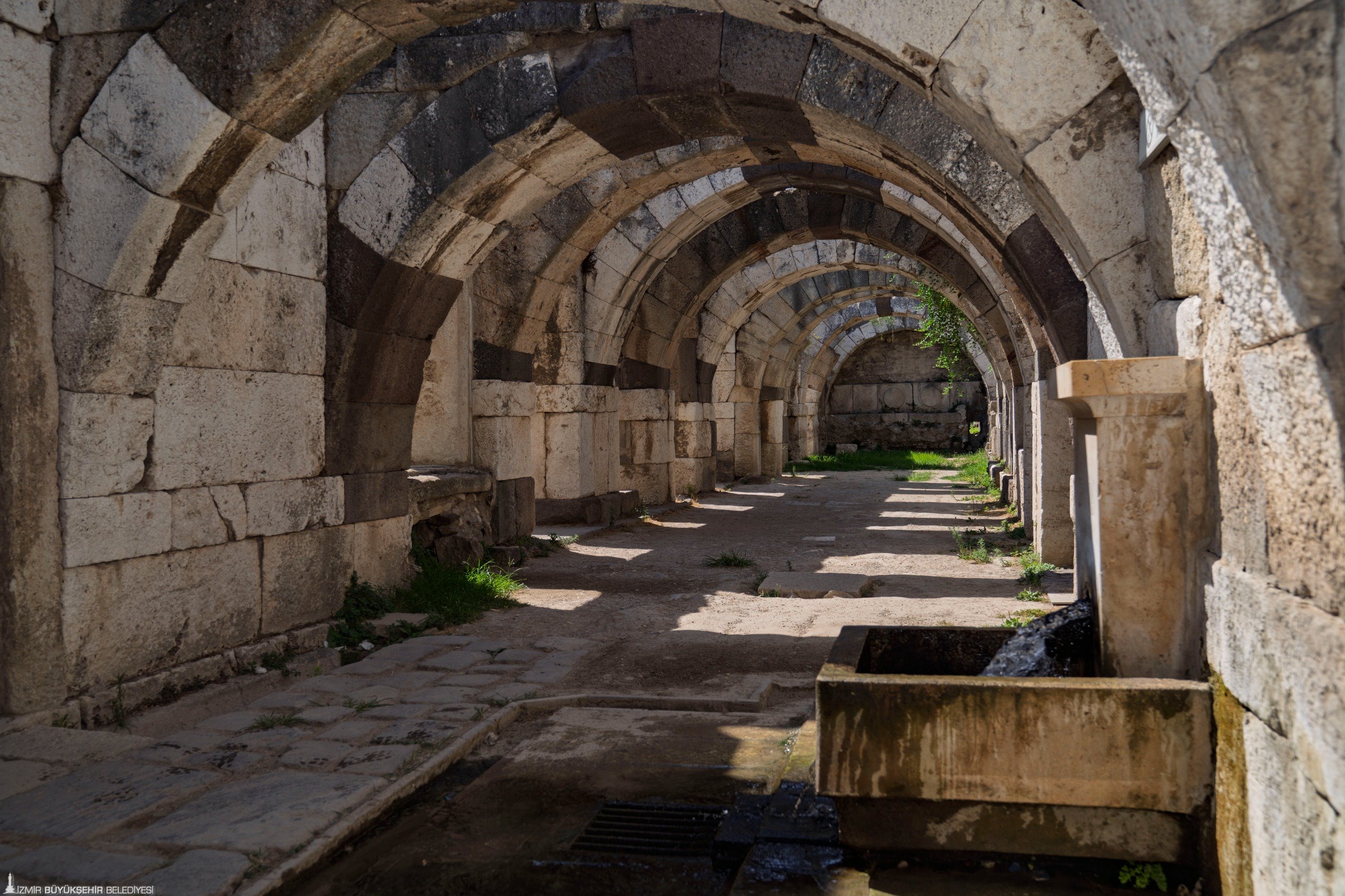 Ersoy, antik dönemde kent planlamacılarının suyun varlığına büyük önem verdiğini, İzmir’in bu açıdan şanslı bir konumda olduğunu ifade etti. Kadifekale’nin altındaki su tabakalarının kent için önemli bir kaynak sağladığını, Antik Smyrna Agorası’ndaki suyun da bu doğal kaynaktan geldiğini vurgulayan Ersoy, yaklaşık 150 metre boyunca akarak Antik Smyrna Agorası’na ulaşan suyun günümüzde içilemez nitelikte olsa da park ve bahçeleri sulamak için kullanılabildiğini aktardı.