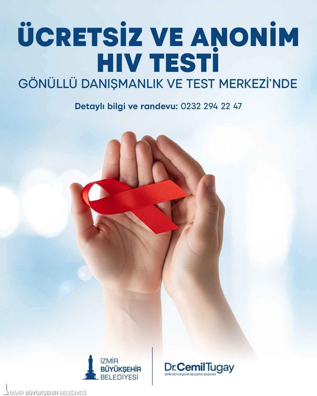 İzmir Büyükşehir Belediyesi Sağlık İşleri Dairesi Başkanlığı, Sağlık Bakanlığı ile iş birliği yaparak önemli bir toplum sağlığı hizmetine başladı. Bu kapsamda gizlilik esasına dayalı olarak açılan Gönüllü Danışmanlık ve Test Merkezi’nde, kimlik bilgisi paylaşılmadan anonim şekilde ücretsiz Human Immmunodeficiency Virus (HIV) testi yapılıyor. Parmak ucundan alınan bir damla kan ile yapılan testin sonucu, yaklaşık 20 dakika içinde kişiye bildiriliyor. Test hizmetinin yanı sıra HIV ve diğer cinsel yolla bulaşan enfeksiyonlar hakkında danışmanlık hizmeti de sunuluyor. Bu sayede hem hastalıklar hakkında bilinçlenme hem de korunma yöntemleri hakkında bilgi edinme imkanı doğuyor. Uzman sağlık personelinin verdiği danışmanlık hizmeti, testi yaptıran kişilerin sorularını yanıtlayarak erken teşhis ve tedavi sürecine destek oluyor. Hizmet, İzmir Büyükşehir Belediyesi Sağlık İşleri Dairesi Başkanlığı ile Sağlık Bakanlığı Halk Sağlığı Genel Müdürlüğü arasında imzalanan iş birliği protokolü kapsamında yürütülüyor. Gönüllü Danışmanlık ve Test Merkezi ile ilgili detaylı bilgi ve randevu almak için 0232 294 22 47 numaralı telefon aranabiliyor.