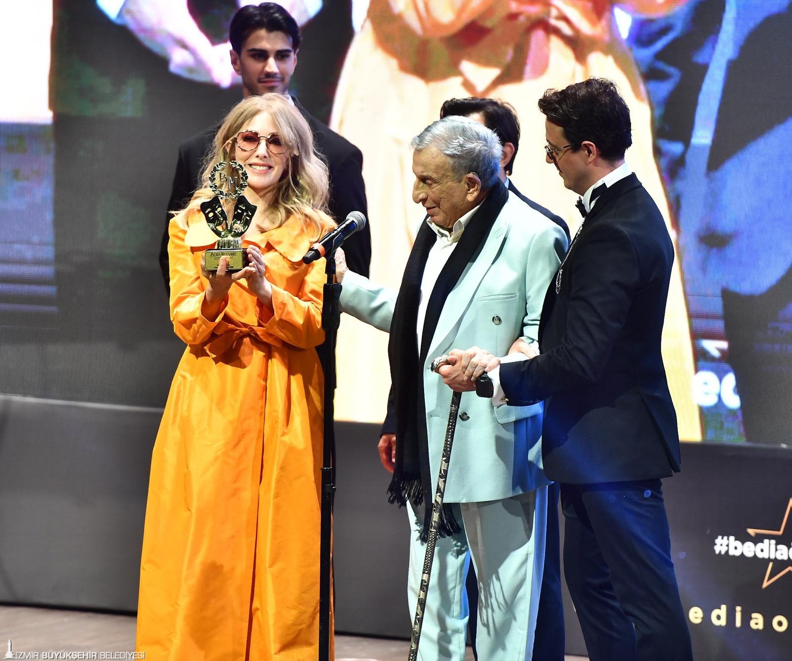 Türk tiyatrosunun öncü isimlerinden Bedia Muvahhit’in anısını yaşatmak amacıyla düzenlenen 13. Bedia Muvahhit Tiyatro Ödülleri, sanat dünyasını İzmir’de buluşturdu. İzmir Büyükşehir Belediyesi Genel Sekreter Yardımcısı Prof. Dr. Pınar Okyay ve Meclis Başkan Vekili Dr. Zafer Levent Yıldır’ın da katıldığı törende, İzmir Büyükşehir Belediyesi Şehir Tiyatroları (İzBBŞT) sanatçısı Bahadır Buyruk ve İzmir Büyükşehir Belediyesi Ürkmez Kadın Tiyatrosu ödül aldı.