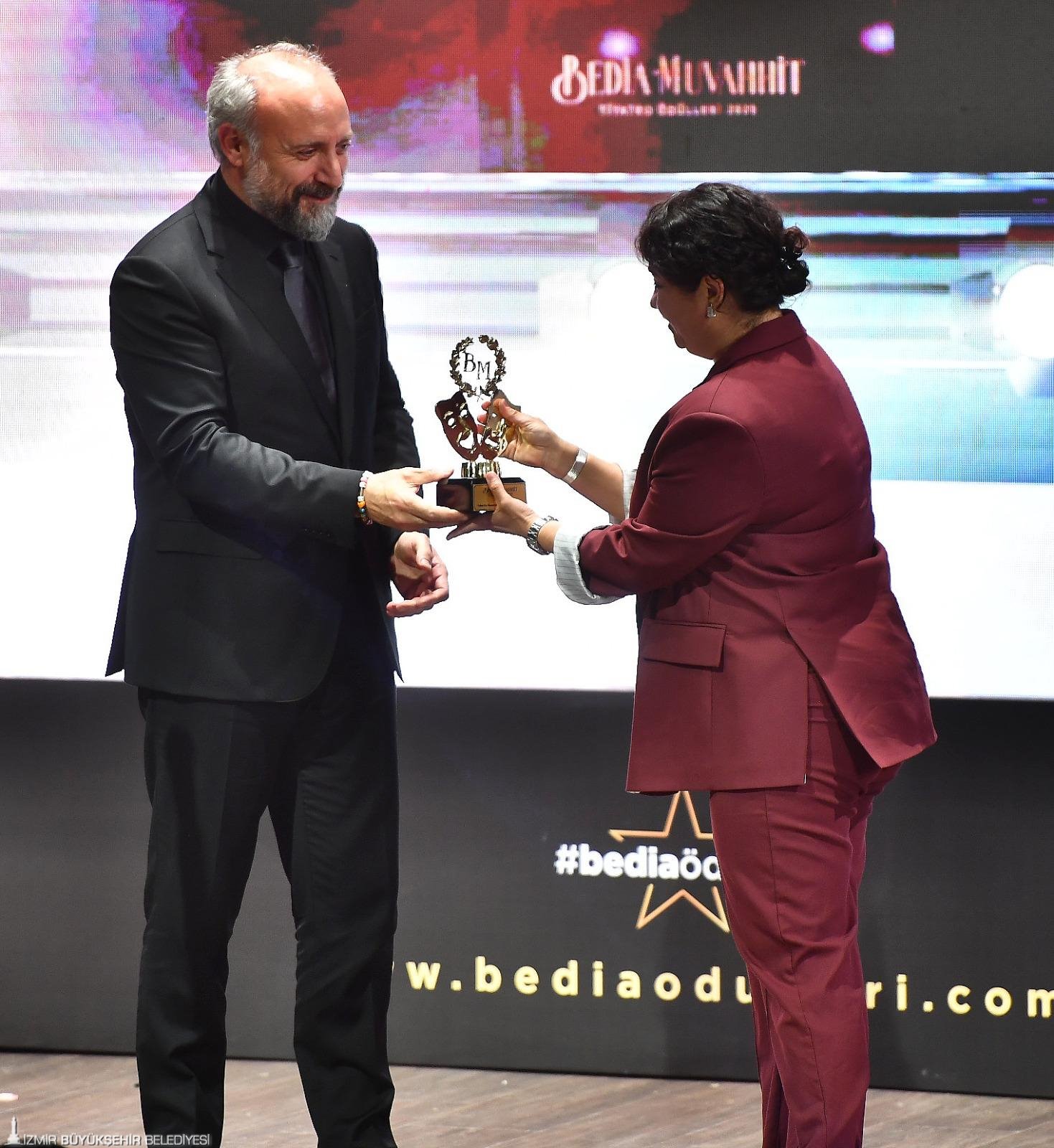 Sahne Tozu Tiyatrosu’nun ev sahipliğinde, Haldun Dormen Sahnesi’nde gerçekleşen 13. Bedia Muvahhit Tiyatro Ödülleri, Türkiye’nin dört bir yanından gelen tiyatro sanatçılarını ve sanatseverleri bir araya getirdi. Ödül törenine katılan konuklar arasında törenin sanat danışmanı Haldun Dormen, onursal jüri başkanı Göksel Kortay, Zerrin Tekindor, Halit Ergenç, Meltem Cumbul, İzzet Günay, Salih Güney de yer aldı. İzmir Büyükşehir Belediyesi Genel Sekreter Yardımcısı Prof. Dr. Pınar Okyay ve Meclis Başkan Vekili Dr. Zafer Levent Yıldır’ın da katıldığı bu özel gecede, İzmir Büyükşehir Belediyesi Şehir Tiyatroları (İzBBŞT) sanatçısı Bahadır Buyruk “Yardımcı Rolde Yılın En Başarılı Erkek Oyuncusu”, İzmir Büyükşehir Belediyesi Köy Tiyatroları ekiplerinden Ürkmez Kadın Tiyatrosu da “Jüri Özel Ödülü” aldı.