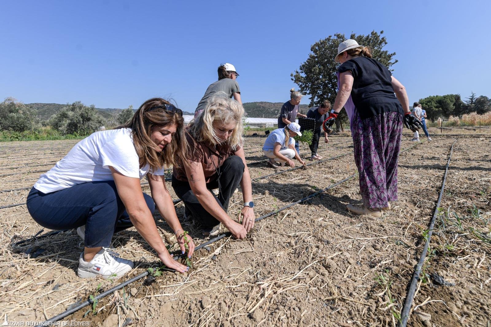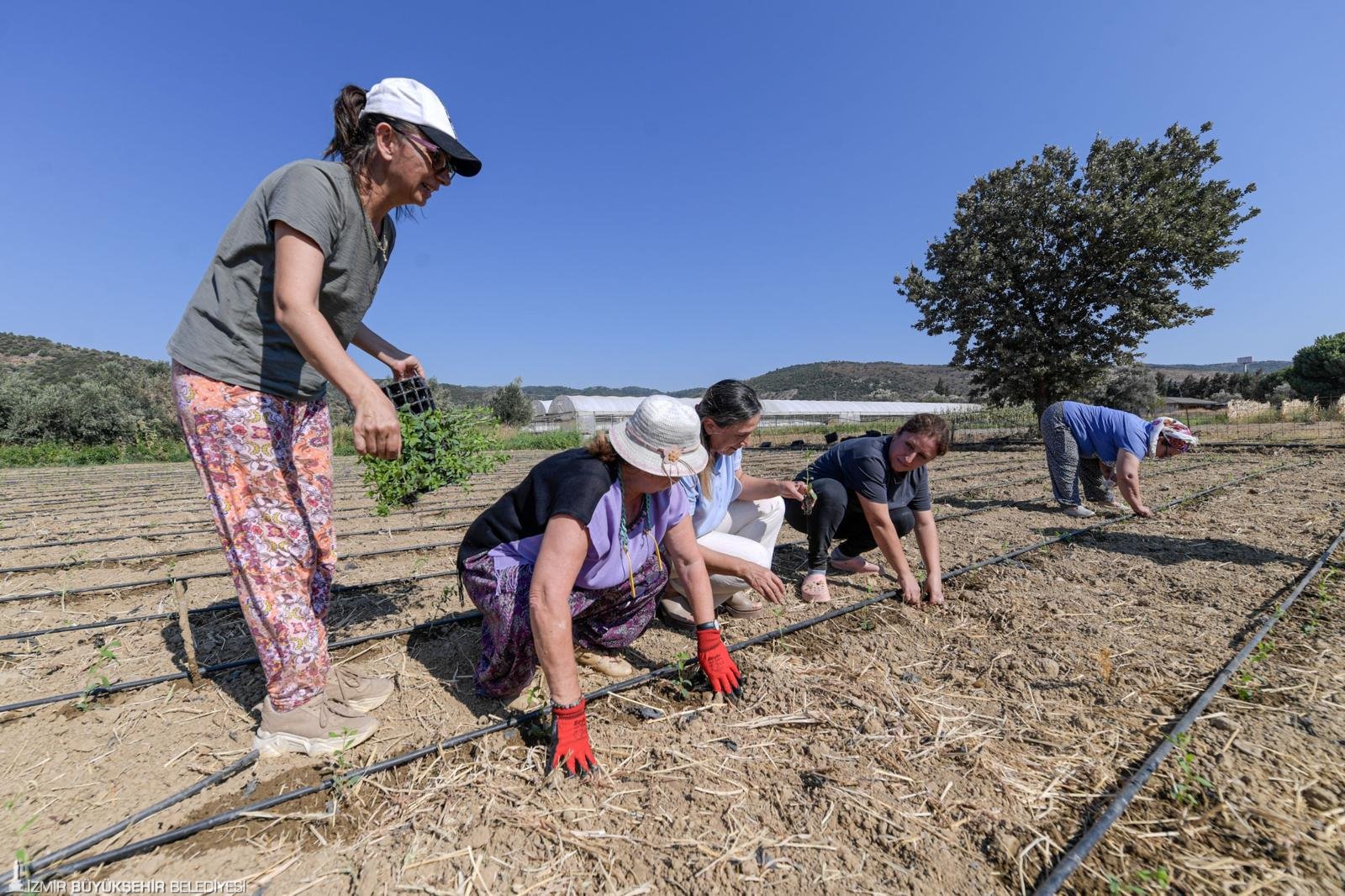 İzmir Büyükşehir Belediyesi, kuraklık ve üretim maliyetlerinin giderek artması nedeniyle zor bir dönemden geçen çiftçiye yeni gelir kapısı yaratmak için gelir getirici alternatif bitkileri toprakla buluşturmaya devam ediyor. İzmir Büyükşehir Belediyesi Tarımsal Hizmetler Dairesi Başkanlığı tarafından yürütülen proje kapsamında, Güzelbahçe Çamlı Üretim ve Pazarlama Kooperatifi ile geçen yıl başlatılan stevia bitkisi (şeker otu) çalışması, fidelerin toprak ile buluşması ile devam etti. Proje kapsamında 52 ortaklı Çamlı Üretim ve Pazarlama Kooperatifi’ne 15 bin adet stevia desteği verildi. Fideler, Çamlı’da düzenlenen etkinlikle toprakla buluşturuldu. Etkinliğe İzmir Büyükşehir Belediyesi Tarımsal Hizmetler Dairesi Başkanı Bülent Üngür, Güzelbahçe Belediye Başkanı Mustafa Günay’ın eşi Nermin Günay, S.S. Güzelbahçe Çamlı Üretim ve Pazarlama Kooperatifi Başkanı Gurbet Gündüz Gün ve çok sayıda üretici katıldı.