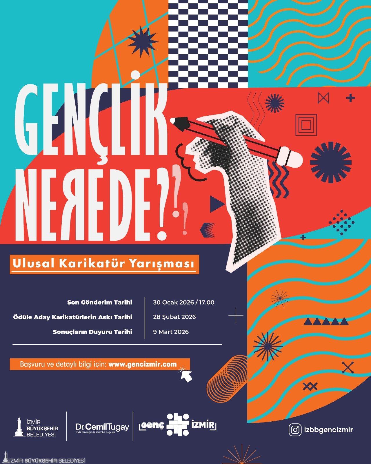 İzmir Büyükşehir Belediye Başkanı Dr. Cemil Tugay’ın “genç dostu kent” vizyonu doğrultusunda çalışmalarını sürdüren Kadın ve Aile Hizmetleri Dairesi Başkanlığı’na bağlı Gençlik Çalışmaları Şube Müdürlüğü, sanatçı ruhu taşıyan her yaştan çizerin gençlerin sesi olabilmek amacıyla kendilerini ifade edebilecekleri yeni bir yarışma düzenliyor. Genç İzmir çatısı altında düzenlenen Ulusal Karikatür Yarışması için başvurular başladı.