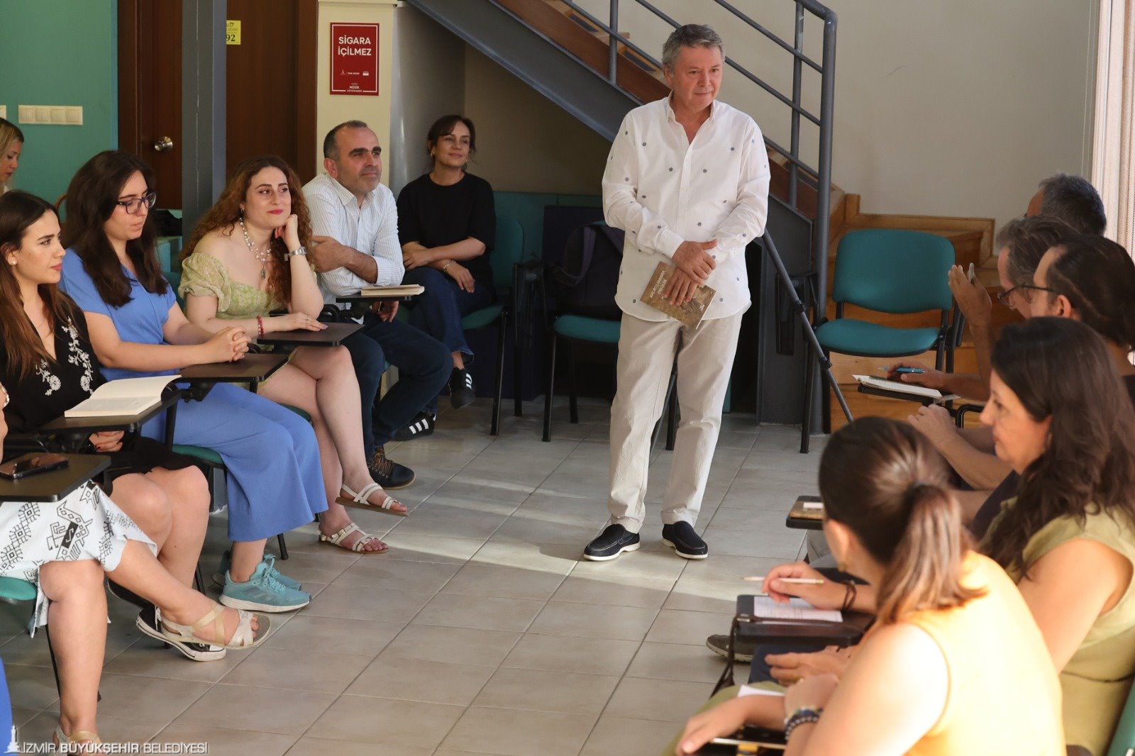 İzmir Büyükşehir Belediyesi’nin edebiyata ve yazmaya ilgi duyan yurttaşlar için açtığı “Gündüz Öğüt ile Anlatılmayan Öyküler Yazım Atölyesi” ilk dönemini geride bıraktı. Yazar adayları dört aylık eğitim süreci sonunda “Anlatılmayan Öyküler” adında bir kitap da yayımlandı. Ahmed Adnan Saygun Sanat Merkezi (AASSM) Müzik Kütüphanesi’nde İzmir Devlet Senfoni Orkestrası keman sanatçısı ve yazar Gündüz Öğüt’ün eğitmenliğinde hayalden gerçeğe eğlenceli bir yazarlık yolculuğu yaşandı. İlk dönem 14 katılımcıyla yapılan atölyede zaman zaman Öğüt’ün keman dinletileri de gerçekleşti. Her insanı özel ve anlatılmayı bekleyen öyküleri olan birisi şeklinde kabul eden atölyede yaratıcı yazarlık teknikleri, kısa öykü yazma pratikleri, Türk ve dünya edebiyatından öykü okumaları, dil kurgu ve kurmaca, olay örgüsü, karakter yaratmak, zaman ve mekan tasarımı konuları işlendi.