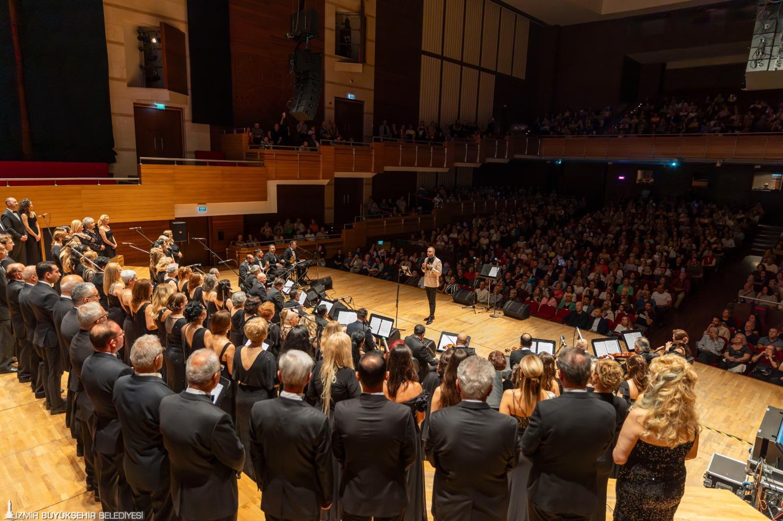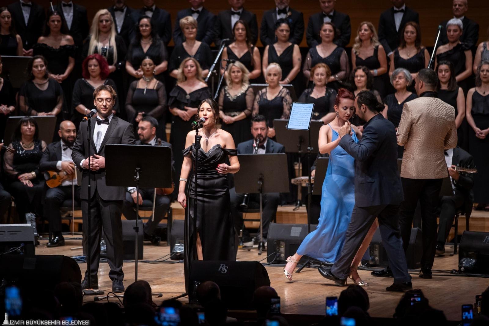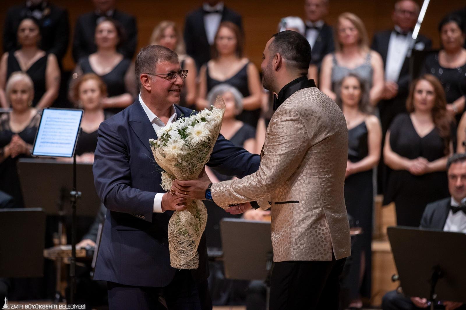 İzmir Büyükşehir Belediyesi Klasik Türk Müziği Korosu, “Yaza Merhaba” temalı konser düzenledi. Ahmed Adnan Saygun Sanat Merkezi’nde sanatseverlerin tüm salonu doldurduğu geceye İzmir Büyükşehir Belediye Başkanı Dr. Cemil Tugay ile eşi Öznur Tugay, İzmir Büyükşehir Belediyesi bürokratları, meclis üyeleri ve sanatçılar da katıldı. Şef Hüseyin Tolu yönetimindeki 90 kişilik dev koro, Türk müziğinin seçkin eserlerini seslendirdi. Başkan Tugay ile Öznur Tugay, konser boyunca seyircilerle birlikte şarkılara alkışlarla eşlik etti. Şef Tolu, Karşıyaka Belediye Başkanlığı döneminde Dr. Cemil Tugay’a nazar boncuğu hediye ettiğini hatırlatarak, şans getirmesi için sahnede yeniden kendisine nazar boncuğu hediye etti. Başkan Tugay ise şef Tolu’ya çiçek takdim etti.