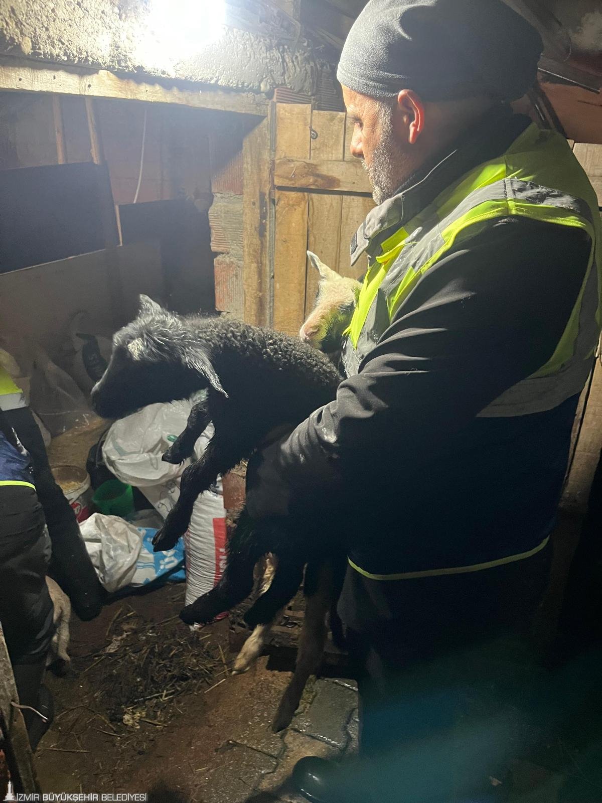 İzmir Büyükşehir Belediyesi İtfaiye Dairesi Başkanlığı ekipleri, Torbalı’nın Göllüce Mahallesi’nde sağanak yağış nedeniyle su basan bir ahırda mahsur kalan koyun ve tavukları kurtarmak için seferber oldu. Ekipler, dikkatli ve özverili bir şekilde hayvanları tahliye ederken, hayvanların yem ve su ihtiyaçlarını da karşıladı. Bir itfaiye erinin koyunları elleriyle beslemesi, bu zorlu koşullarda bile insan ve hayvan arasında güçlü bir bağın varlığını gösterdi. Aynı zamanda, bölgedeki suyun tahliyesi için su çekme çalışmaları da aralıksız sürdürüldü.