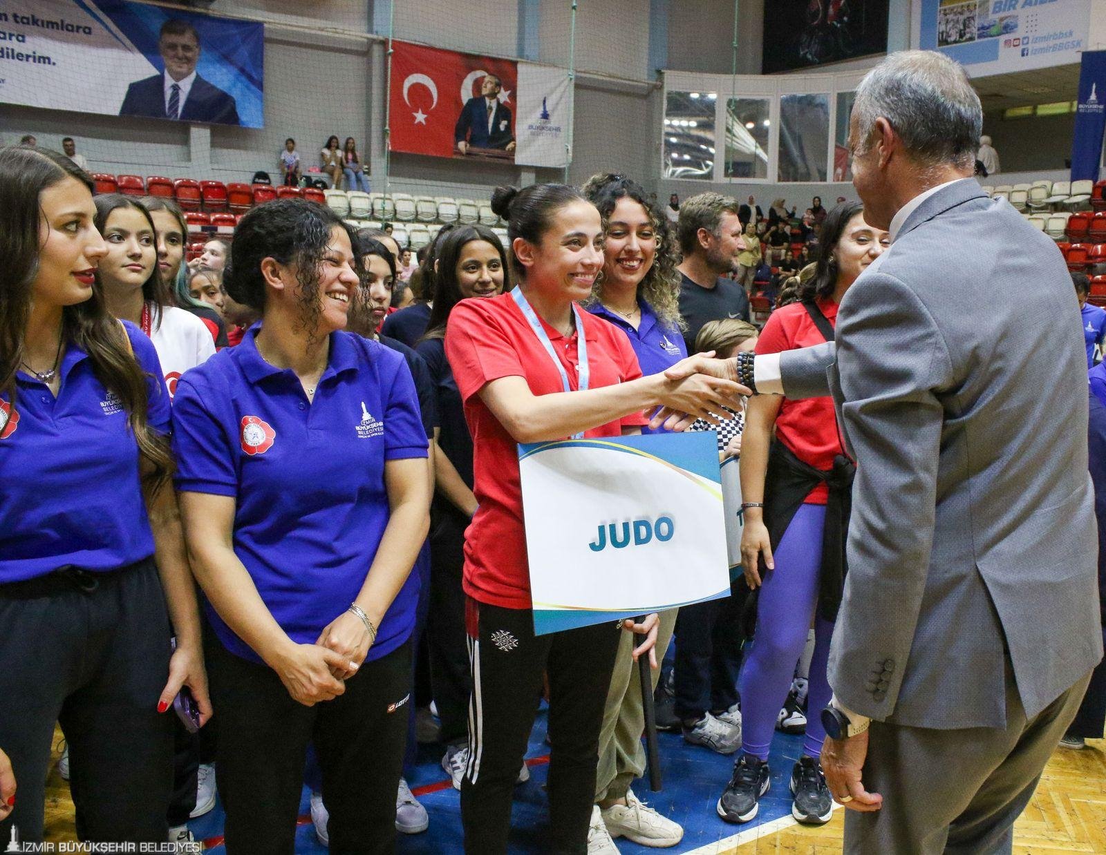 Celal Atik Spor Salonu’nda düzenlenen tören öncesi sahne alan jimnastik ve güreş genç takımlarının performansı tribünlerden tam not aldı. İzmir Büyükşehir Belediyesi Spor Kulübü’nün down sendromlu milli sporcusu Selin Durgut’un tek kişilik gösterisi ise büyük alkış topladı. Müsabakaları heyecanla takip eden İzmir Büyükşehir Belediyesi Spor Okulları’nın minik kursiyerleri milli sporcuları tribünden hayranlıkla izledi.