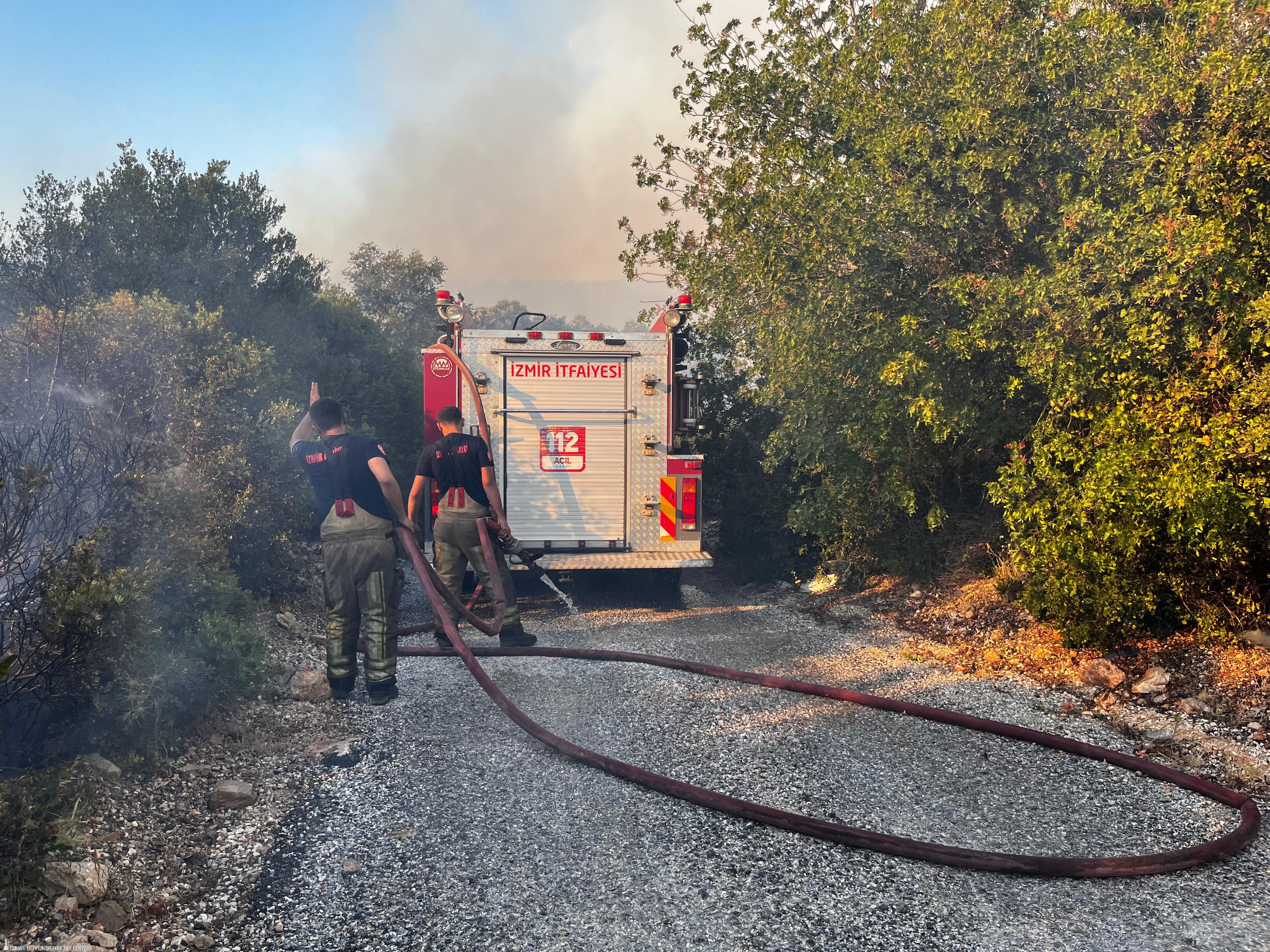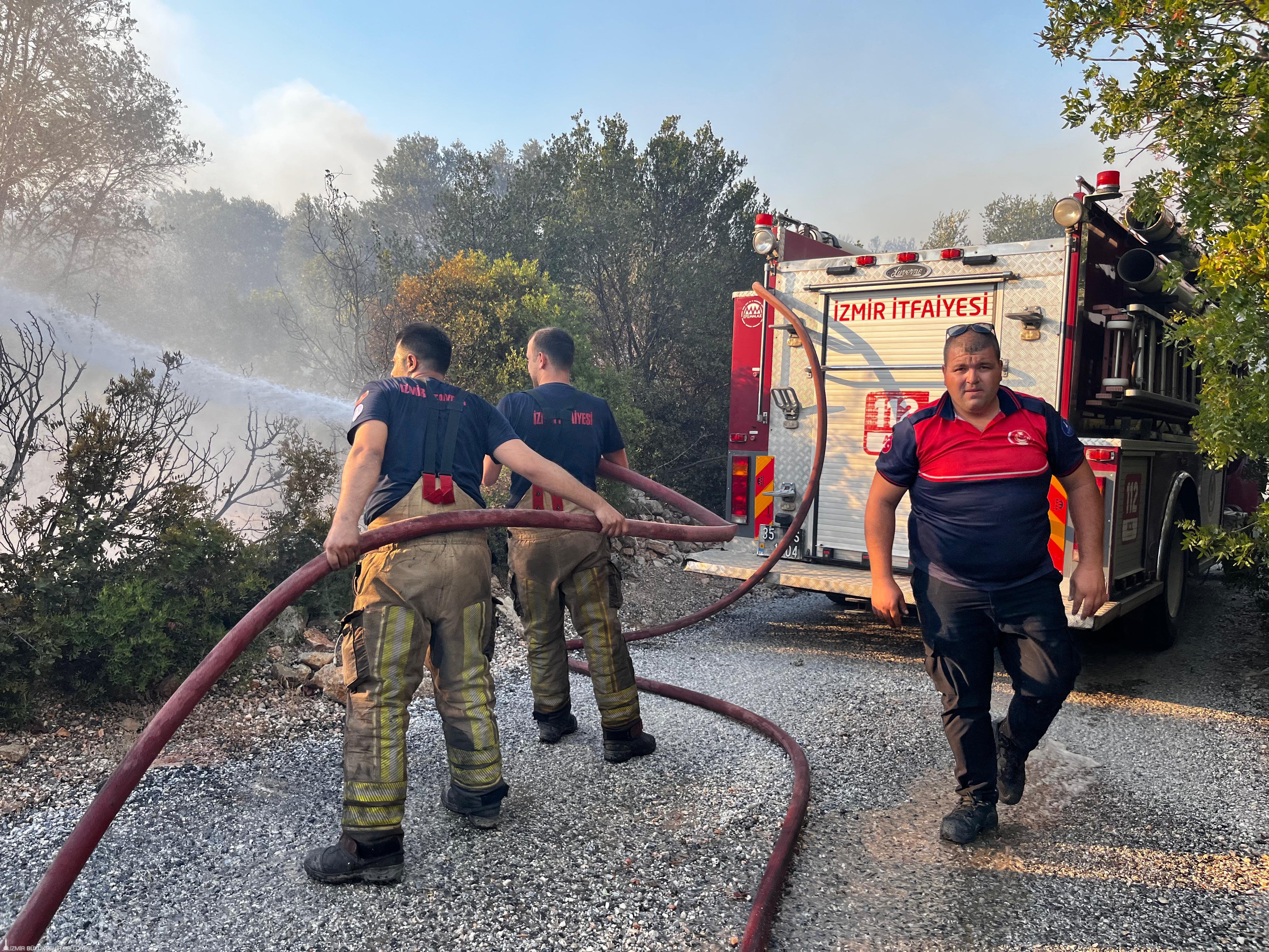 Orman Bölge Müdürlüğü, itfaiye ekipleri, Çeşme Belediyesi birimleri, İlçe Jandarma Komutanlığı ile İzmir AKUT ve komşu ilçe belediyelerine bağlı ekipler yangını söndürmek için yoğun mücadele veriyor.
