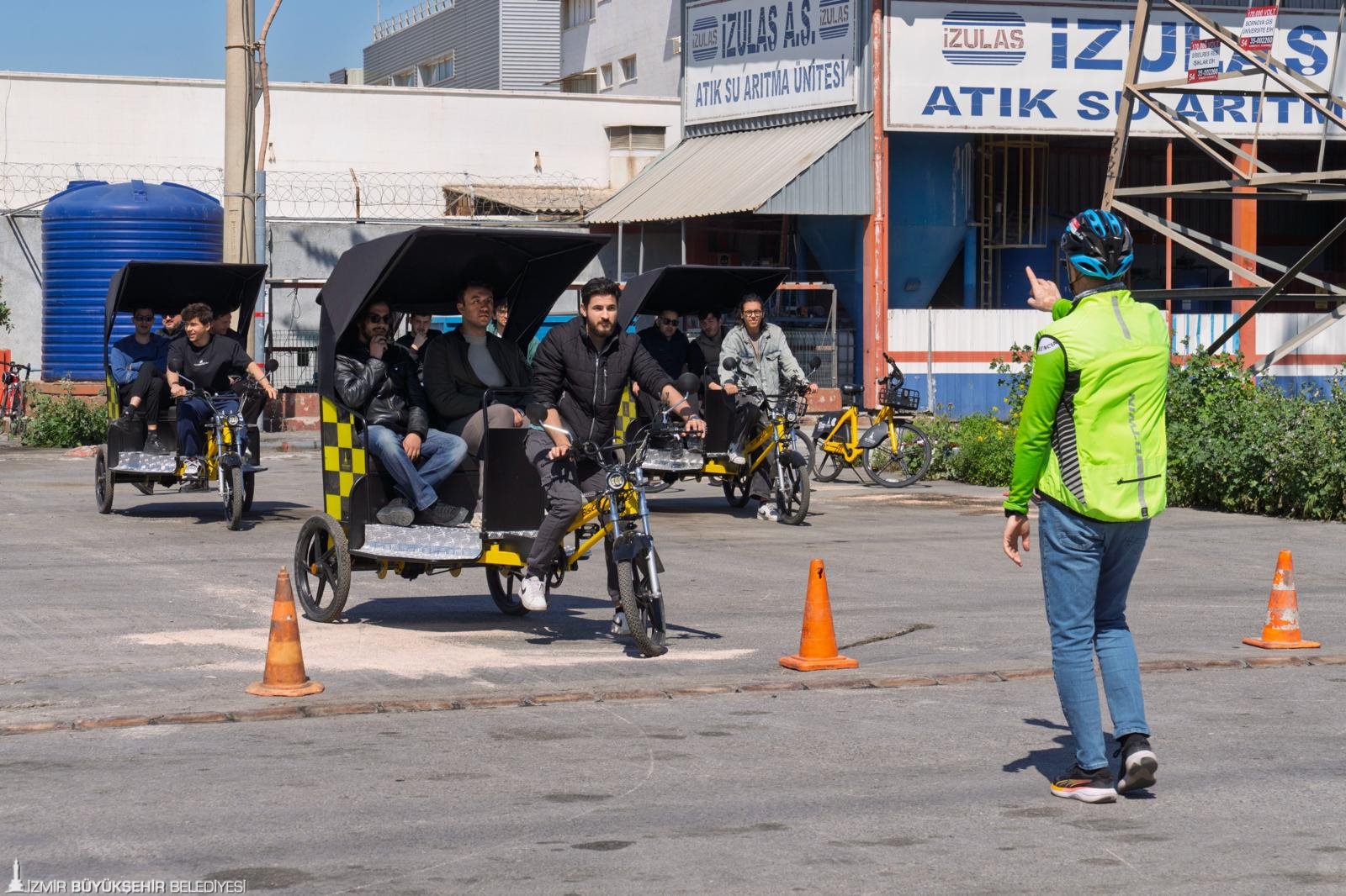 İzmir Büyükşehir Belediyesi, kent içi ulaşımda çevreci dönüşümü destekleyen ve gençlere nitelikli iş imkânı sunan “Bisicab” projesini hayata geçiriyor. Elektrik destekli üç tekerlekli bisikletlerden oluşan sistemi devreye almaya hazırlanan Büyükşehir, karbon salımını azaltmayı hedeflerken üniversite öğrencilerine eğitimli ve donanımlı bir çalışma alanı da oluşturuyor. Gelecek günlerde yola çıkması planlanan Bisicab araçlarını kullanacak üniversite öğrencilerine yönelik eğitimler de başladı. Bisicab ile sürüş eğitimi alan gençler, İzmir’de ilk kez hayata geçirilecek böyle bir çalışmanın içerisinde yer almaktan dolayı heyecanlı olduklarını söyledi.