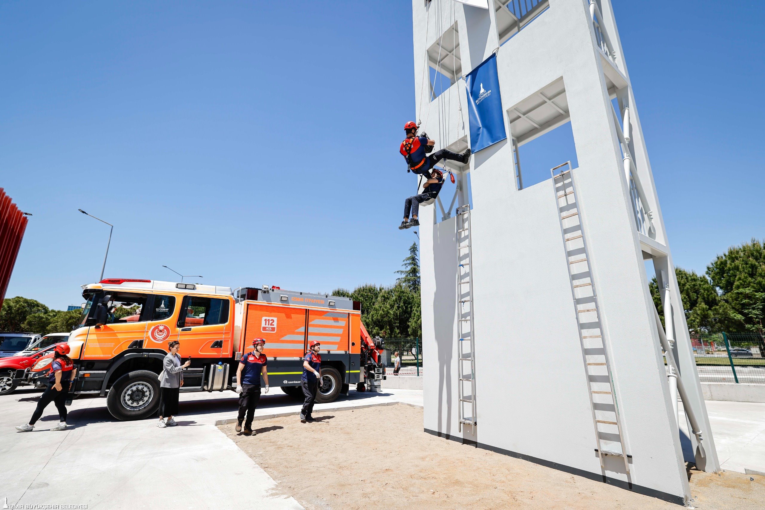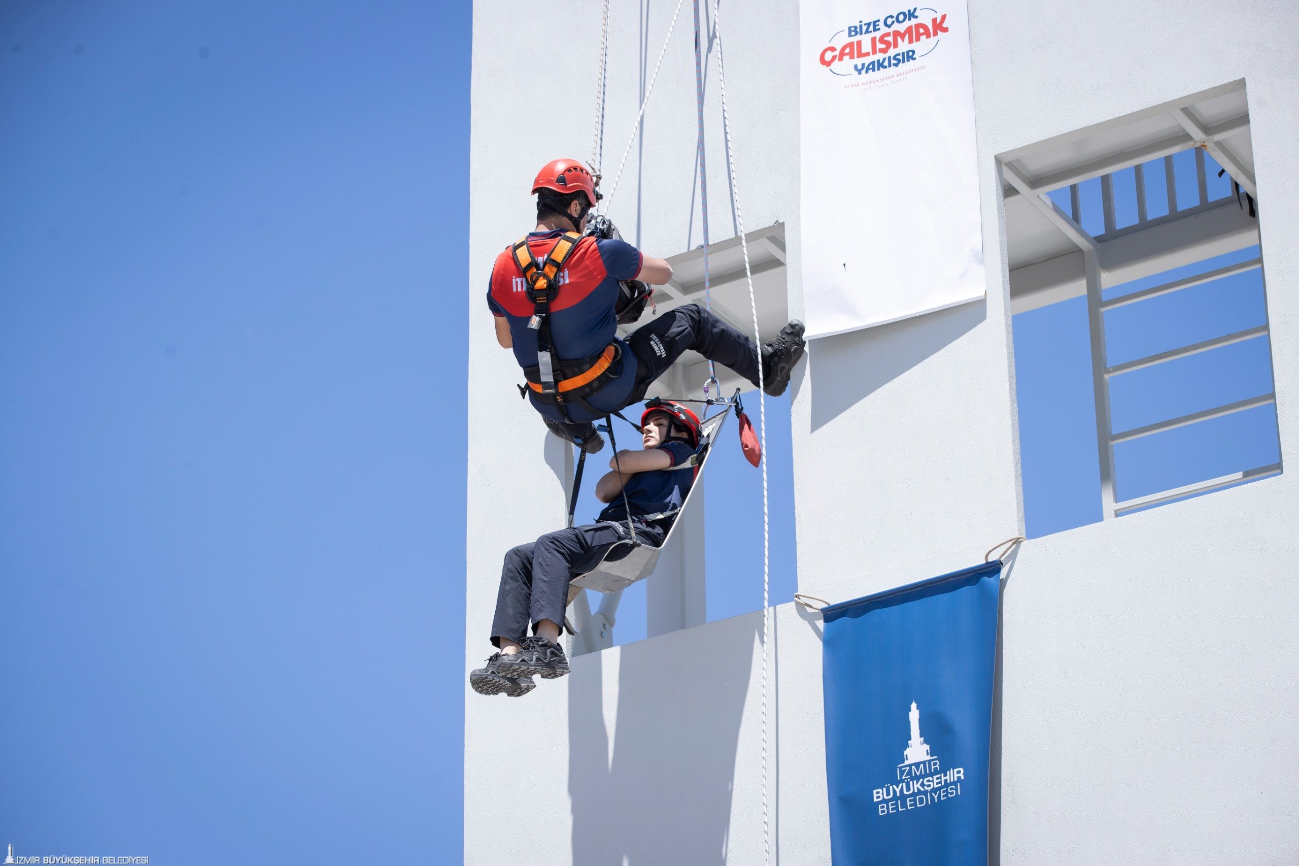 Programın ardından kurtarma tatbikatı yapıldı. Başkan Tugay, itfaiyenin çalışmalarını anlatan sergiyi de gezdi.