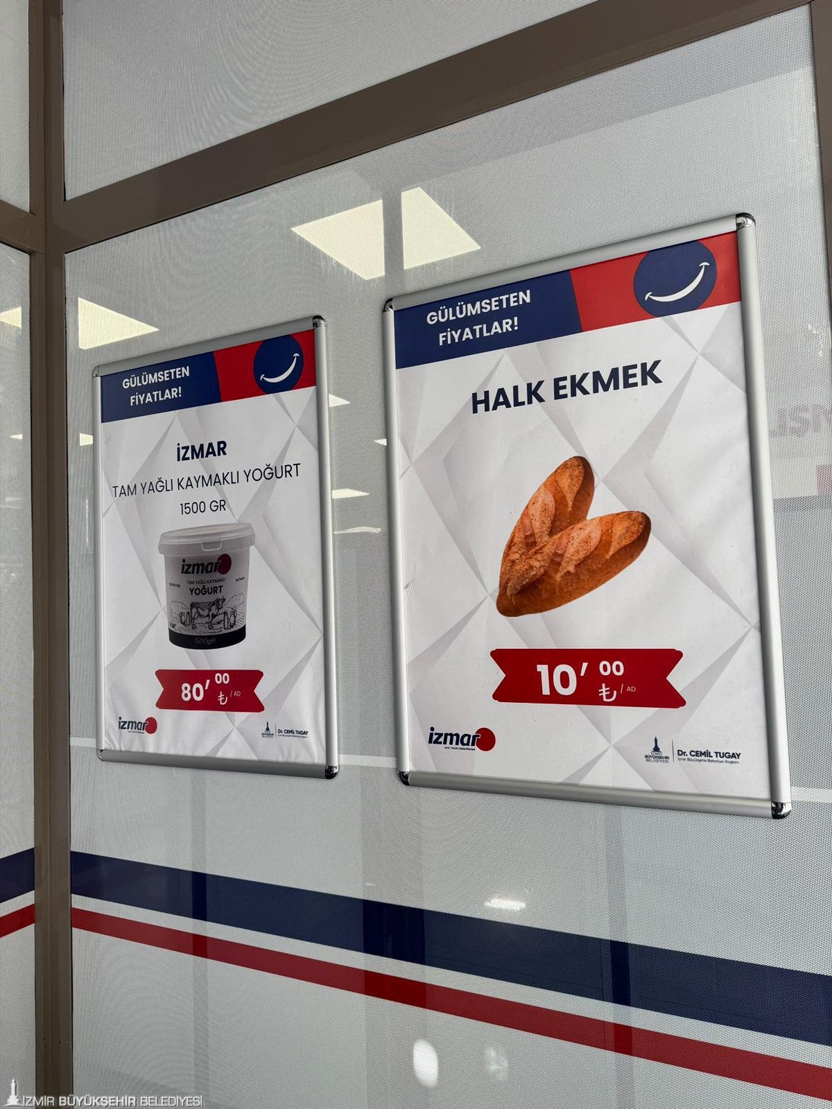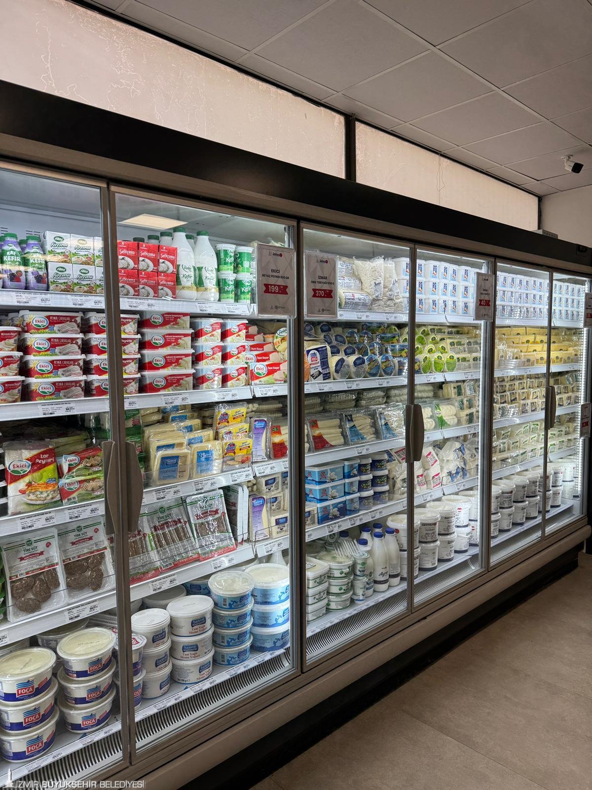 İZMAR’ın yeni mağazasında İZTARIM’ın Bayındır Süt Fabrikası’nda üretilen İZMAR markalı tam yağlı taze beyaz peynir, ilk kez satışa çıktı. Piyasada yarım kilosu 300 liraya kadar çıkan beyaz peynir, 120 liradan vatandaşların beğenisine sunuldu. Tamamen yerli üreticiden alınan sütlerle hazırlanan İZMAR markalı taze kaşar peyniri, tereyağı, yoğurt, UHT süt, ayran ile Ödemiş Et Entegre Tesisi’nde işlenen et ve et ürünleri, Şaşal Su ve Halk Ekmek ürünleri İZMAR raflarında yerini aldı.