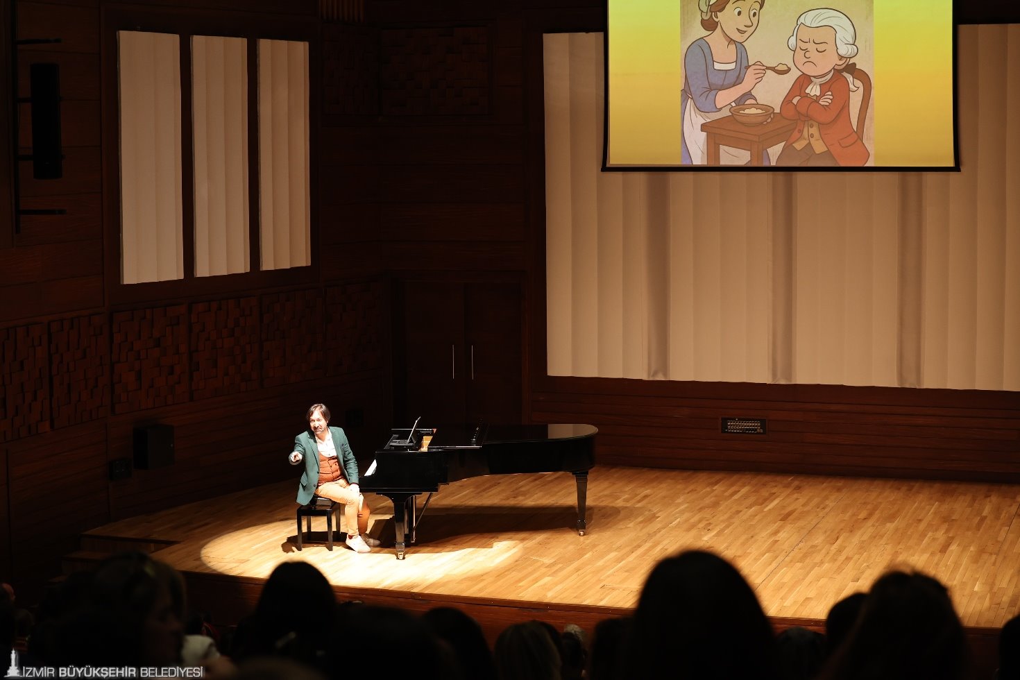 İzmir Büyükşehir Belediyesi, ünlü besteci Wolfgang Amadeus Mozart'ın eserlerini çocuklarla buluşturdu. Ahmed Adnan Saygun Sanat Merkezi (AASSM) Küçük Salon’da çocuklar için iki seans olarak düzenlenen “Sadece Mozart” isimli anlatımlı konserin anlatımını ve solistliğini ünlü orkestra şefi İbrahim Yazıcı üstlendi. Yazıcı, Mozart’ın eserlerini çalarken büyük bestecinin hayatını ve müziğini eğlenceli bir şekilde anlattı. Bazen bir davul, bazen de bir zil olan çocuklar, bu güzel enstrümanlarla oluşturulan büyük orkestra eşliğinde Mozart’ın büyülü dünyasına adım attı.
