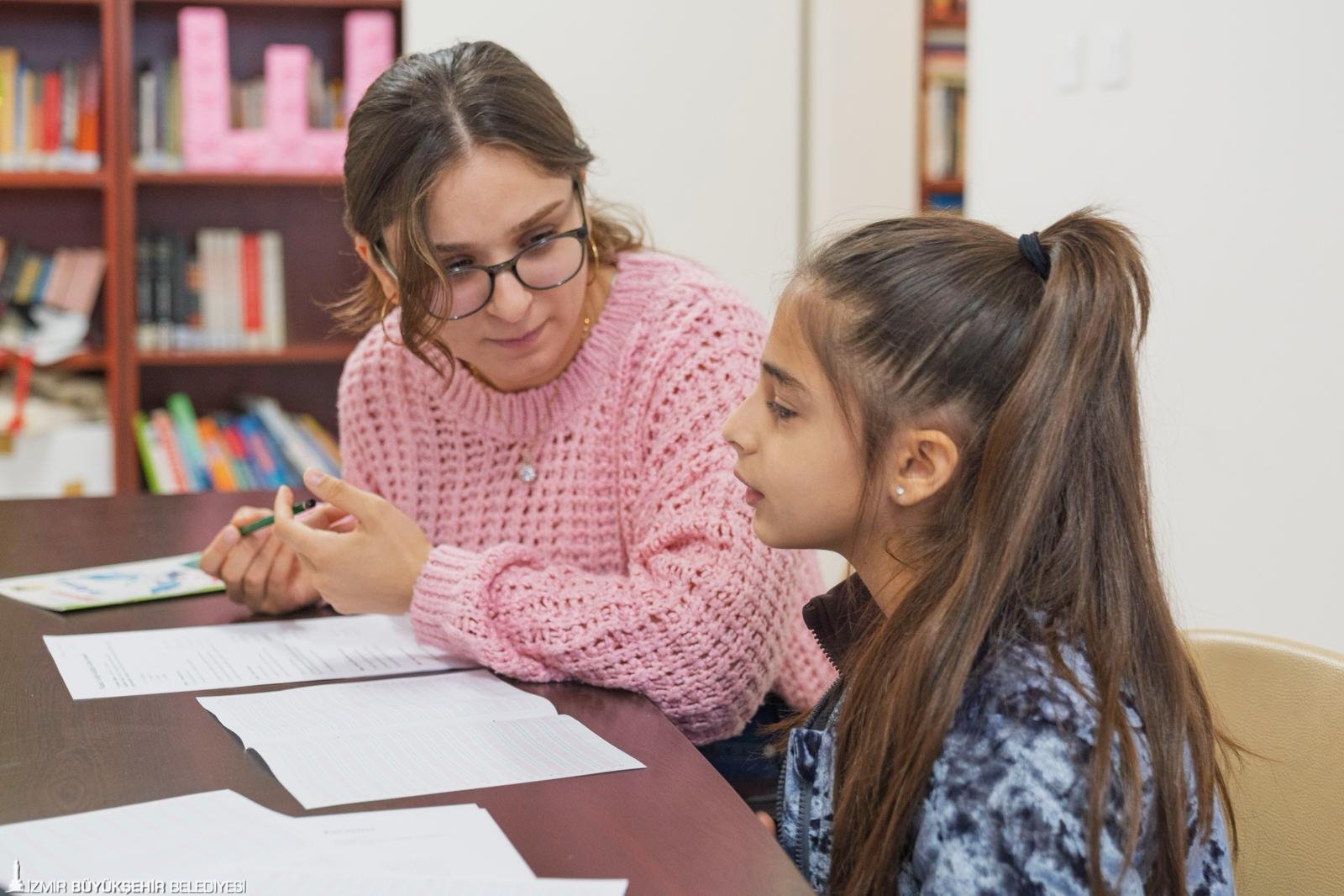 İzmir Büyükşehir Belediyesi Kültür, Sanat ve Sosyal İşler Dairesi Başkanlığı Kütüphaneler Şube Müdürlüğü, Renkli Harfler Projesi’ni tüm hızıyla sürdürüyor. İzmir’de okuma yazma güçlüğü yaşayan çocukların becerilerini geliştirmek, sınıf öğretmenliği bölümünde okuyan öğrencilere de mesleki deneyim kazandırmak amacıyla başlatılan proje, akademisyenler ve sivil toplum kuruluşlarıyla güçlü bir iş birliği sonucunda ortaya çıktı. Okuma yazma atölyeleri, sosyal etkinlikler ve ebeveyn destek atölyeleri ile devam eden proje kapsamında Gümüş Patenler kitabından yola çıkılarak hikâye anlatımı ve drama temelli çalışmalar gerçekleştirildi. Kitap içeriği üzerinden ilerleyen atölye ile çocukların hikâyedeki kavramlar, karakterler ve değerler üzerine düşünmeleri, okudukları ya da dinledikleri metni bedensel ve duygusal farkındalık yoluyla deneyimlemeleri hedeflendi. “Don–Buz” oyunu ve çeşitli bedensel farkındalık uygulamalarıyla da çocukların hikâyeyle etkileşimi desteklendi.