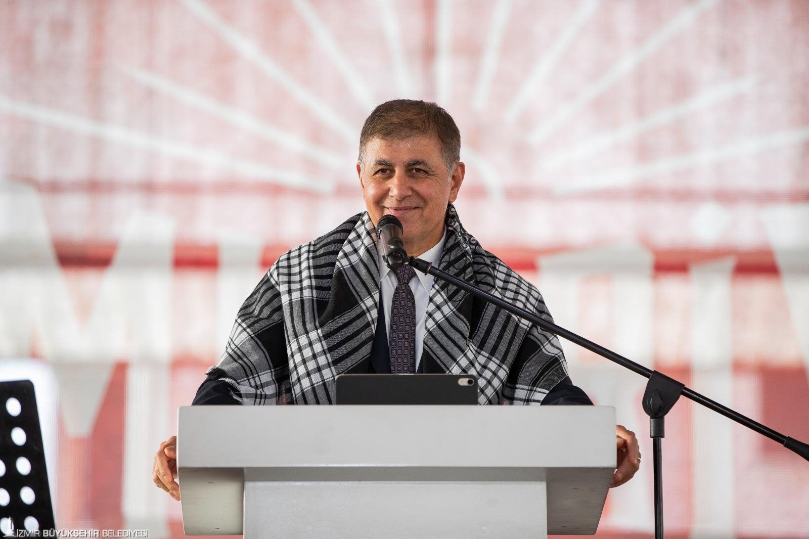 İzmir Büyükşehir Belediye Başkanı Dr. Cemil Tugay, "Bugün burada olmanın mutluluğunu ve gururunu yaşıyoruz. 29 Ekim'de aynı anda her yerde olalım istiyoruz ama imkansız. O yüzden 29 Ekim'i, bir hafta gibi kutluyoruz. Cumhuriyet gerçekten her yerde. Bizler Cumhuriyet'in kurulmasından sonraki yıllarda doğmuş insanlarız. Bizden önceki nesiller bambaşka bir ülkeye doğdular. Cumhuriyet'in olmadığı, demokrasinin olmadığı, vatandaşlık diye bir kavramın olmadığı bir ortama doğdular. Doğdukları zaman hakları yoktu. Öylesine sahipsizdiler. Ne ülkelerinin güvencesi altındaydılar ne de ülkelerinde söz sahibi olabiliyorlardı. Demokrasinin olmadığı, insanların vatandaş olmadığı bir ülkede maalesef kimse kıymet görmüyordu. Tam o günlerde ülkenin içinde bulunduğu ekonomik sıkıntıları da fırsat bilenler bize ait olan bu toprakları dört koldan işgal ettiler. Ama biz bu milletin mensupları olarak biliyoruz ki; ne zaman birisi özgürlüğümüze, bağımsızlığımıza, onurumuza, vicdanımıza ve ahlakımıza saldırsa onun karşısında bir ve bütün oluruz. Ülkemizi ve insanlarımızı savunmak için ne gerekiyorsa yaparız. İşte o asil millet, bir de kendine dünyada eşi zor bulunur bir lider buldu. Bir kahraman çıktı bu milletin bağrından; Gazi Mustafa Kemal Atatürk...” dedi.